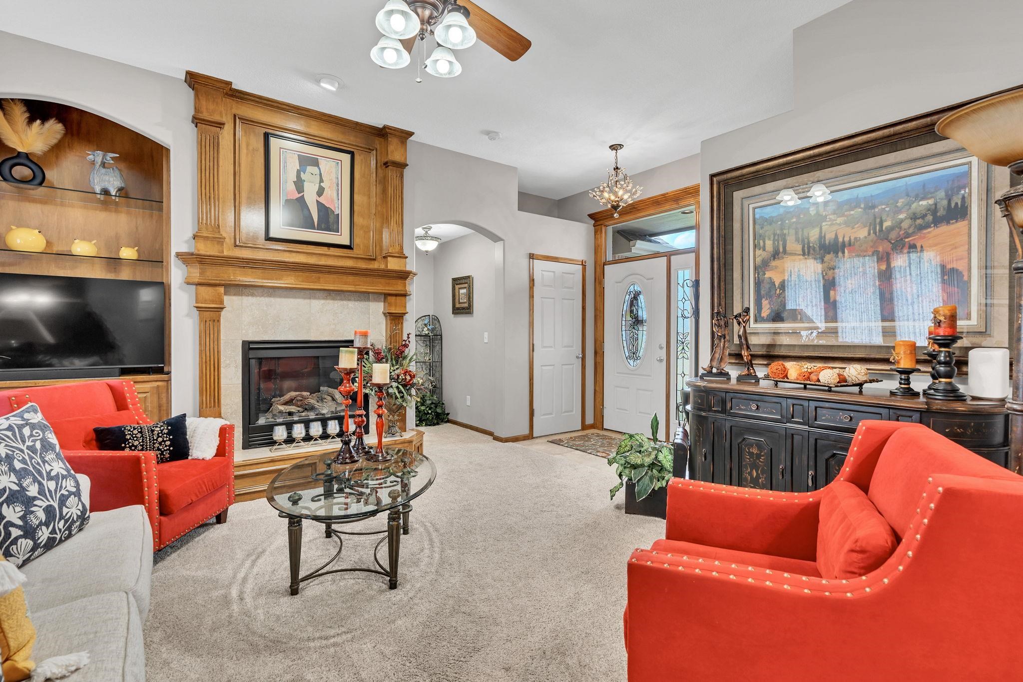- Description: Pride of ownership shines throughout this meticulously maintained 4-bedroom, 3-bath home with a 3-car garage in the sought-after Tara Falls neighborhood. With over 2, 500 sq. ft. of thoughtfully designed living space, this home offers a perfect blend of comfort, quality, and convenience. Inside, you’ll find an open-concept layout with high ceilings and a spacious main living area with beautiful hardwood finishes centered around a stately fireplace. The kitchen and dining spaces feature rich hardwood floors, ample cabinet space, stainless steel appliances, and both formal and informal dining areas—ideal for everyday living and entertaining. The main floor primary suite features a cathedral ceiling, a spacious closet and an ensuite bath with a jacuzzi tub, separate shower and dual vanity areas. Two additional bedrooms and a full hall bath as well as convenient laundry space just off the garage complete the main floor area. The finished basement expands your living space with a second fireplace, wet bar, large family room, fourth bedroom and a third full bath. The pool table in the rec room remains with the home, and there's also over 400 sq. ft. of unfinished storage space. The exterior features a spacious, privacy-fenced yard with mature trees and a pergola—perfect for outdoor gatherings. A separately fenced area offers space for a garden or pets, and the lawn stays green with a sprinkler system fed by an irrigation well. Move-in ready and well cared for—schedule your showing today. Show all description
