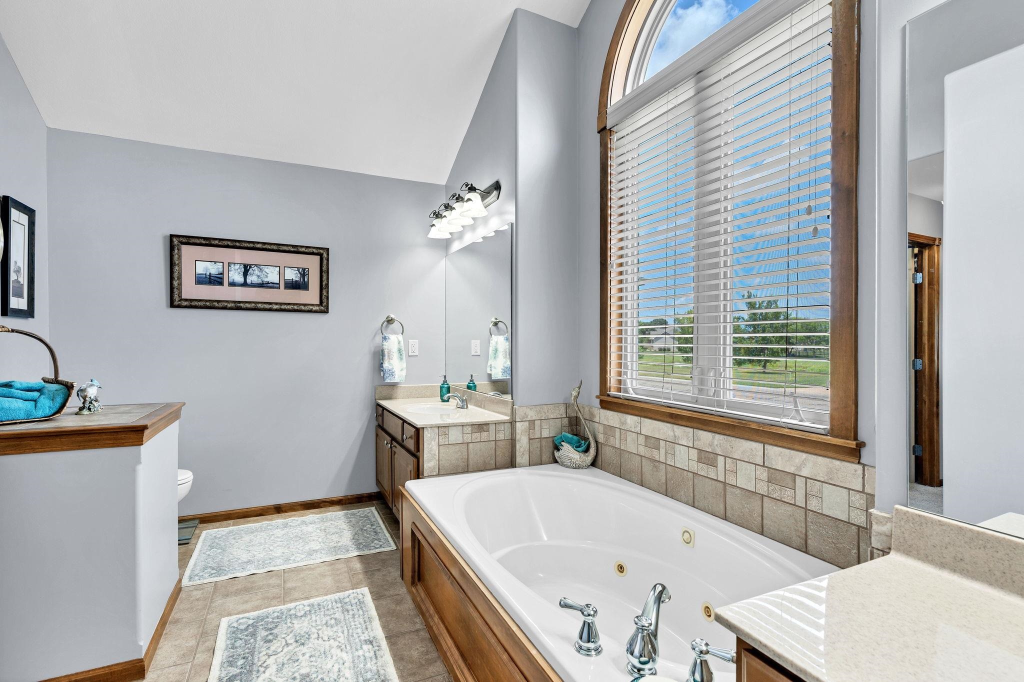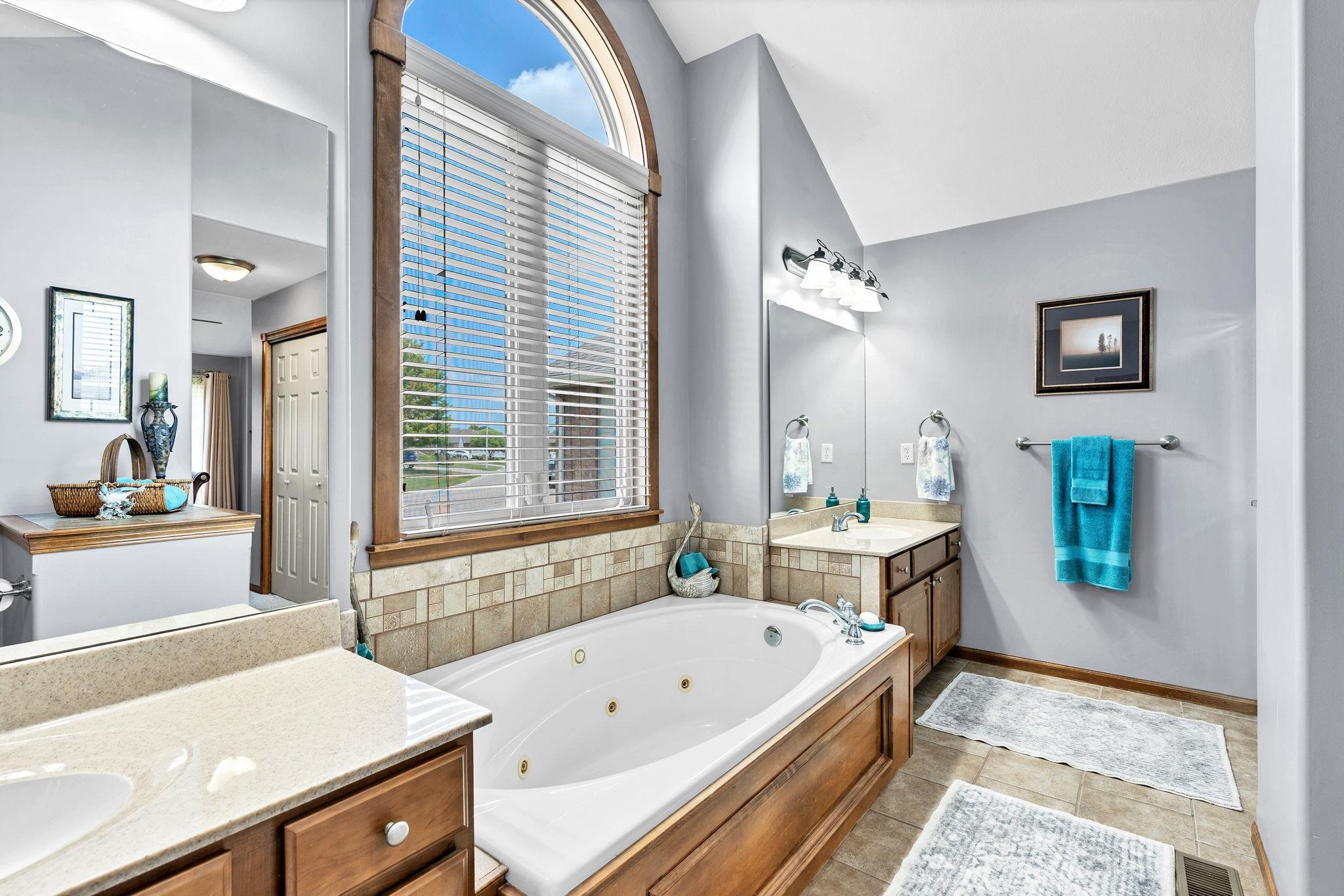 - Master Bedroom: Master Bdrm on Main Level, Split Bedroom Plan, Master Bedroom Bath, Sep. Tub/Shower/Mstr Bdrm, Two Sinks