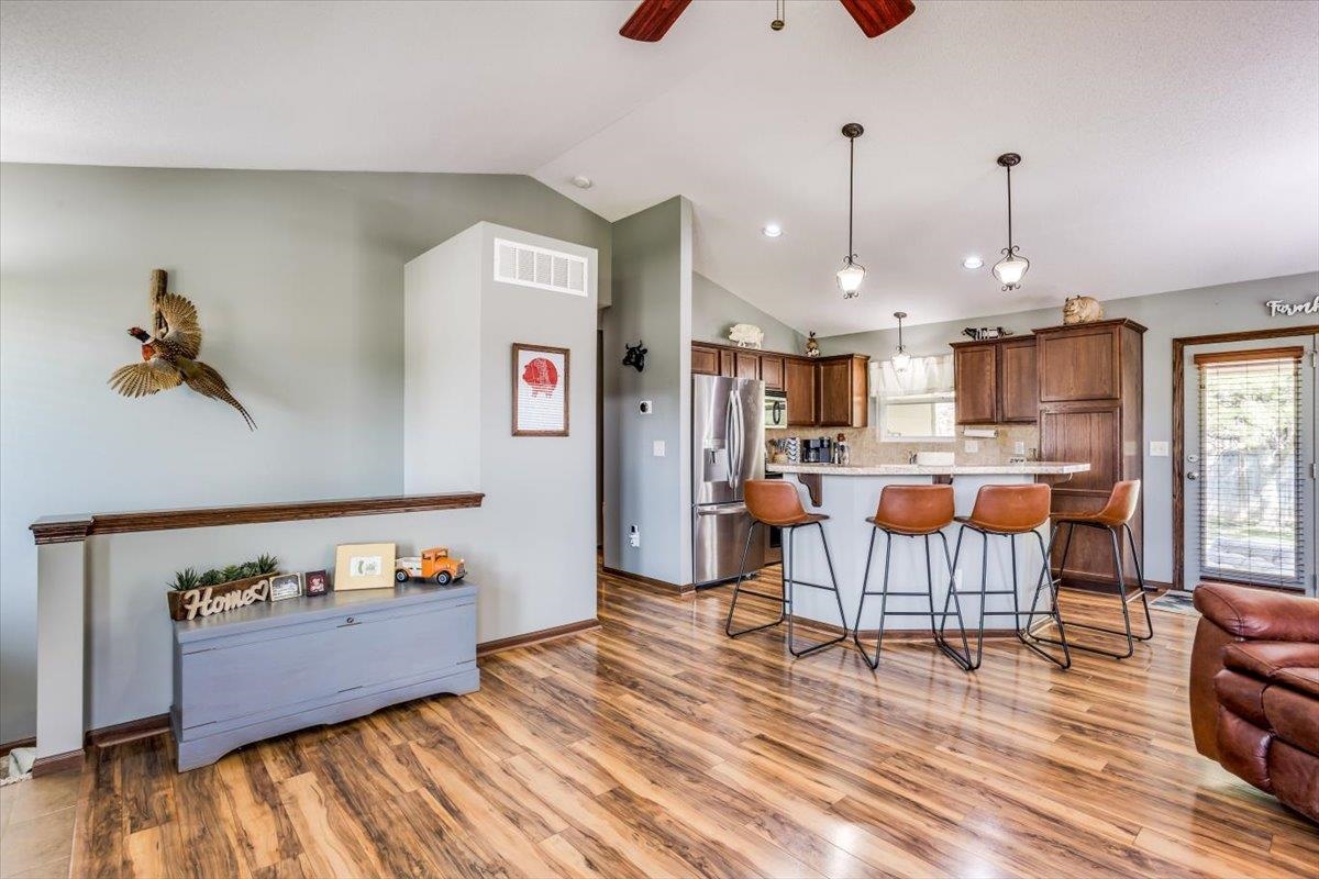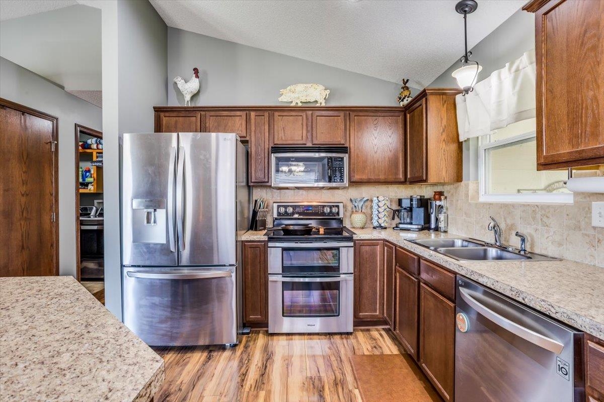 - Description: Don't miss this super clean, open floor plan 4BR, 3BA home with fully fenced backyard, covered deck. Full finished basement with large family room and cozy gas fireplace. the garage has 220 elec. Roof installed in 2019 Show all description