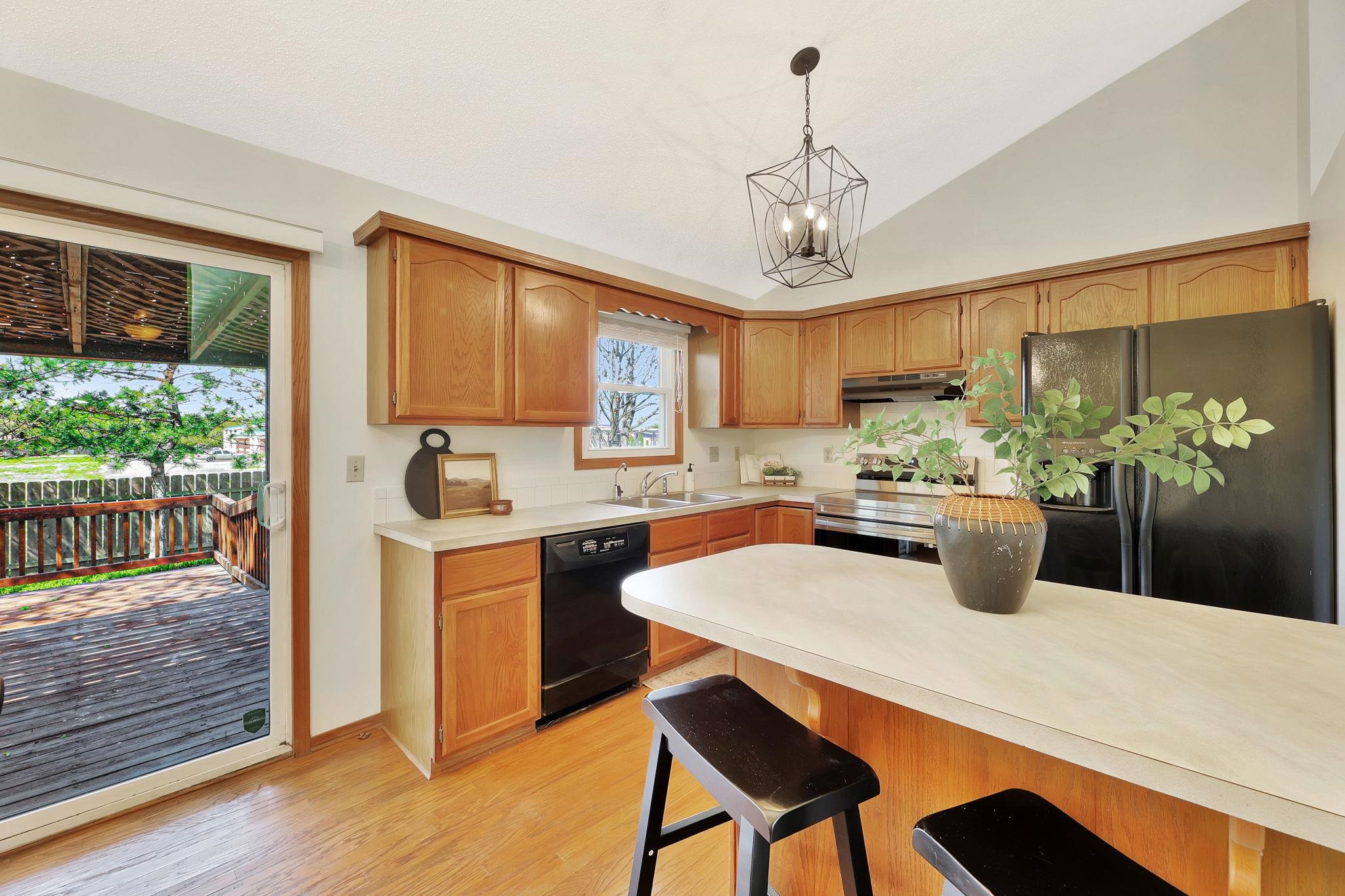 - Description: Stunning Home with Vaulted Ceilings & Modern Upgrades! Welcome to this beautiful four bedroom, three bathroom home offering the perfect blend of comfort and style. Step into the charming living area with vaulted ceilings, gleaming hardwood floors, and a cozy gas fireplace, creating a warm and inviting atmosphere. The chef’s kitchen features a brand-new range and opens to a covered deck—ideal for outdoor dining and entertaining year-round. The primary suite boasts an elegant newly upgraded ensuite bathroom and a walk-in closet, providing a private retreat. All three bathrooms have been tastefully remodeled, offering modern fixtures and finishes. The spacious basement includes a large rec room, perfect for movie nights, game days, or a home gym. Centrally located near shopping, restaurants, and entertainment with quick access to Kellogg. This home combines thoughtful updates with timeless features—ready for you to move in and enjoy! Show all description