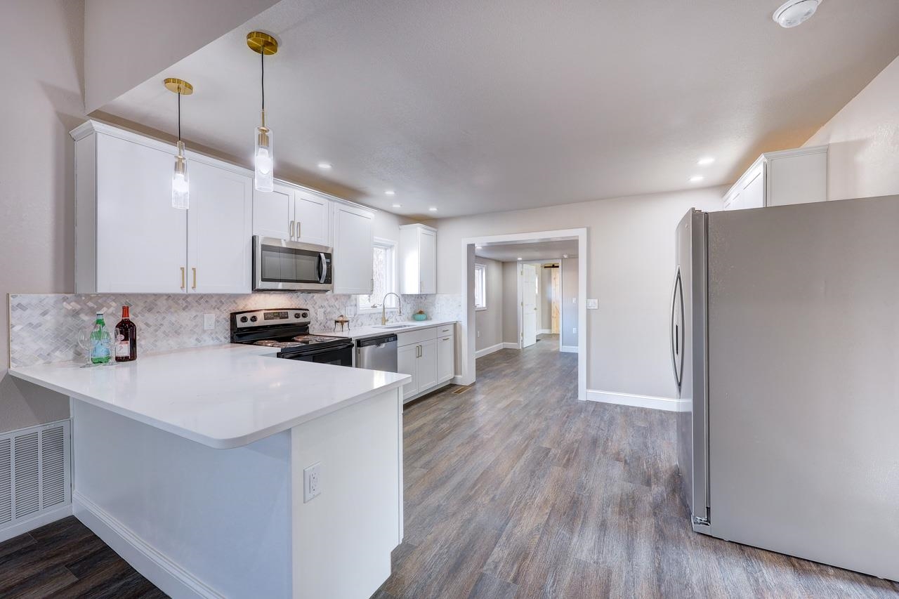 - Description: This fully remodeled home is a rare gem, offering 4 bedrooms, 2.5 baths, a detached oversized garage, a spacious corner lot and a 10 YEAR TAX ABATEMENT. Brand new Privacy fence encloses the spacious backyard! The freshly painted exterior, complete with new windows and an inviting front porch, greets you upon arrival. Inside, vaulted ceilings and an open-concept kitchen and living area create a bright and airy atmosphere. The kitchen boasts new cabinetry, quartz countertops, stainless steel appliances, an eating bar, and stylish gold hardware and fixtures. The master suite includes a generously sized bedroom, his-and-her closets, vaulted ceilings, and a stunning new master bathroom with a walk-in tile shower. The main floor also features two additional bedrooms that share a beautifully updated bathroom, while the fourth bedroom upstairs offers versatility as a home office, craft room, or all-purpose space. The laundry room is thoughtfully designed with a wash sink and a convenient half bath. Outside, the detached 2car garage offers electricity, a refinished concrete floor and 2, 000sqft of parking, workshop and second floor. The spacious upper level offers endless possibilities for renovation—whether you envision it as a cozy guest suite, a private home office, or the ultimate man cave or she shed retreat. The expansive corner lot is perfect for outdoor living and ample parking. Recent updates include a new tankless hot water heater, nearly all new windows, a new roof on both the house and garage, new siding on the garage, and more. Homes like this are a rare find—don’t wait! Show all description