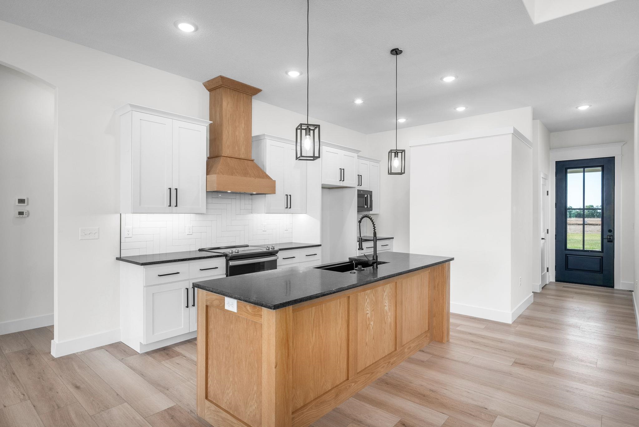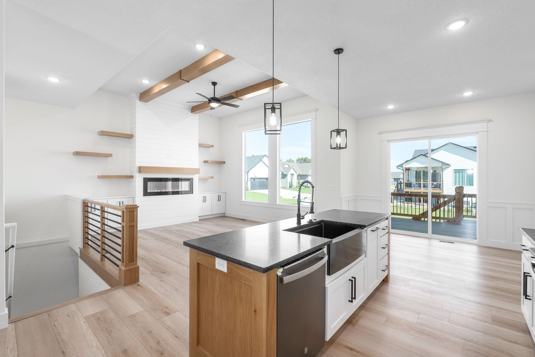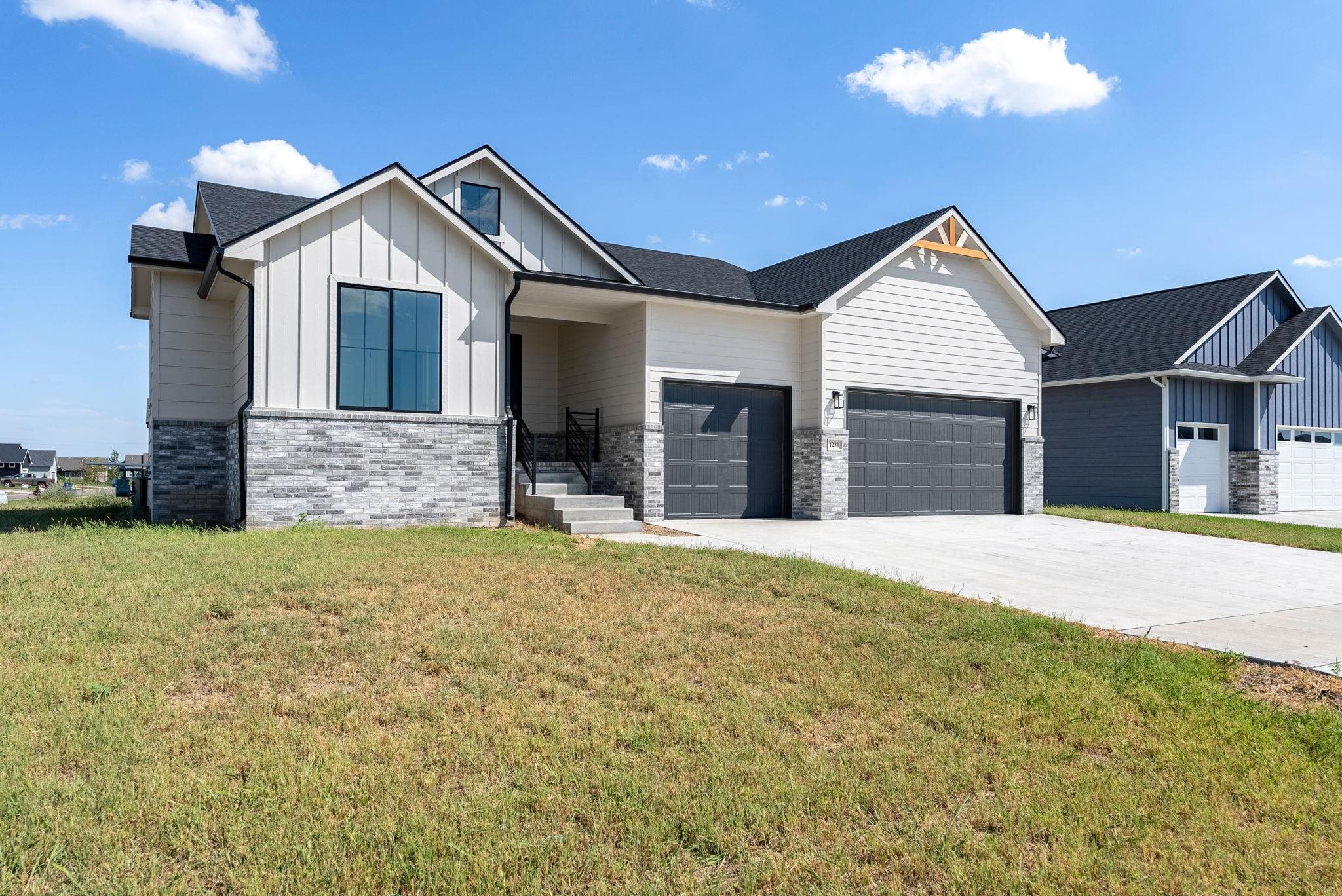 - Description: Do you LOVE Keystone's model in Arbor Creek? Then come call this one home! Looking for your dream home? Keystone Construction presents the fabulous Aspen IV design in Arbor Creek - Conveniently located in the Goddard School District, this home is sure to impress. The front elevation offers gorgeous upgrades with black windows, double gables, gable wood truss, and Smart Lap Siding. As you step inside, you'll be greeted by a perfect entrance with a custom boot bench and space for a table for decorating. Follow the hall to the open living room and kitchen, and you'll notice tons of large windows that allow natural light to flood the space. The flow of this design is perfect, with no wasted space. The kitchen is a dream come true, featuring a large island that's perfect for preparing meals or gathering friends and family. You'll love the upgraded cabinets and the one-of-a-kind pantry - it's truly a must-see! In the living room, you'll notice a very cool electric fireplace. It's perfect for creating a cozy atmosphere. The primary bedroom is another impressive feature of this home, offering spa-like features with double vanities, above-bed windows, a custom wall accent, and gorgeous granite tops. It's the perfect place to unwind after a long day. Relax on your back covered deck and soak up the fresh air and sunshine. Some information is estimated and cannot be guaranteed, and options and pricing are subject to change without notice. There will be a mailbox fee charged to buyer at closing. Don't miss out on the chance to see this fabulous Aspen IV design in Arbor Creek - it truly is a must-see! Show all description