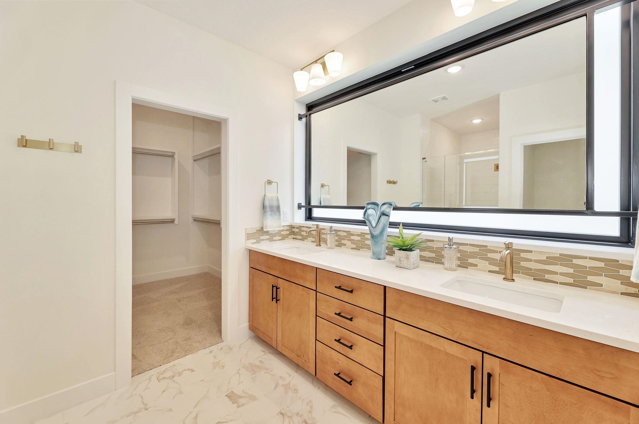 - Master Bedroom: Master Bdrm on Main Level, Split Bedroom Plan, Master Bedroom Bath, Sep. Tub/Shower/Mstr Bdrm, Two Sinks, Quartz Counters, Water Closet