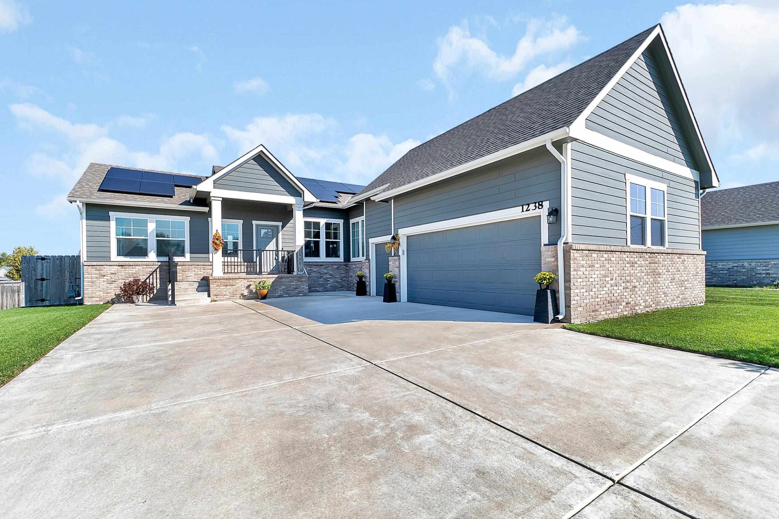 - Description: Welcome to 1238 Prairie Hill Cir! This home’s unique floorplan is perfect for families of any size and features 3 bedrooms on the open-concept main floor and 2 bedrooms in the massive finished basement. You and your family will love the “breezeway”, built-for-life owner’s entry through the courtyard-style 3-car garage. This breezeway houses a drop zone, storage or coat closet, laundry space with counter and pantry in a long hallway flooded with natural light that leads you to the split-bedroom master bedroom suite to the right and the rest of the home to the left. The master bedroom suite features a good-sized bedroom, a large master bathroom complete with a walk-in shower and a walk-in closet with off-season storage. If entering at the front of the home, you are met by the quaint porch and just through the front door, you’re greeted by the open-concept entry, living, kitchen and dining room and the stairs that lead to the basement. Through the hallway off the kitchen you’ll access bedrooms 2 and 3 and the large hall bathroom. The finished basement has a massive family room, a 3rd full bathroom, bedrooms 4 and 5 and a decent amount of dedicated storage space. The deck and patio are ready for occasions filled with fun and laughter as you entertain family and friends. This home is equipped with a Water Filtration System for soft water and Solar Panels which drastically lower your monthly energy bills and saving you money every month. Your family is sure to enjoy this home’s location and easy access to the highly anticipated development of the “Park Centre.” This sprawling 48-acre mixed-use development project will offer retail shops, restaurants, medical offices, and other services. This home is a must see in a growing community! Contact me today to schedule your private showing before it is gone. Show all description