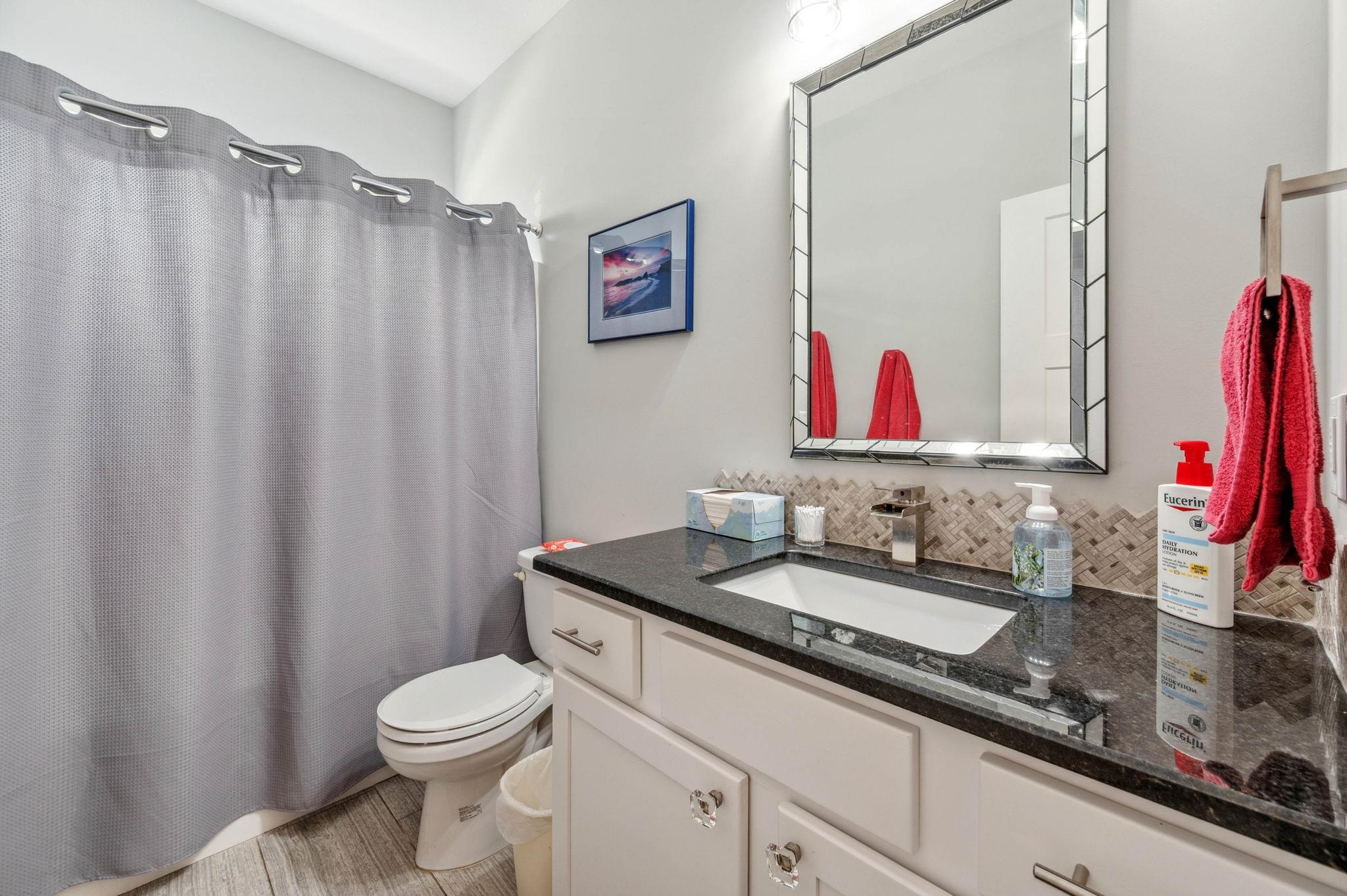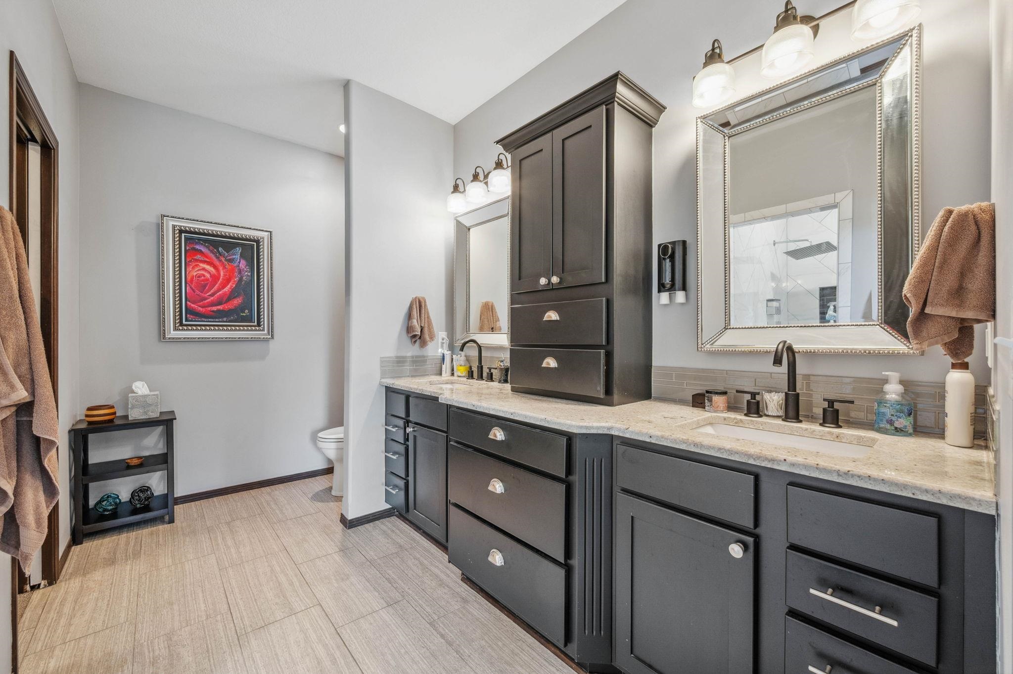 - Master Bedroom: Master Bdrm on Main Level, Split Bedroom Plan, Master Bedroom Bath, Shower/Master Bedroom, Two Sinks, Granite Counters