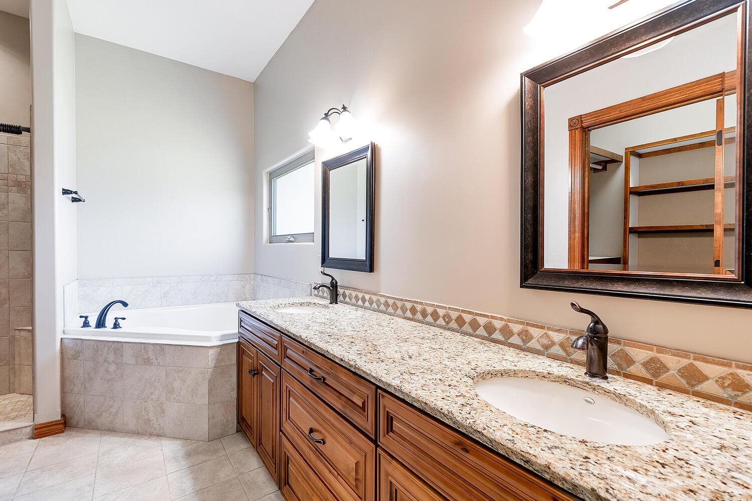 - Master Bedroom: Master Bdrm on Main Level, Split Bedroom Plan, Master Bedroom Bath, Sep. Tub/Shower/Mstr Bdrm, Two Sinks, Granite Counters, Water Closet