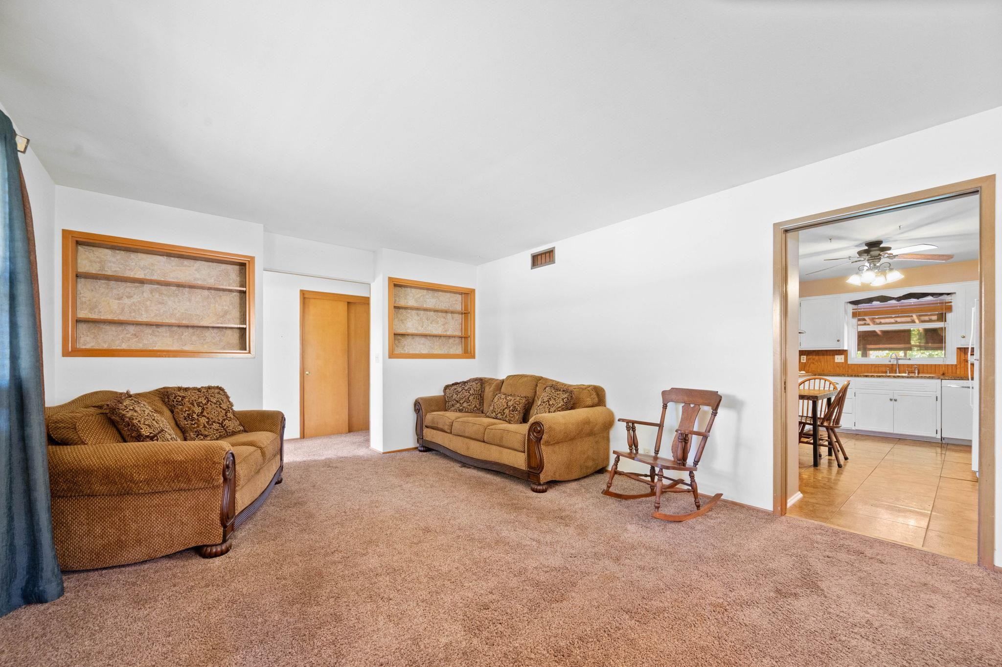 - Description: Beautiful 3-Bedroom, 2-Bath Home on Half an Acre Enjoy small-town living just minutes from Wichita in this spacious home offering over 2, 200 square feet of comfortable living. You’ll love the large living areas, formal dining space, and a full masonry wood-burning fireplace—perfect for cozy evenings. An enclosed sun-room provides extra space for relaxing or entertaining year-round. Outside, the property features a detached two-car garage/workshop, giving you plenty of room for vehicles, tools, or hobbies. Sitting on a generous half-acre lot, there’s space to garden, play, or simply enjoy the peaceful surroundings. This home blends classic warmth with everyday functionality—an ideal find in the heart of Cheney! Sellers believe everything is working fine but have never lived in the home. Records indicate HVAC was 2014 and Roof 2023. Show all description