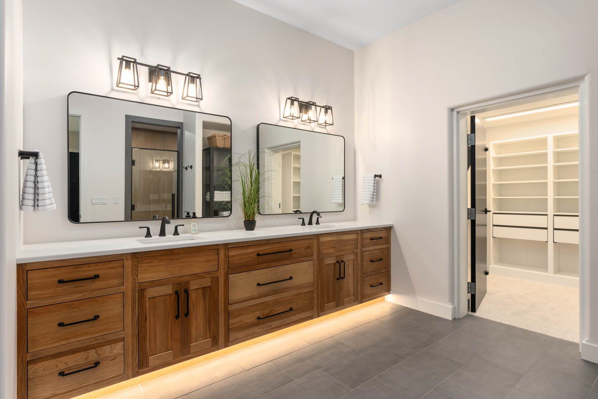 - Master Bedroom: Master Bdrm on Main Level, Split Bedroom Plan, Tub/Shower/Master Bdrm, Two Sinks, Quartz Counters