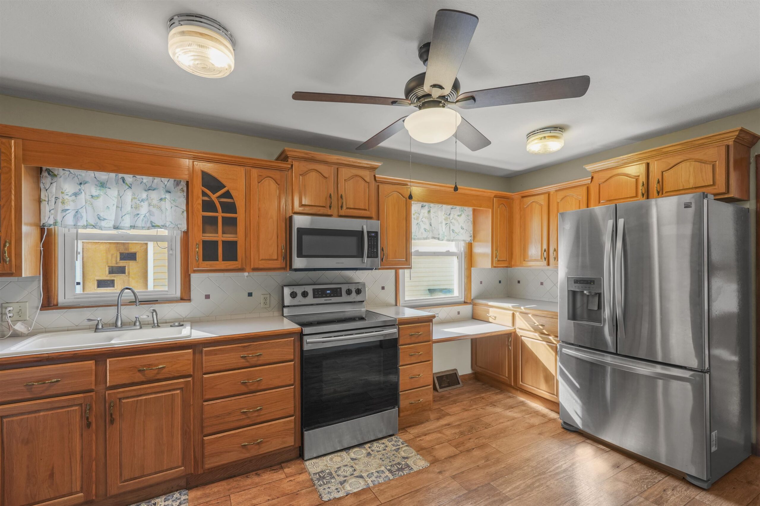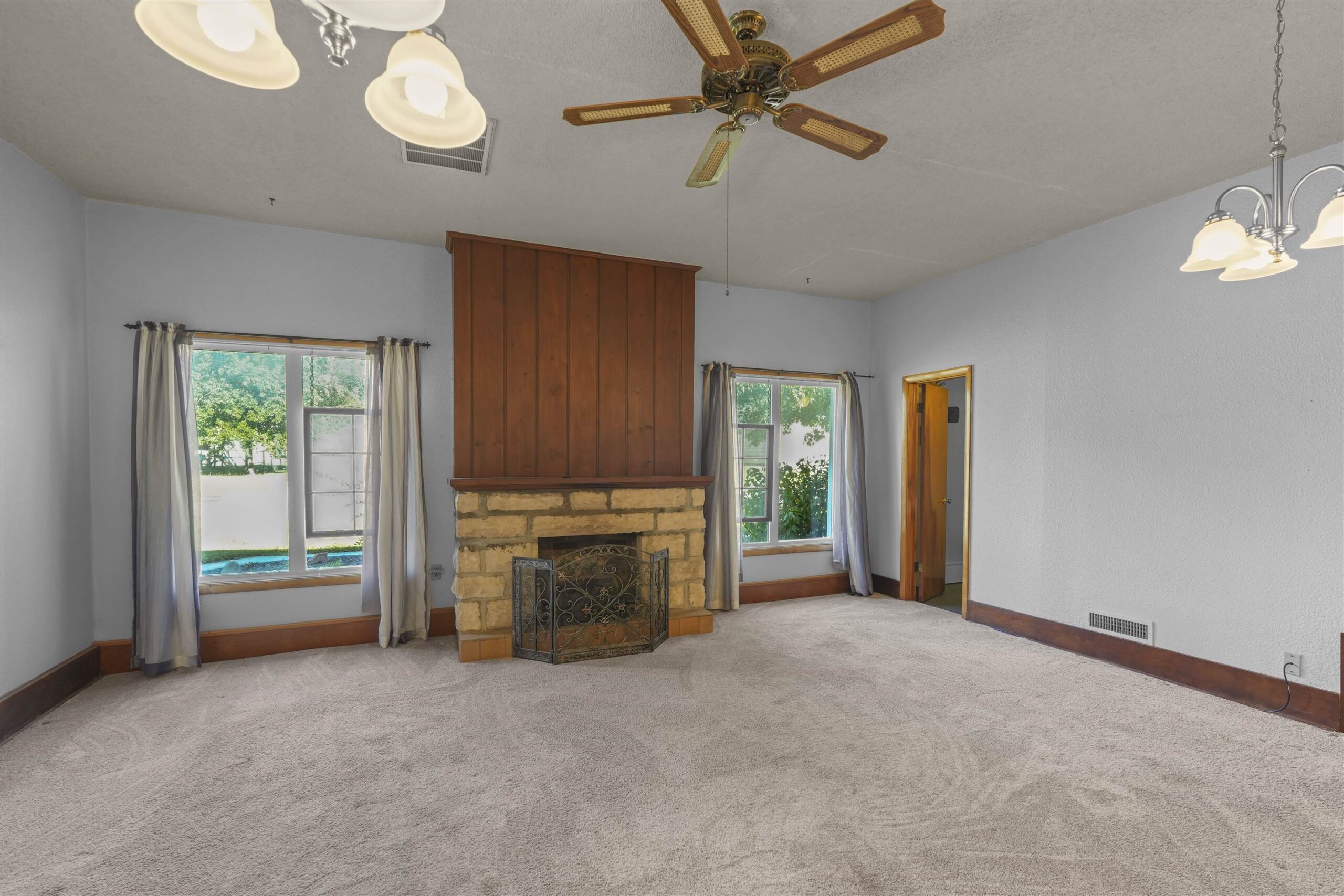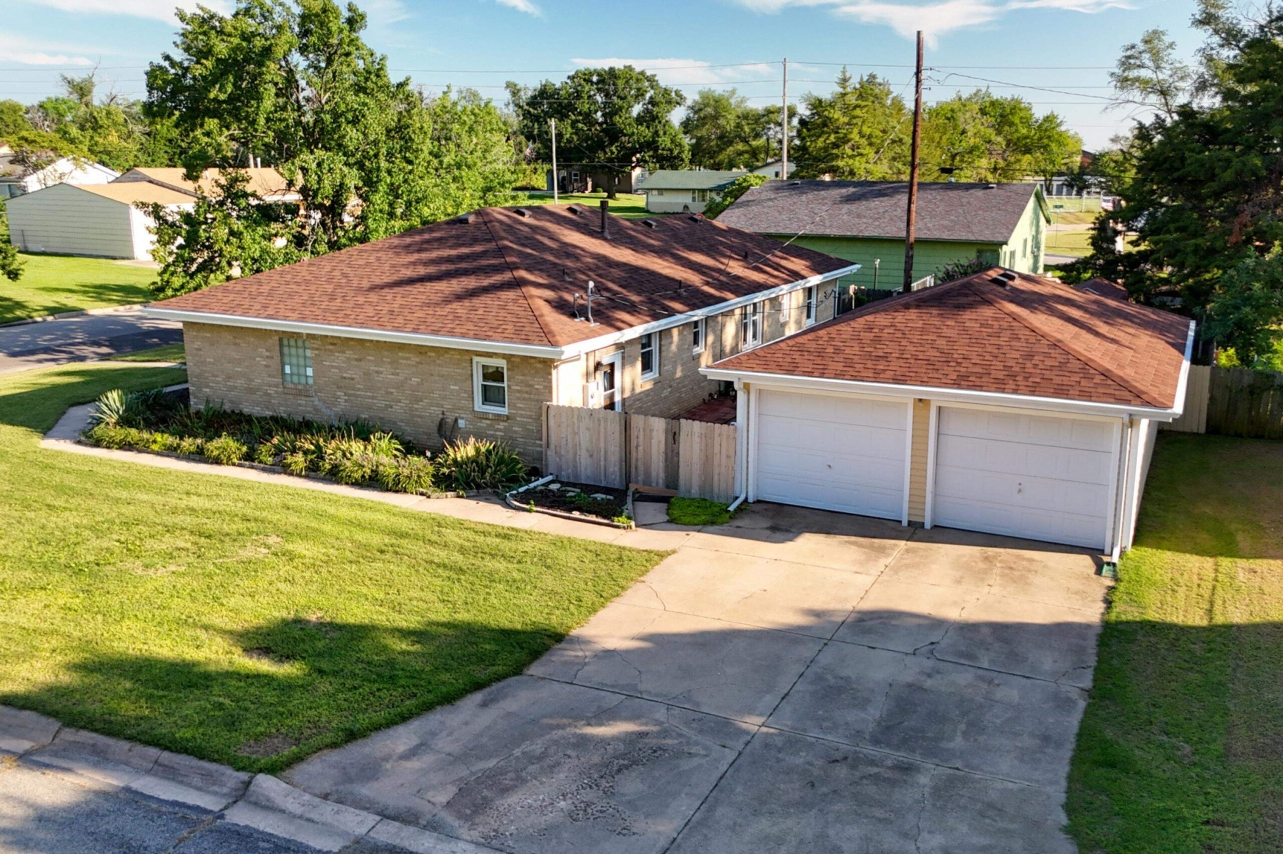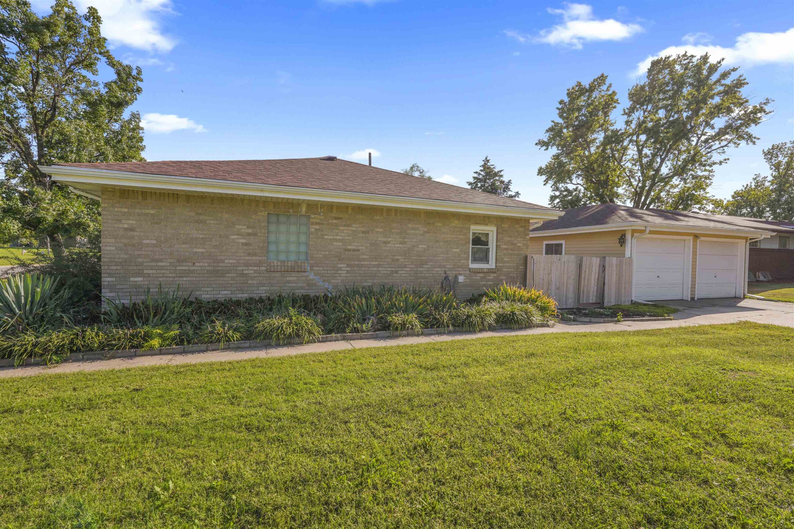 - Description: Don’t miss this move-in ready 4-bedroom brick ranch on a large corner lot in Newton! Here you’re just minutes from South Breeze Elementary, Dillons grocery, and Sand Creek Station Golf Course — plus all the small-town charm Newton has to offer. Approaching the home, you’ll love the curb appeal with mature trees and landscaped flower beds that run alongside the sidewalk leading to the garage. The covered front porch is a perfect spot to sit and enjoy the neighborhood. Out back, you’ll find a private fenced yard including garden beds, a storage shed, and a spacious concrete patio — a great setup for summer cookouts or evenings outside. The oversized two-car garage even has two bonus rooms in the back that could be used for storage, hobbies, or a workshop. Step inside and you’ll find a bright, comfortable living room with original hardwood floors and large windows that bring in plenty of natural light. The kitchen is just around the corner, offering lots of counter space, plenty of cabinets, and all the appliances to stay. Down the hall, there are three bedrooms and a full bath, plus built-in storage for extra convenience. On the opposite side of the home, past the kitchen, you’ll find the laundry area and a huge fourth bedroom with its own fireplace and half bath. This flexible space could work as a primary suite, a second family room, or even a rec room — whatever fits your needs best. This home has an easy, welcoming feel inside and out, with space to spread out and spots to make your own. Don’t miss out, call for a showing today! Show all description