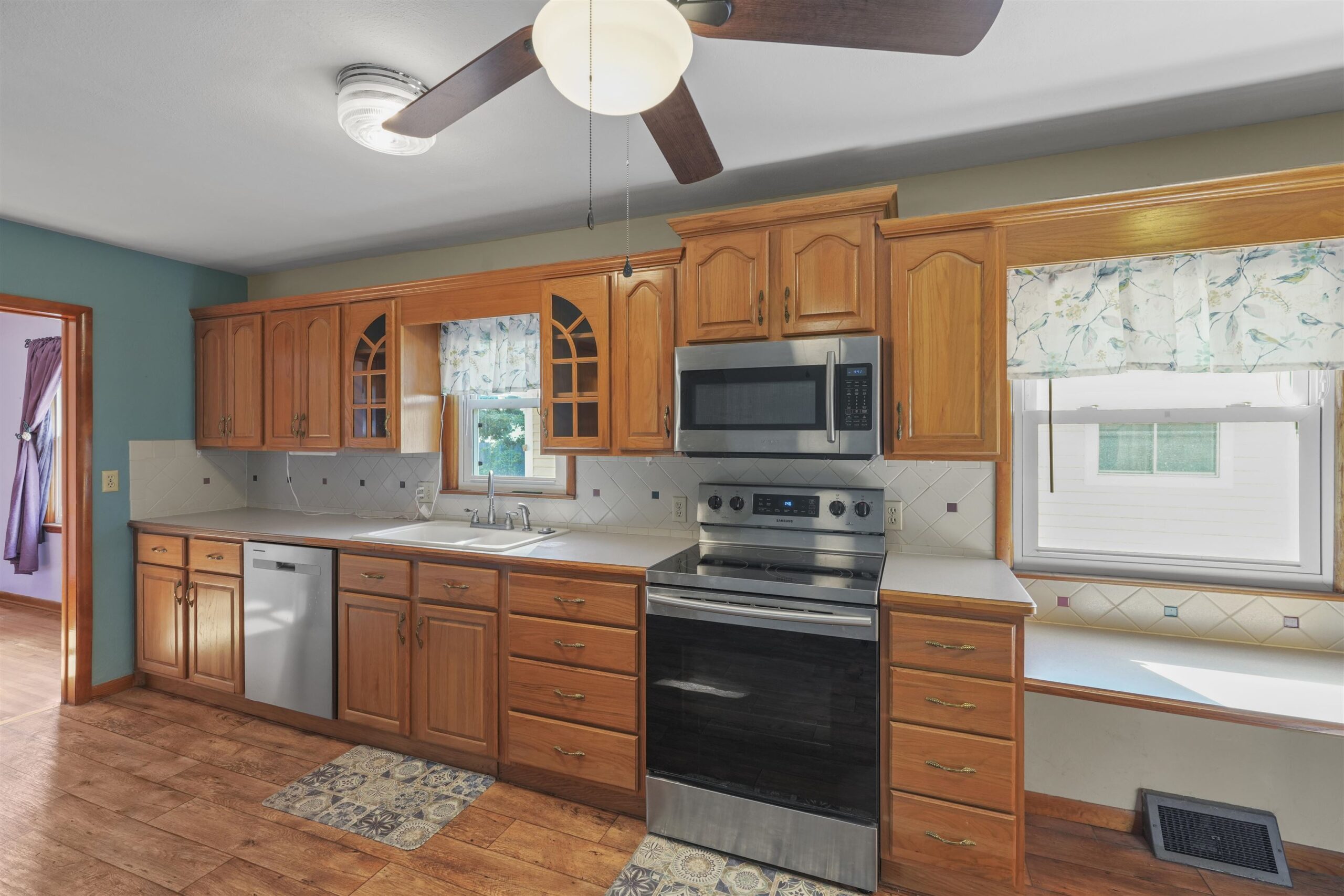 - Interior Amenities: Ceiling Fan(s), Window Coverings-Part