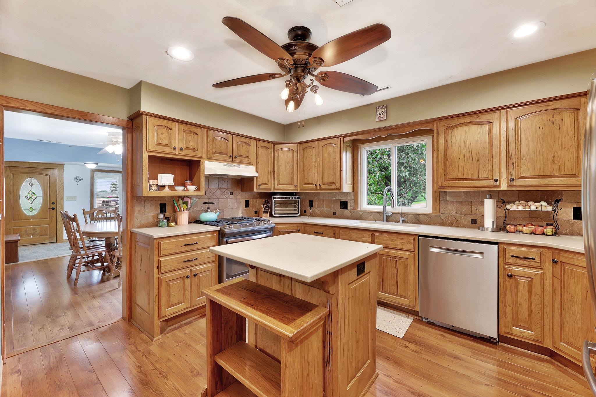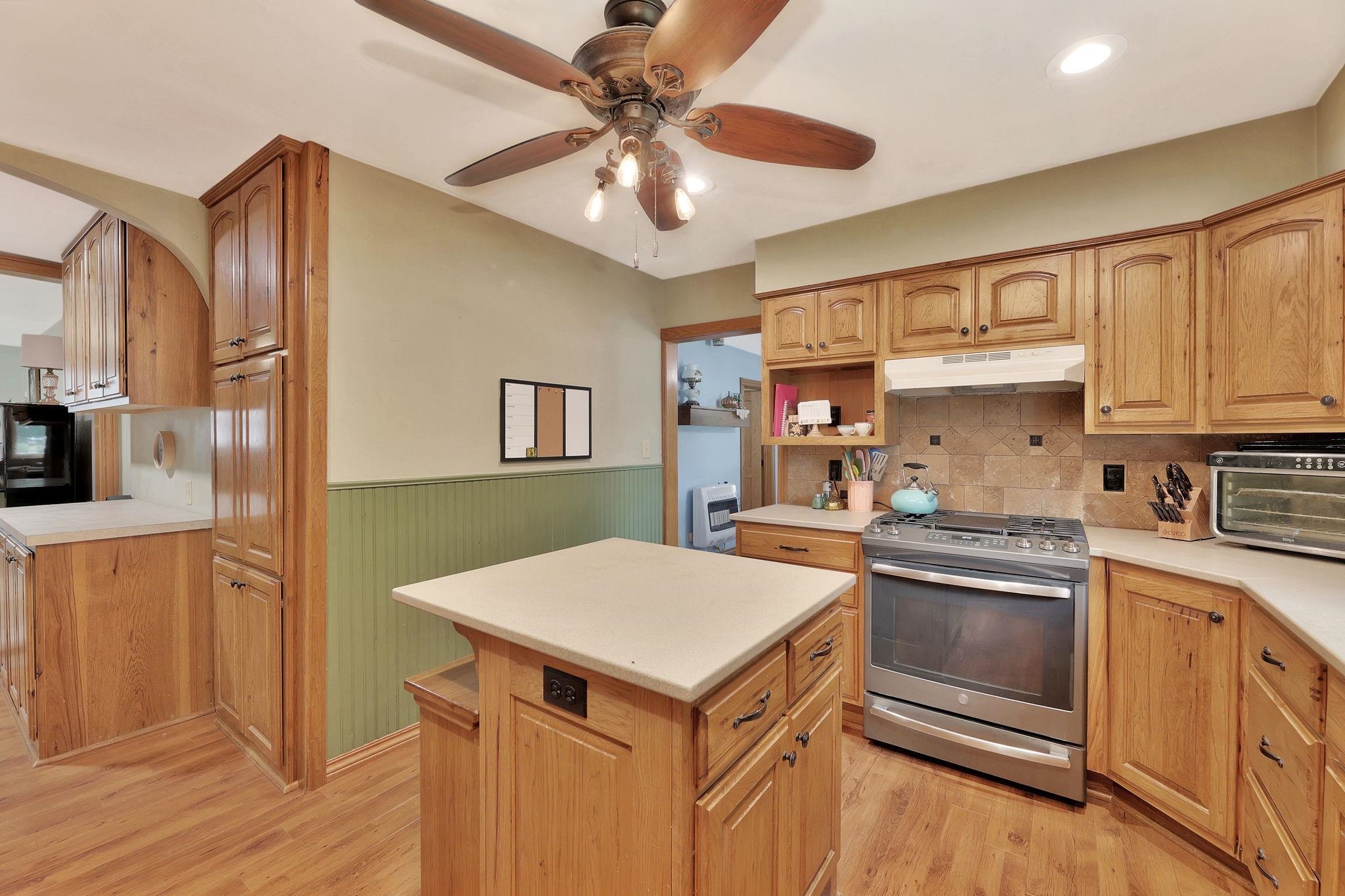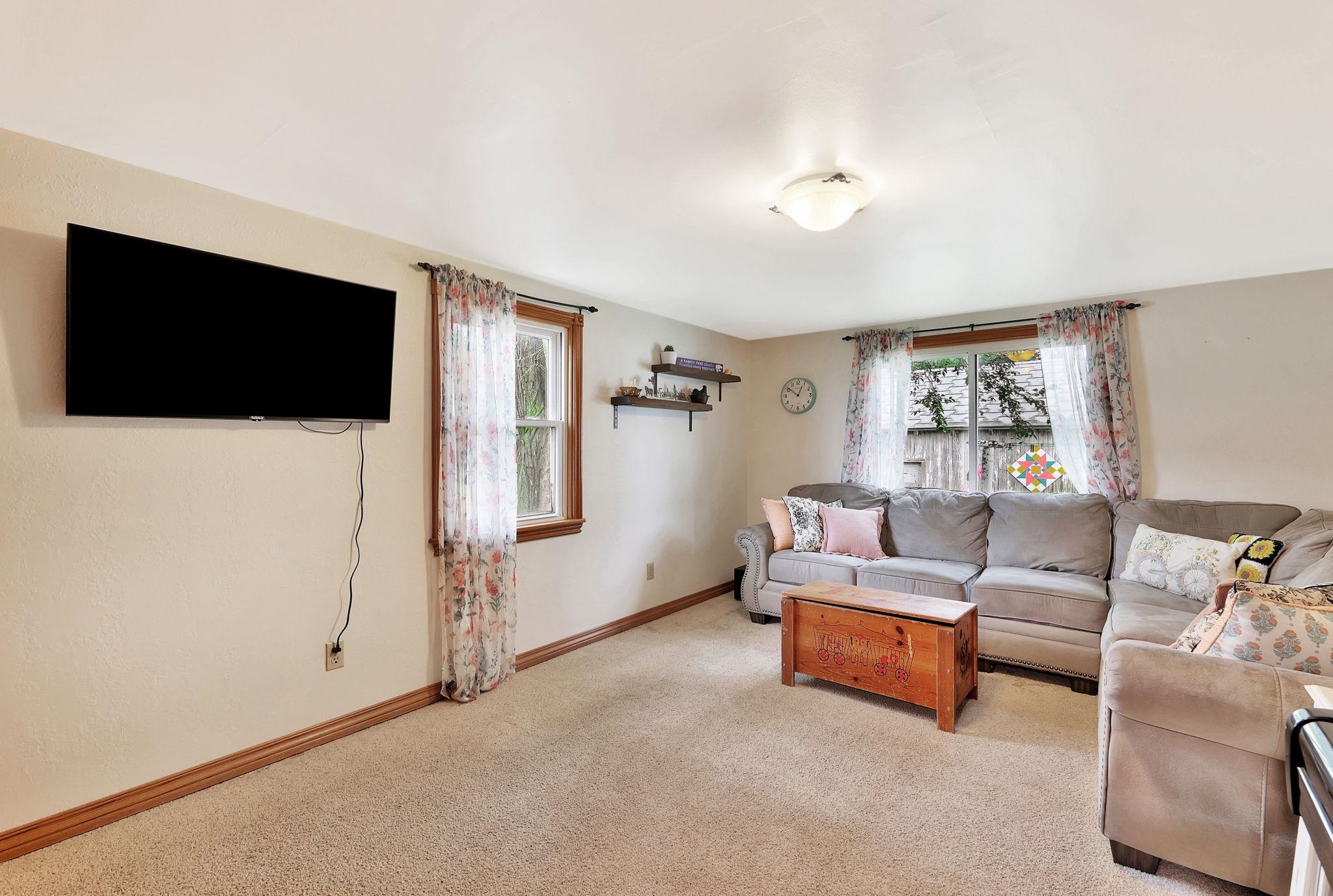 - Description: Welcome to this charming bungalow on a spacious .42-acre lot, offering a blend of comfort, character, and functionality. With 2 bedrooms, 1 bathroom, and about 1, 300 sq ft of living space upstairs and more storage room in the basement, this home has plenty of room to make your own. Step inside to find a kitchen with stainless steel appliances that stay, an island, and abundant cabinetry for all your storage needs. The adjoining dining room includes a built-in desk and additional cabinetry, making it both practical and versatile. Luxury vinyl flooring in the kitchen and dining area pairs beautifully with the cozy carpet in the bedrooms and living room. The basement provides even more storage space, giving you room to stay organized. Outside, you’ll love the ag building, perfect for projects or extra storage, as well as the large lot with endless possibilities for outdoor activities, gardening, or entertaining. Don’t miss this opportunity to enjoy the comfort of bungalow living with the bonus of a spacious property and thoughtful features! Show all description