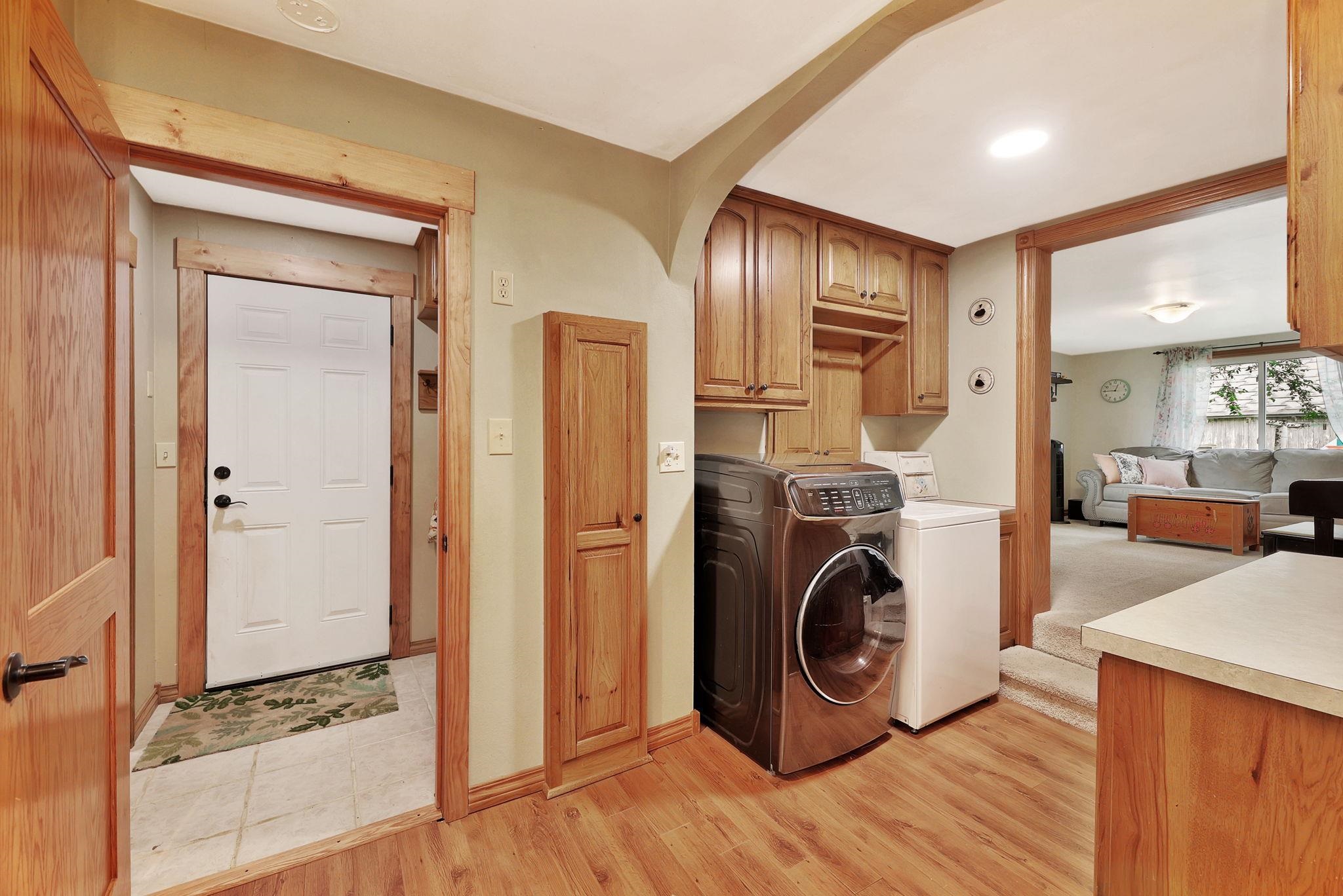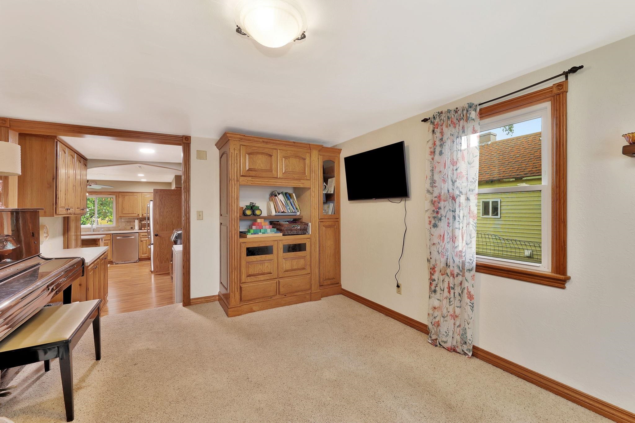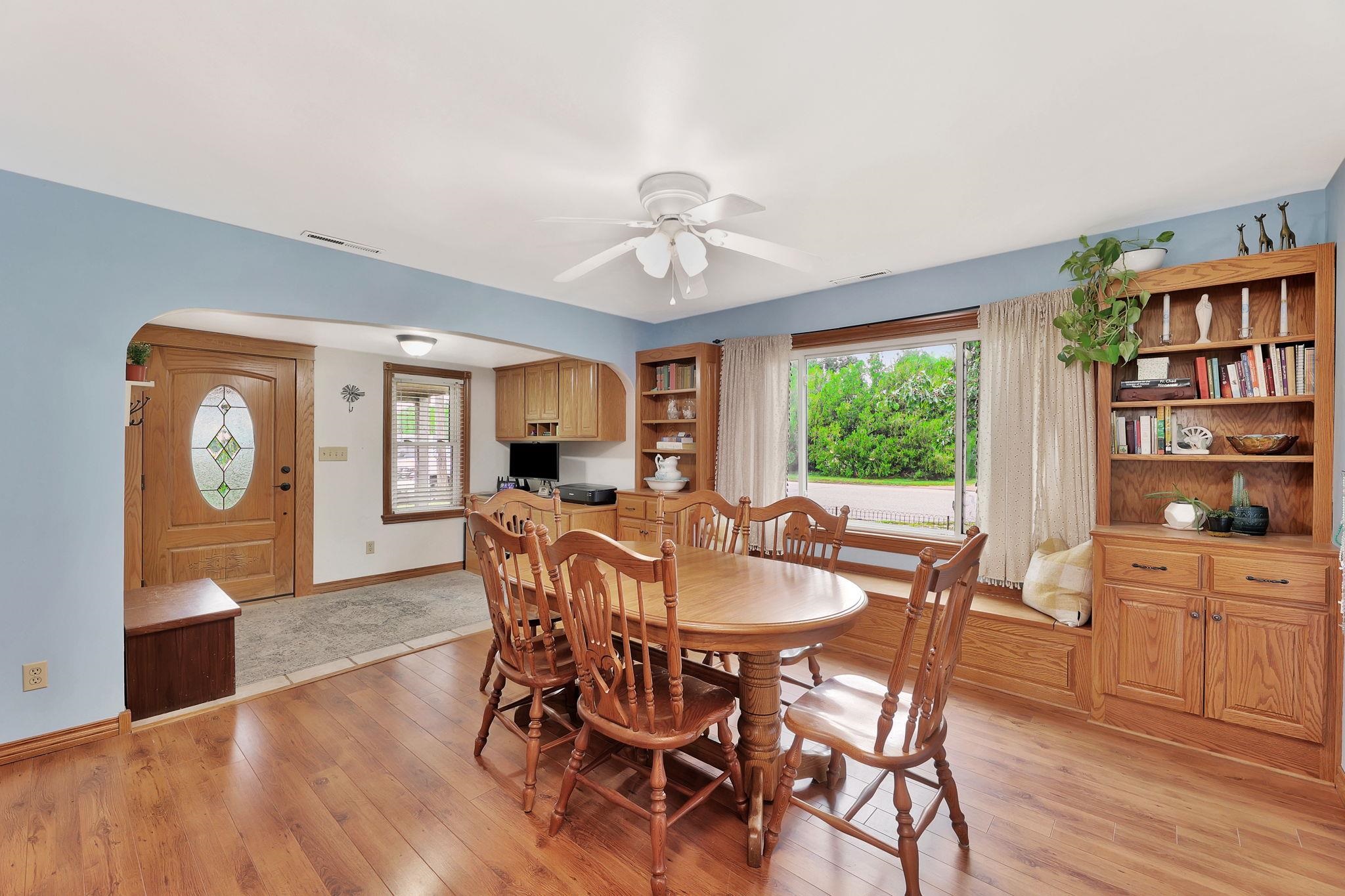 - Description: Welcome to this charming bungalow on a spacious .42-acre lot, offering a blend of comfort, character, and functionality. With 2 bedrooms, 1 bathroom, and about 1, 300 sq ft of living space upstairs and more storage room in the basement, this home has plenty of room to make your own. Step inside to find a kitchen with stainless steel appliances that stay, an island, and abundant cabinetry for all your storage needs. The adjoining dining room includes a built-in desk and additional cabinetry, making it both practical and versatile. Luxury vinyl flooring in the kitchen and dining area pairs beautifully with the cozy carpet in the bedrooms and living room. The basement provides even more storage space, giving you room to stay organized. Outside, you’ll love the ag building, perfect for projects or extra storage, as well as the large lot with endless possibilities for outdoor activities, gardening, or entertaining. Don’t miss this opportunity to enjoy the comfort of bungalow living with the bonus of a spacious property and thoughtful features! Show all description