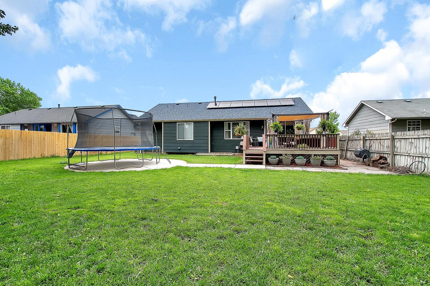 - Description: Enjoy the benefits of solar panel energy in this beautifully maintained 5-bedroom, 3-bathroom home that combines comfort, style and functionality all-in-one. Step inside to find newer wood laminate flooring that flows throughout the main living areas, complemented by brand new carpet in the basement. The roof was replaced in 2021 for peace-of-mind, and this beautiful property has it's own irrigation well for watering. Other amenities include a pantry space in the kitchen, stainless steel appliances, and main floor laundry. The backyard is thoughtfully designed for both relaxation and recreation. Enjoy the playset under the shade of mature trees, unwind on the deck, or gather with friends around the cozy fire-pit lounge area. Enjoy unbeatable walkability to Dorner Park & Haysville Dog Park. Whether you're hosting, relaxing or enjoying time with family, this home checks every box. Don't miss the opportunity to make this wonderful property your own-schedule your showing today! Show all description