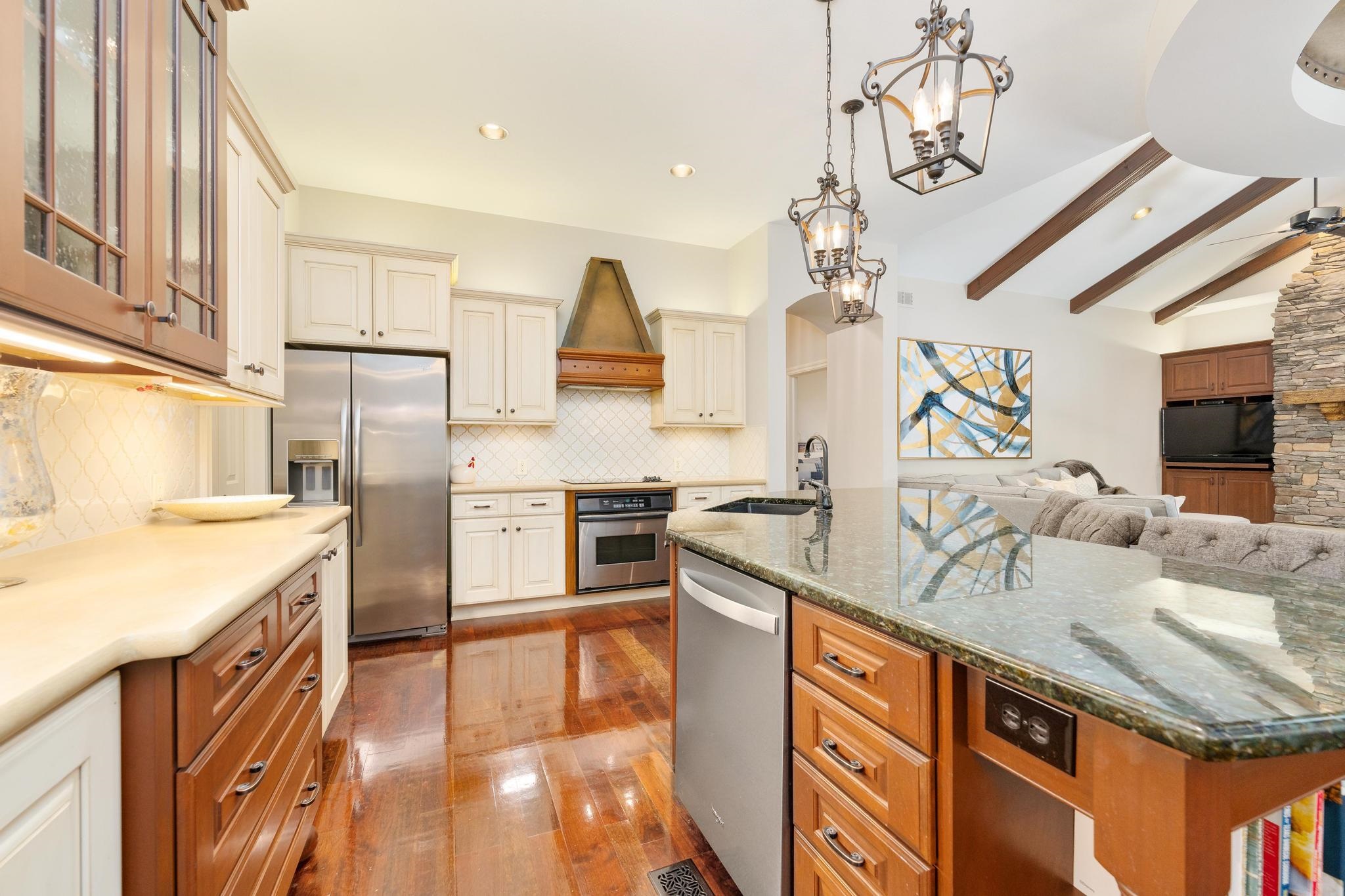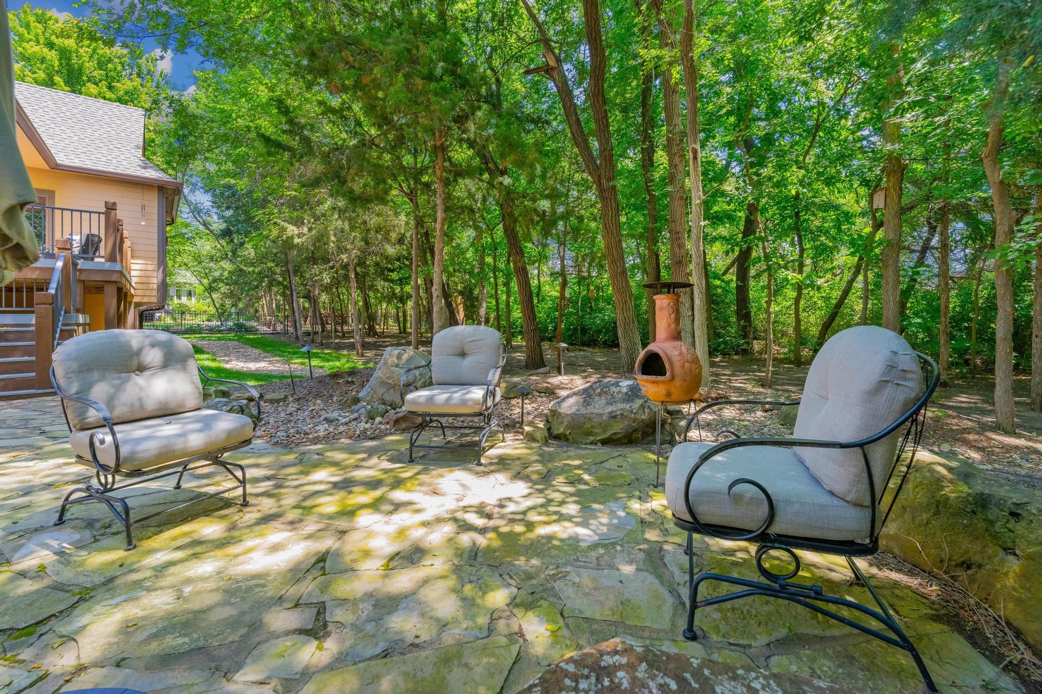 - Description: The Hawthorne neighborhood offers Andover Schools and Sedgwick County Taxes. Beautiful WOODED LOT and a very private patio area for your year round enjoyment. Located close to 96 for convenient access. Impeccably maintained with Ruud HVAC (2020) and a GAF Weather stopper system roof installed by Rhoden Roofing (2020). The Kitchen refrigerator will stay with the home. Dishwasher (2021). Special Assessment taxes have been paid! There are five bedrooms plus a bonus room to use for ping pong, a home office or your workout equipment. Three car garage. Lovely entry patio. Well appointed split bedroom floor plan (see floor plan in photos. Gourmet Kitchen is open to the dining area and a large hearth room for gatherings. Whirlpool appliances. The Primary bedroom looks out to the forest of trees in the backyard. Stunning view to wake up to each morning. Basement has two bedrooms, bath, bonus room, wet bar and plenty of storage! The pool table can stay with the home. Save thousands of dollars a year keeping your beautiful lawn green with an IRRIGATION well. Easy access to the pool across the street and a lake to practice your casting skills. Enjoy everything that thie East side neighborhood has to offer in a home that literally has it all! Show all description