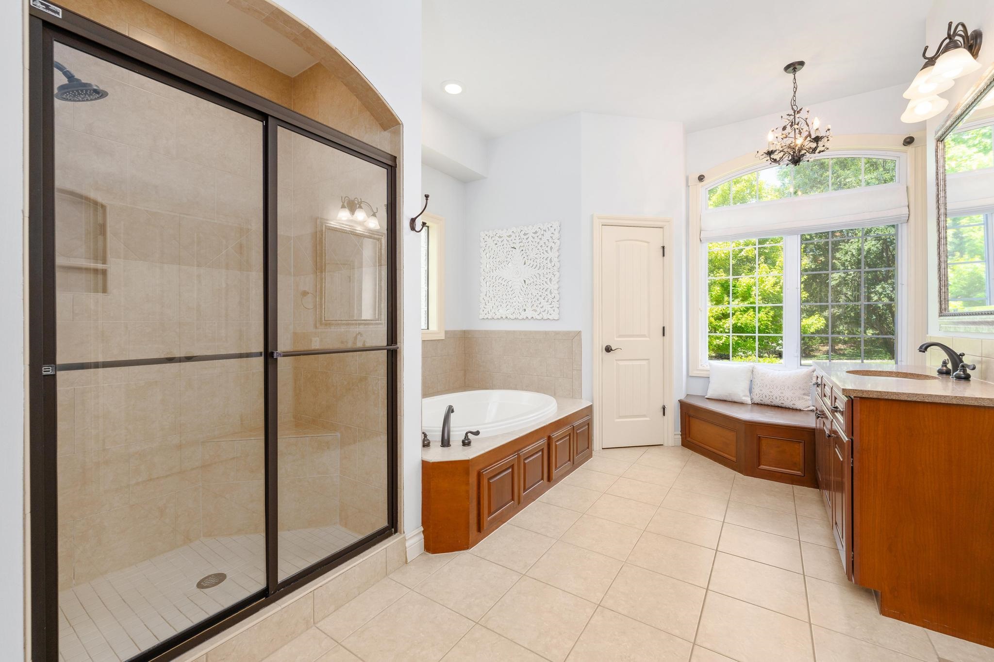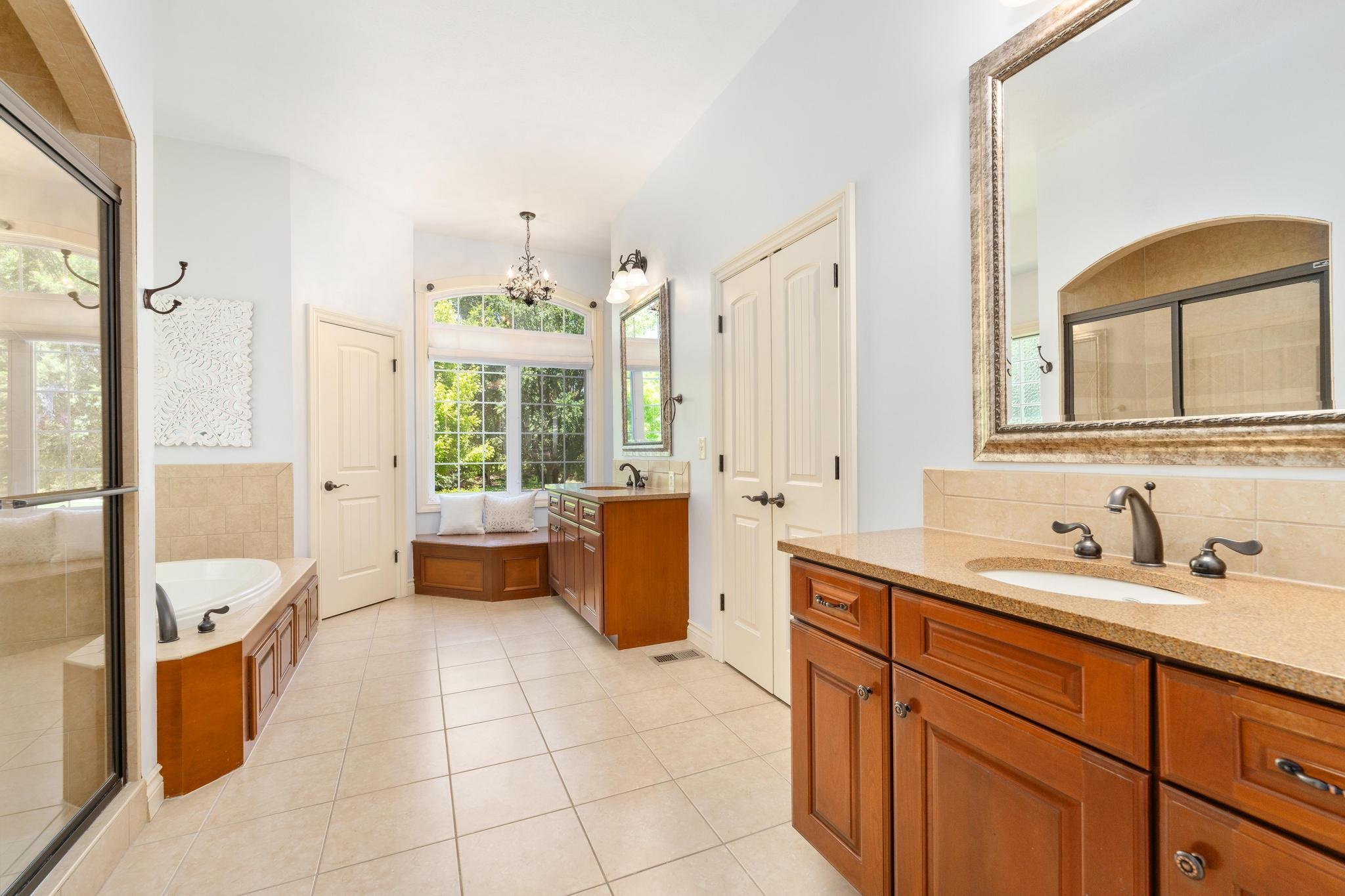 - Master Bedroom: Master Bdrm on Main Level, Split Bedroom Plan, Master Bedroom Bath, Shower/Master Bedroom, Tub/Master Bedroom, Two Sinks