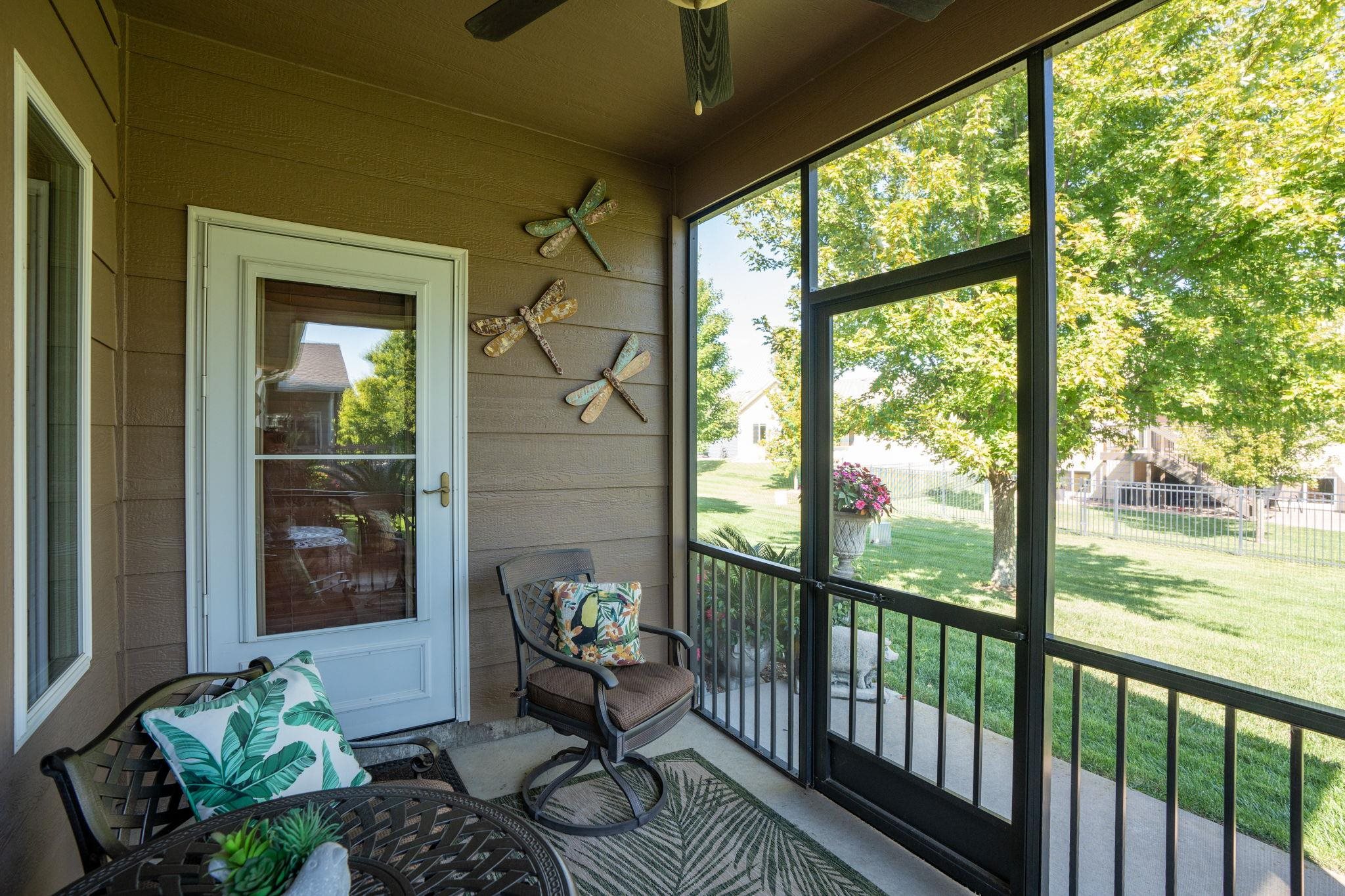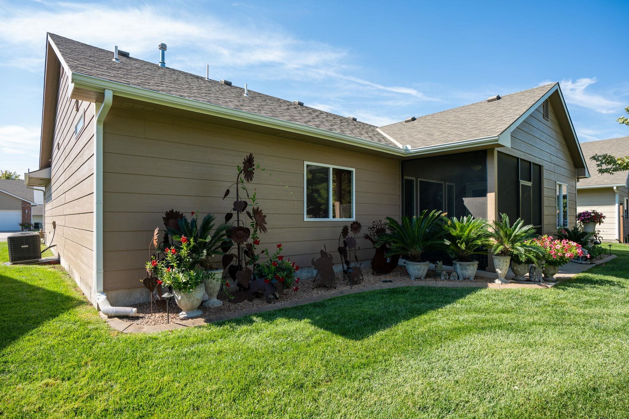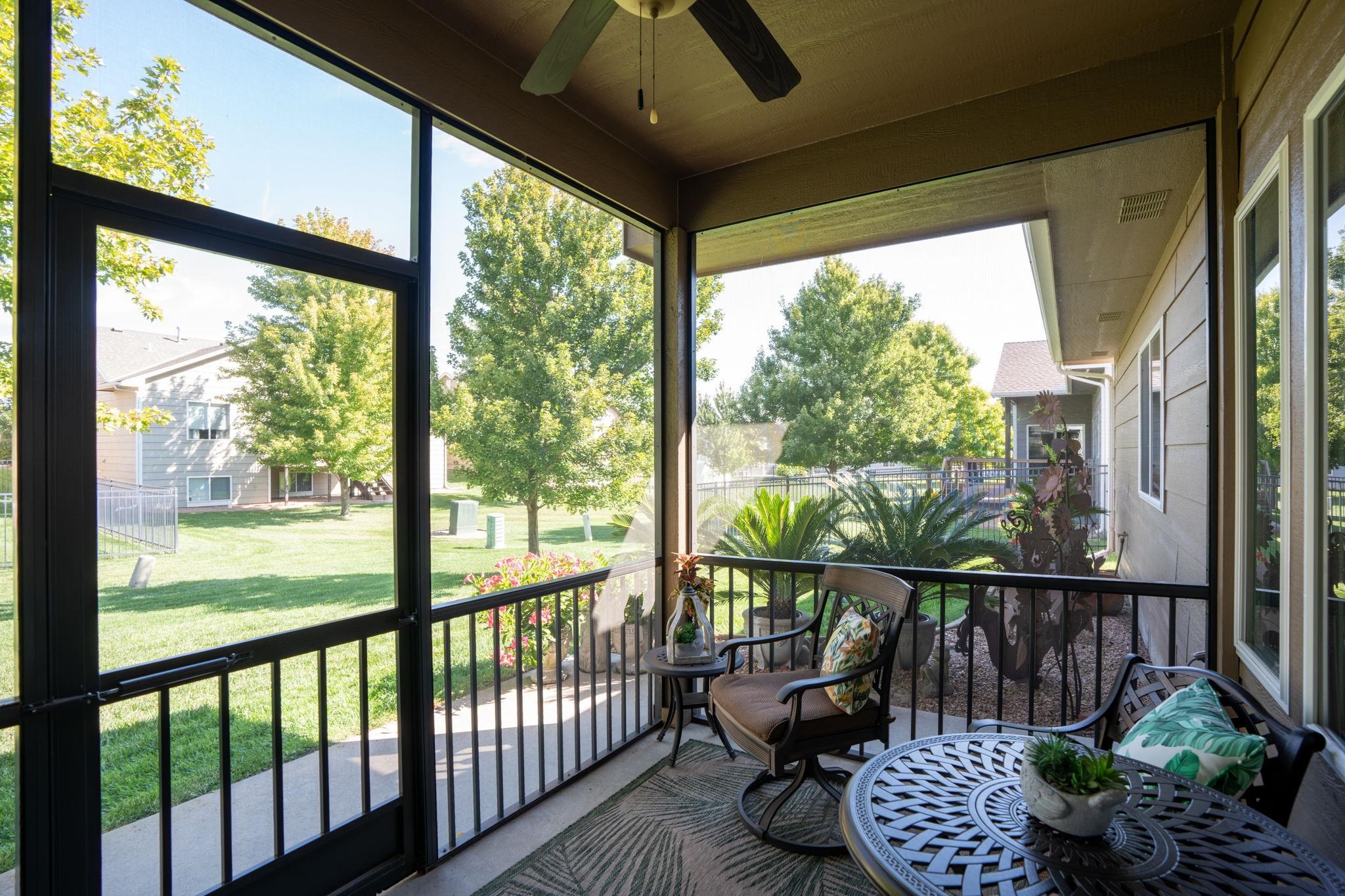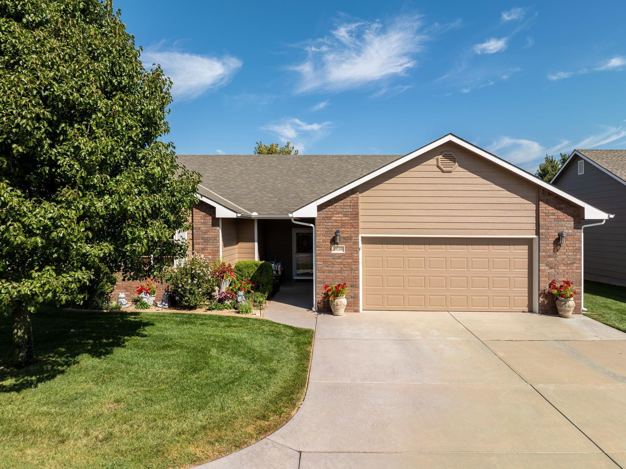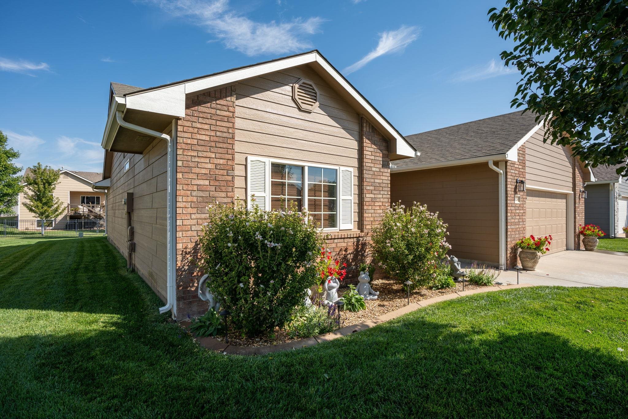 - Description: Welcome to Crystal Gardens! This lovely patio home offers 2 bedrooms, 2 bathrooms, and an oversized 2-car garage, providing you with a low-maintenance, accessible-friendly lifestyle at an affordable cost. With NO special assessments and HOA dues of just $105/month, you'll enjoy lawn care, sprinkler system (on HOA well), snow removal, and trash service. Located in the highly desired Maize School District, this home is close to a variety of dining and shopping. This open floor plan includes a spacious kitchen, large island, a dining alcove adjacent to the kitchen, and a large covered, screened-in deck—ideal for relaxing or entertaining. The kitchen is a chef's dream with a corner pantry, under-cabinet lighting, pull-out storage drawers, and beautiful granite countertops. It includes all stainless-steel appliances. The home boasts laminate hardwood floors and beautiful tile, adding warmth and style throughout. The spacious primary suite includes a walk-in shower and a large walk-in closet that doubles as a concrete safe room. Additional features include ample storage space with room to keep everything organized. This home has main-floor laundry, and the front spare bedroom is just as spacious as the primary bedroom, providing more room than the typical 2-bedroom home. The beautifully landscaped yard provides privacy and excellent curb appeal. This well-maintained home is available for immediate possession—don’t wait to make it yours today! Show all description