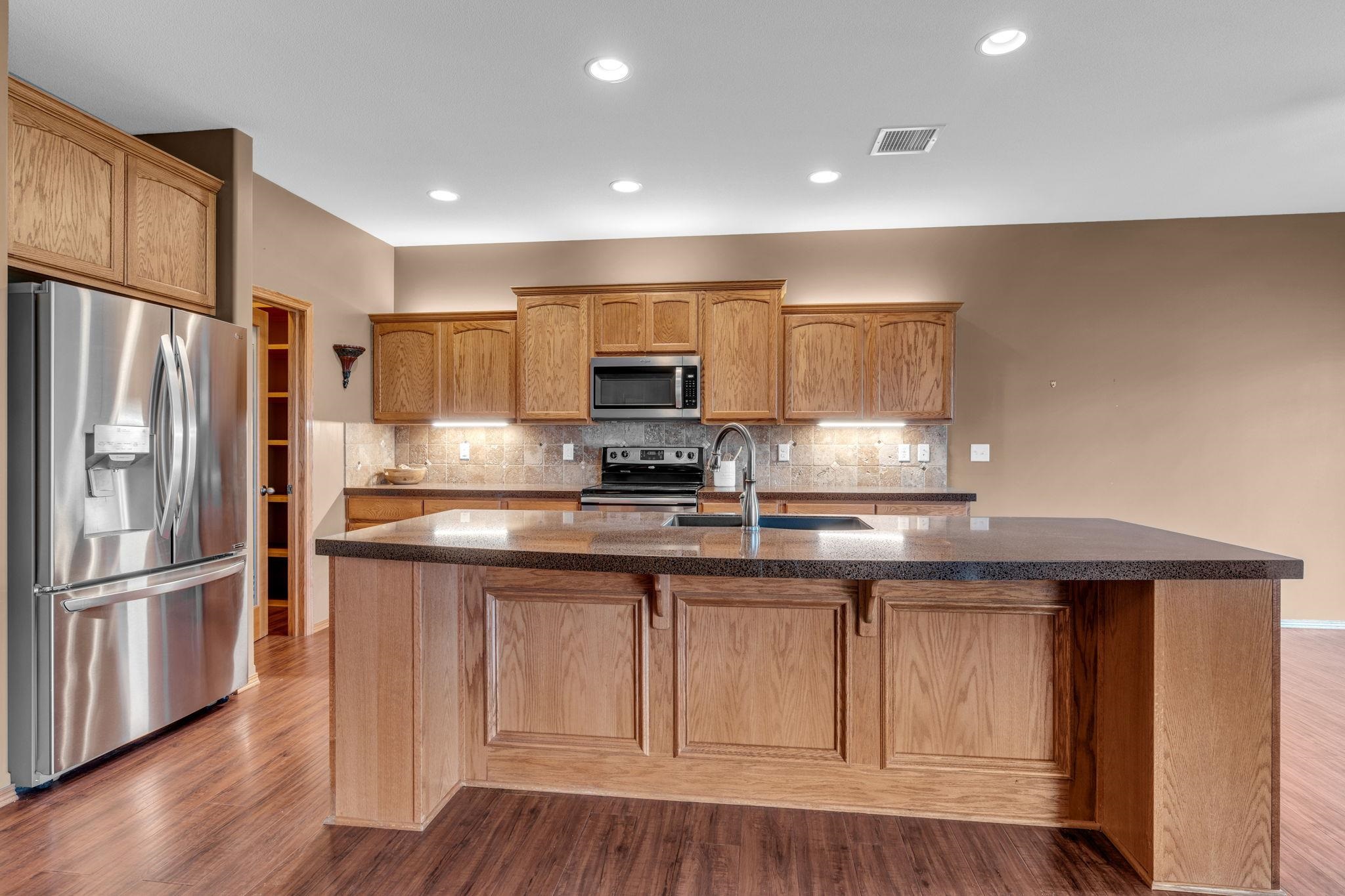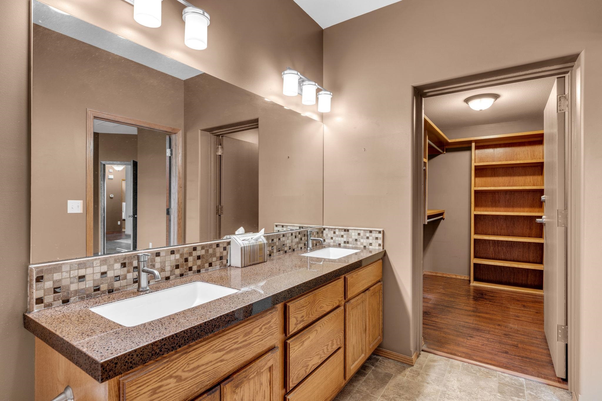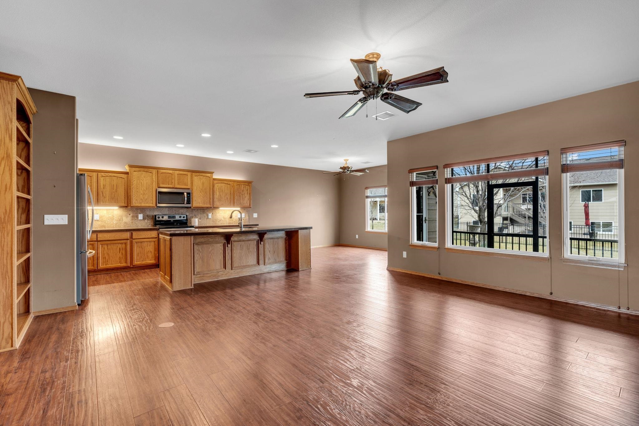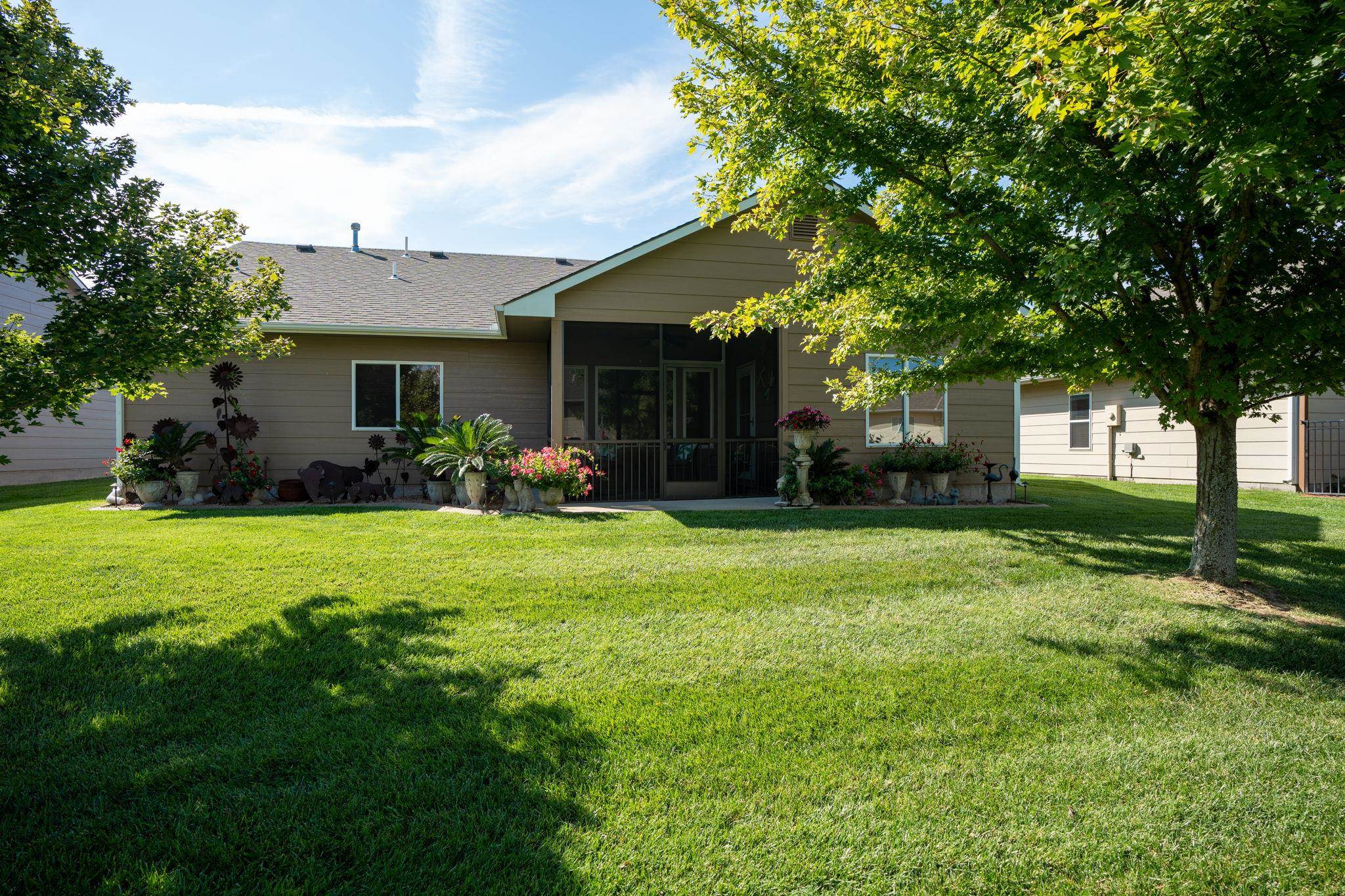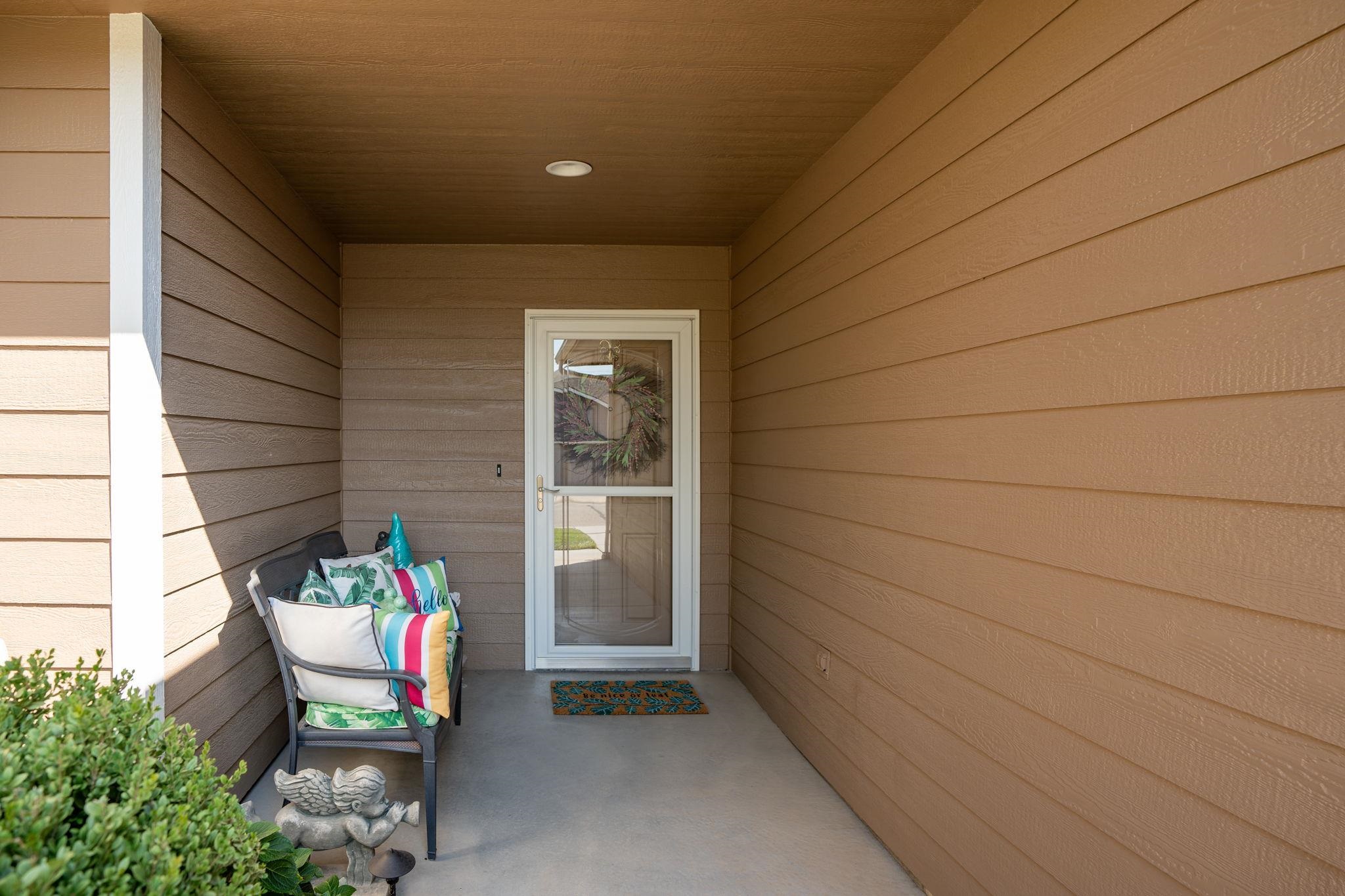 - Description: Welcome to Crystal Gardens! This lovely patio home offers 2 bedrooms, 2 bathrooms, and an oversized 2-car garage, providing you with a low-maintenance, accessible-friendly lifestyle at an affordable cost. With NO special assessments and HOA dues of just $105/month, you'll enjoy lawn care, sprinkler system (on HOA well), snow removal, and trash service. Located in the highly desired Maize School District, this home is close to a variety of dining and shopping. This open floor plan includes a spacious kitchen, large island, a dining alcove adjacent to the kitchen, and a large covered, screened-in deck—ideal for relaxing or entertaining. The kitchen is a chef's dream with a corner pantry, under-cabinet lighting, pull-out storage drawers, and beautiful granite countertops. It includes all stainless-steel appliances. The home boasts laminate hardwood floors and beautiful tile, adding warmth and style throughout. The spacious primary suite includes a walk-in shower and a large walk-in closet that doubles as a concrete safe room. Additional features include ample storage space with room to keep everything organized. This home has main-floor laundry, and the front spare bedroom is just as spacious as the primary bedroom, providing more room than the typical 2-bedroom home. The beautifully landscaped yard provides privacy and excellent curb appeal. This well-maintained home is available for immediate possession—don’t wait to make it yours today! Show all description