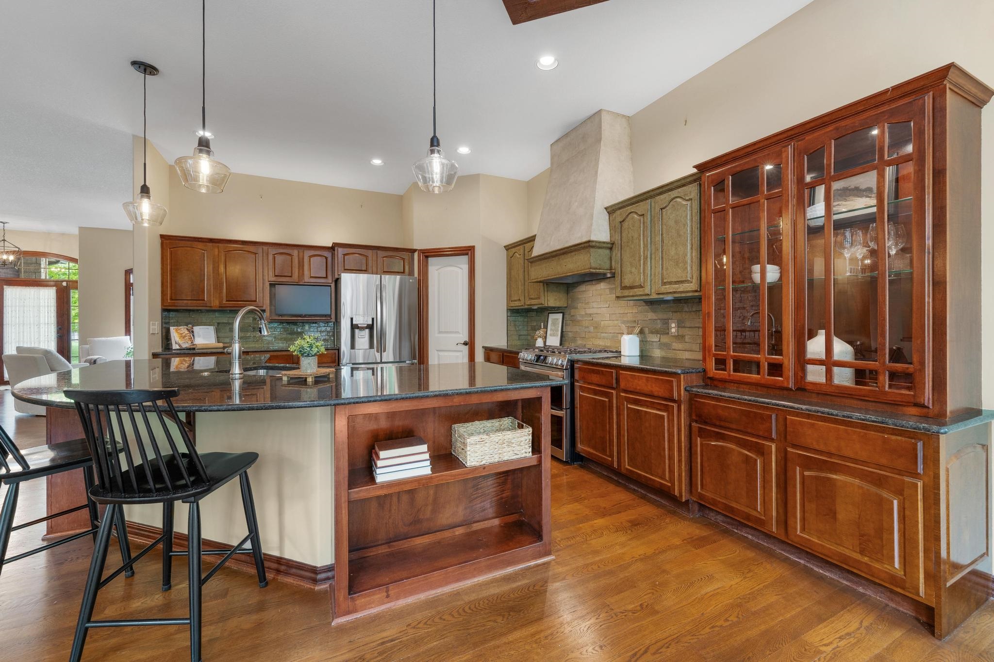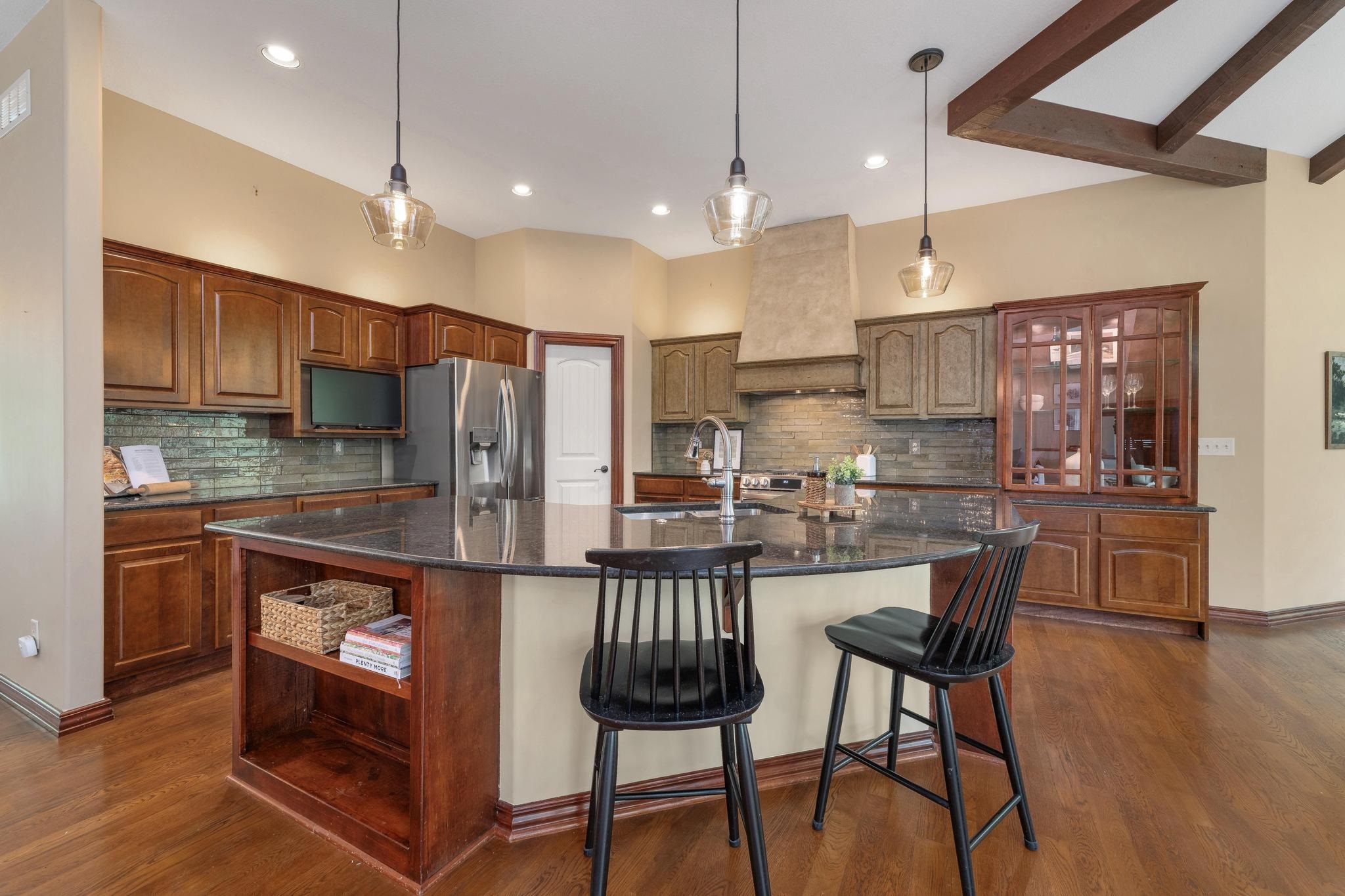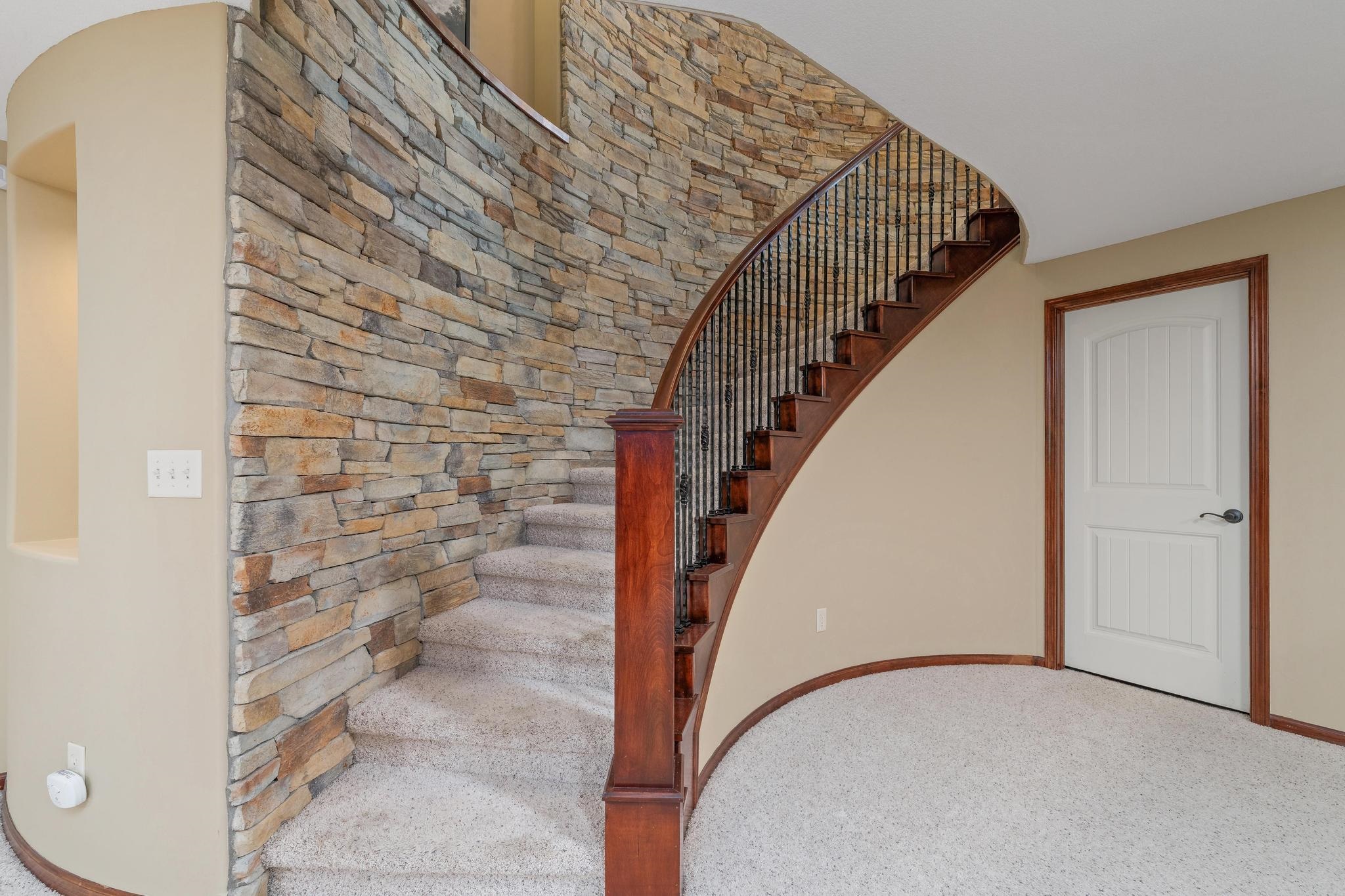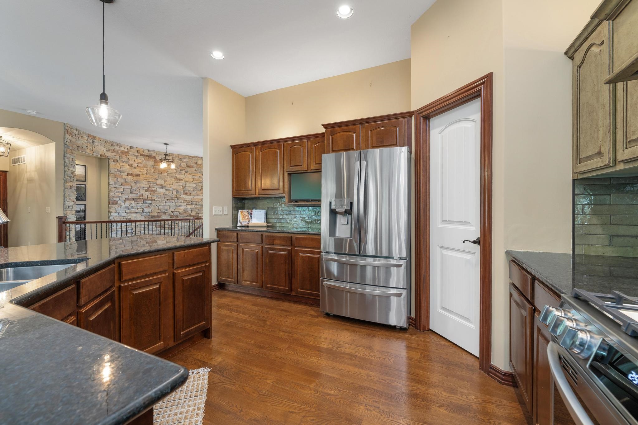 - Description: Welcome home to this gorgeous, move-in ready house located in the coveted neighborhood, The Hawthorne. This wonderful home has no special taxes remaining, has lower Sedgwick county taxes, and is in the award-winning Andover School District! Hawthorne is known for the beautiful walking paths through woods and along multiple ponds, a great neighborhood swimming pool, phenomenal location with easy access to: K-96 highway, private and parochial schools, shopping and dining, bike ability, and walkability to Wichita's most beautiful trail-Redbud trail. The house offers beautiful curb appeal featuring stone and brick and mature trees. The lot is a rare find as it offers complete privacy nestled in the woods and mature landscape. The garage is a 3-car tandem. Brand-new roof added in 2022!! Upon entering the home you'll be greeted by a beautiful foyer and fantastic main floor square footage of nearly 2200 square feet. The floors are real hardwood floors, and there are multiple living areas that provide flex space of how you set up your living areas! The kitchen has new granite countertops and features a large island with ample storage, new stainless steel appliances, a new gas range that was previously electric, new disposal, a large walk-in pantry, and a large traditional dining room lined with gorgeous windows. The primary suite is extremely spacious featuring electronic window shades that look out to the completely private backyard and brand-new carpet in the bedroom and huge walk-in closet. The primary bathroom has a walk-in shower, bathtub, and two vanities. There is an additional bedroom and full bathroom on the main floor as well. The featured curved staircase with a floor to ceiling stonewall leads you to the light and bright basement with view-out windows. There is a large basement bar that could easily function as a secondary kitchen, a second gas fireplace, two bedrooms, and one full bath. There is great storage as well. This move-in ready and timeless home offers incredible value with the quality of construction and materials, location and neighborhood, and completely private backyard! This is a rare one to come to market. Schedule your showing today! Show all description