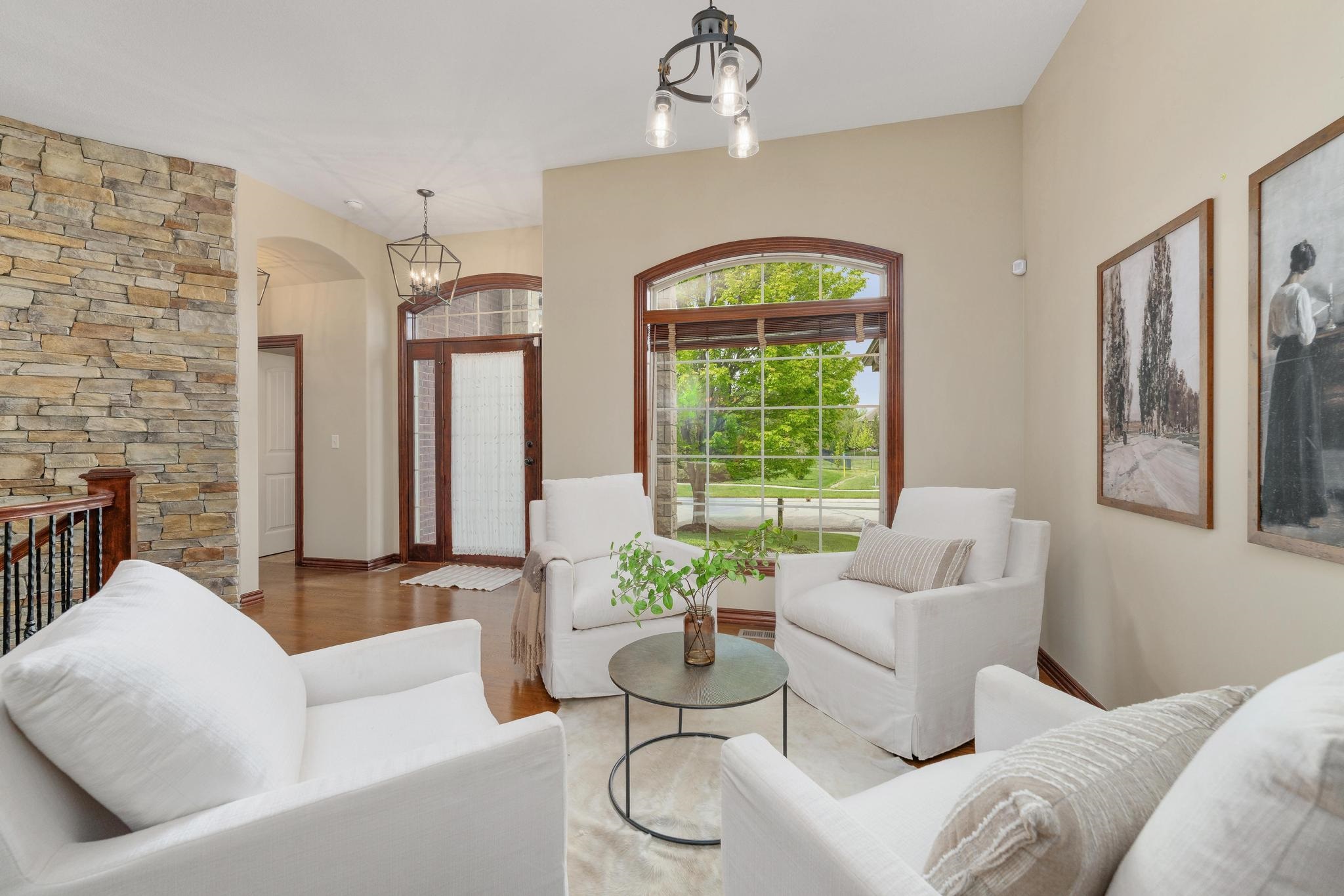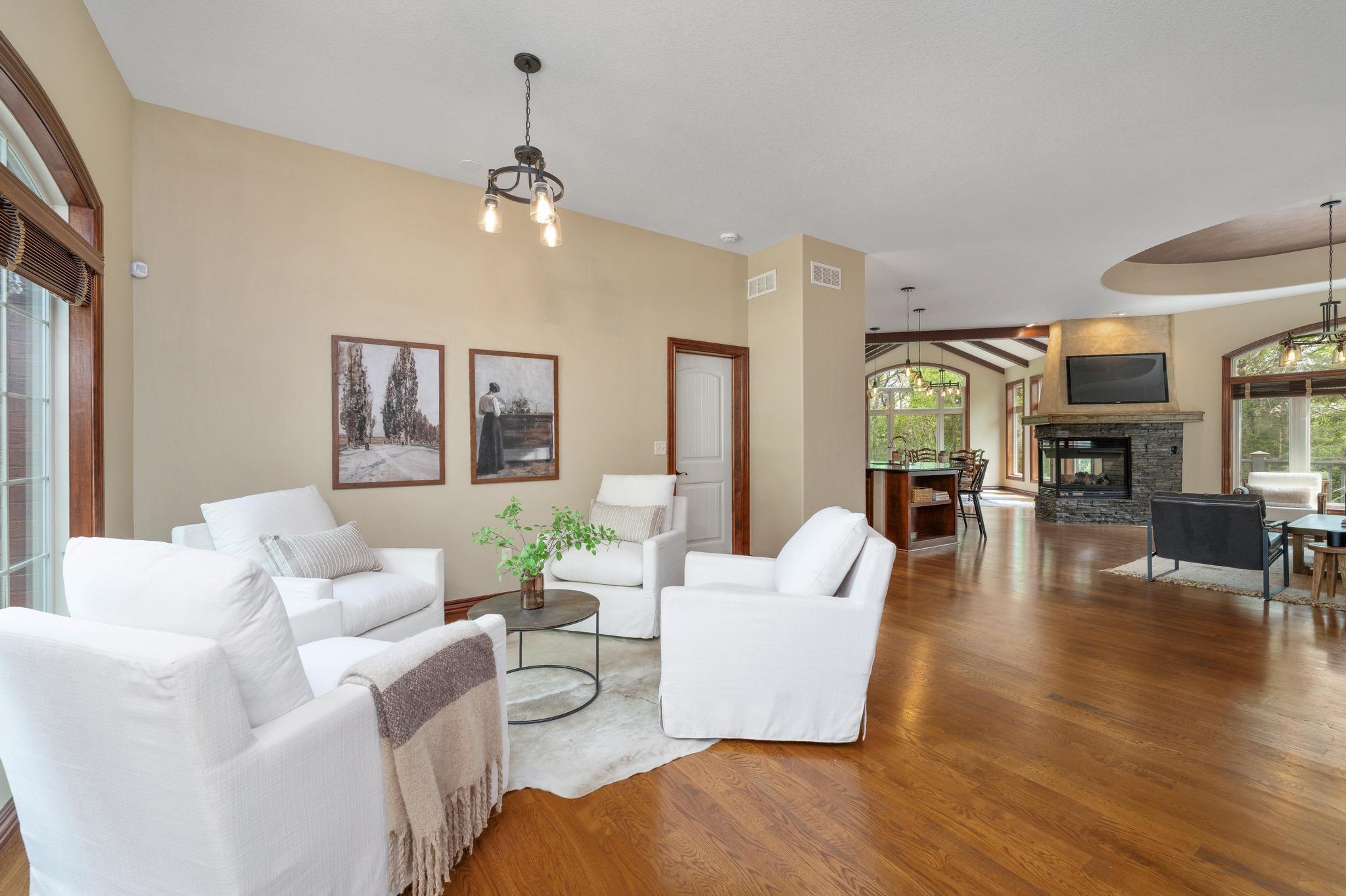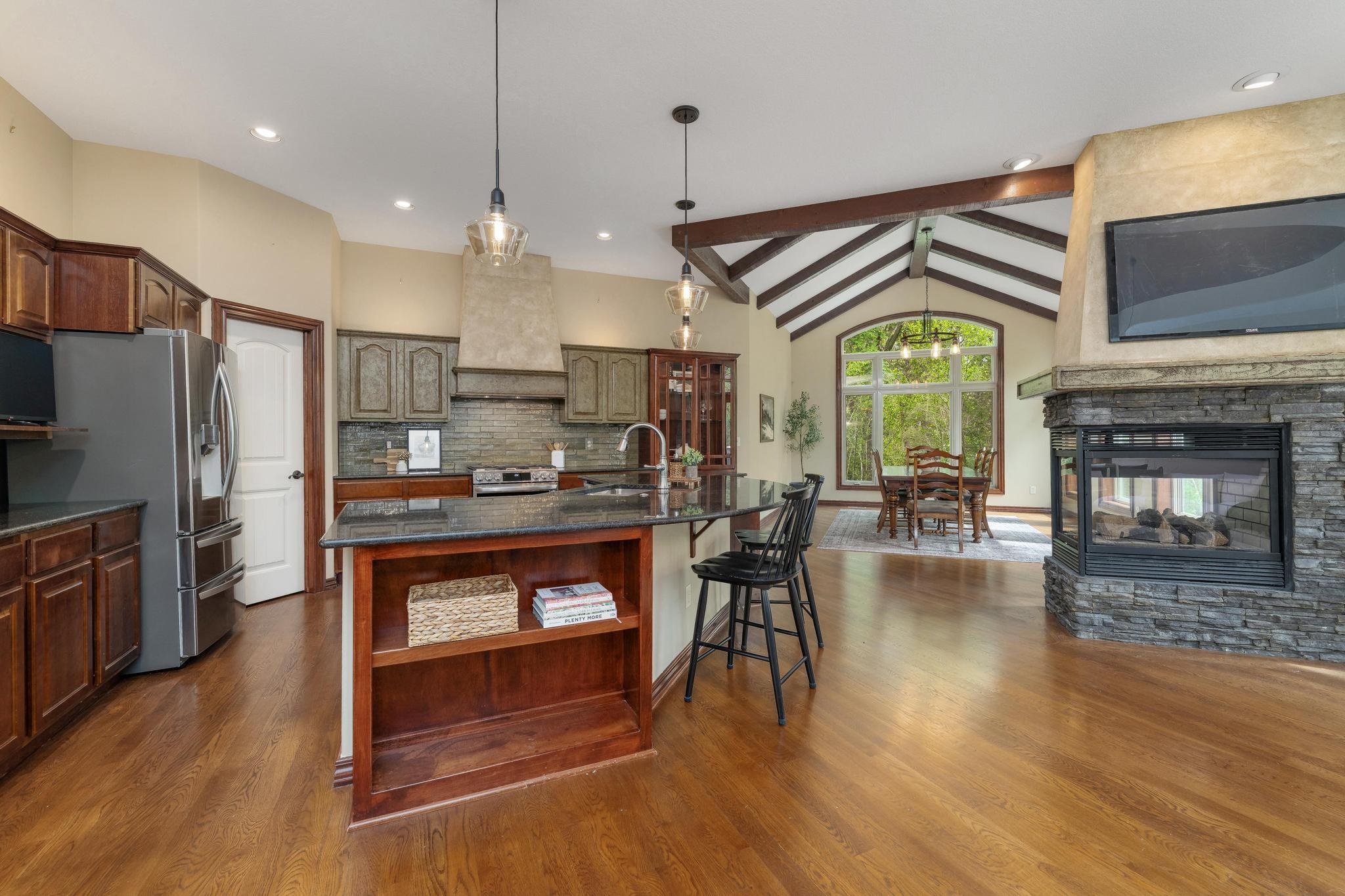 - Description: Welcome home to this gorgeous, move-in ready house located in the coveted neighborhood, The Hawthorne. This wonderful home has no special taxes remaining, has lower Sedgwick county taxes, and is in the award-winning Andover School District! Hawthorne is known for the beautiful walking paths through woods and along multiple ponds, a great neighborhood swimming pool, phenomenal location with easy access to: K-96 highway, private and parochial schools, shopping and dining, bike ability, and walkability to Wichita's most beautiful trail-Redbud trail. The house offers beautiful curb appeal featuring stone and brick and mature trees. The lot is a rare find as it offers complete privacy nestled in the woods and mature landscape. The garage is a 3-car tandem. Brand-new roof added in 2022!! Upon entering the home you'll be greeted by a beautiful foyer and fantastic main floor square footage of nearly 2200 square feet. The floors are real hardwood floors, and there are multiple living areas that provide flex space of how you set up your living areas! The kitchen has new granite countertops and features a large island with ample storage, new stainless steel appliances, a new gas range that was previously electric, new disposal, a large walk-in pantry, and a large traditional dining room lined with gorgeous windows. The primary suite is extremely spacious featuring electronic window shades that look out to the completely private backyard and brand-new carpet in the bedroom and huge walk-in closet. The primary bathroom has a walk-in shower, bathtub, and two vanities. There is an additional bedroom and full bathroom on the main floor as well. The featured curved staircase with a floor to ceiling stonewall leads you to the light and bright basement with view-out windows. There is a large basement bar that could easily function as a secondary kitchen, a second gas fireplace, two bedrooms, and one full bath. There is great storage as well. This move-in ready and timeless home offers incredible value with the quality of construction and materials, location and neighborhood, and completely private backyard! This is a rare one to come to market. Schedule your showing today! Show all description