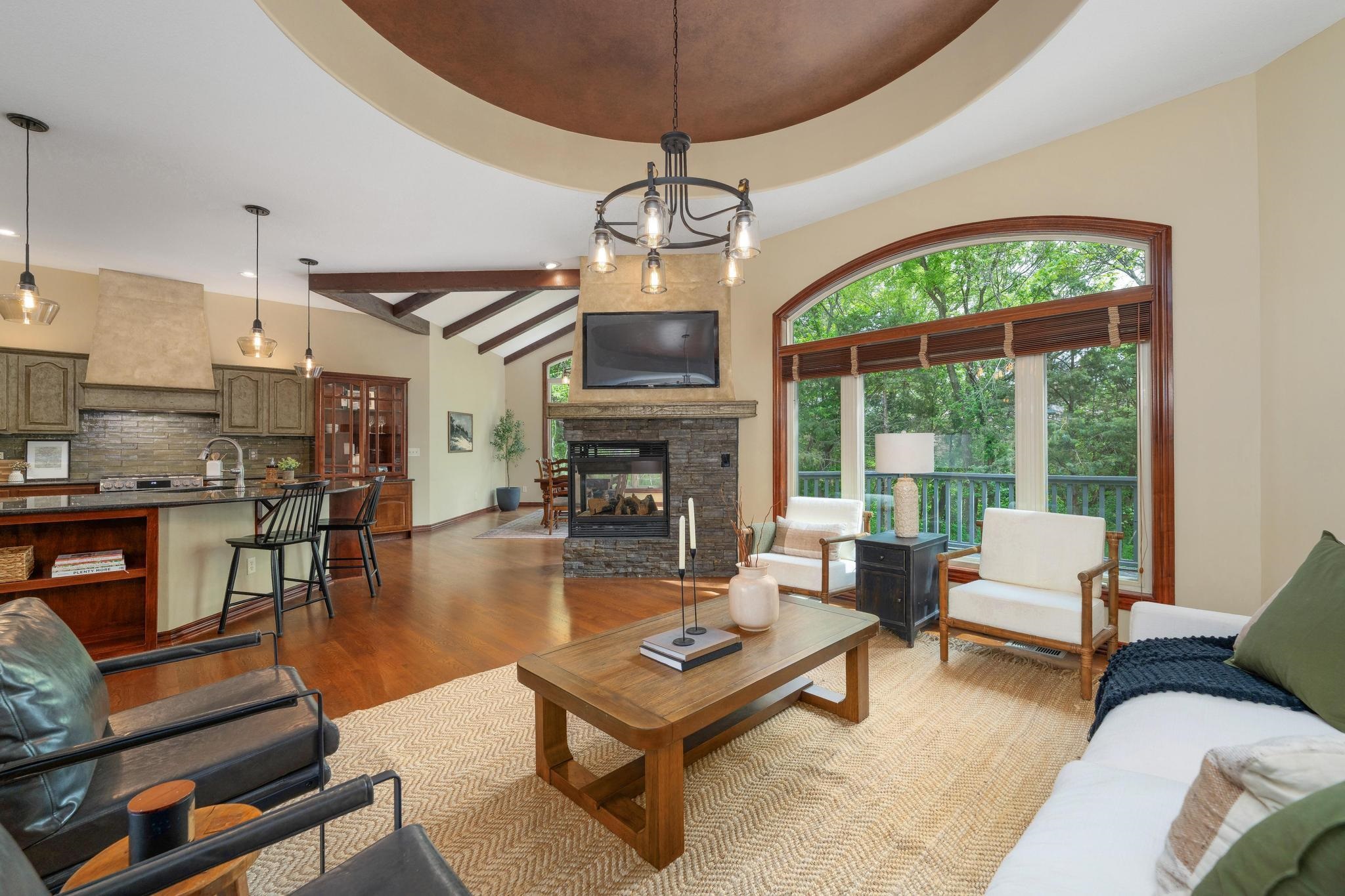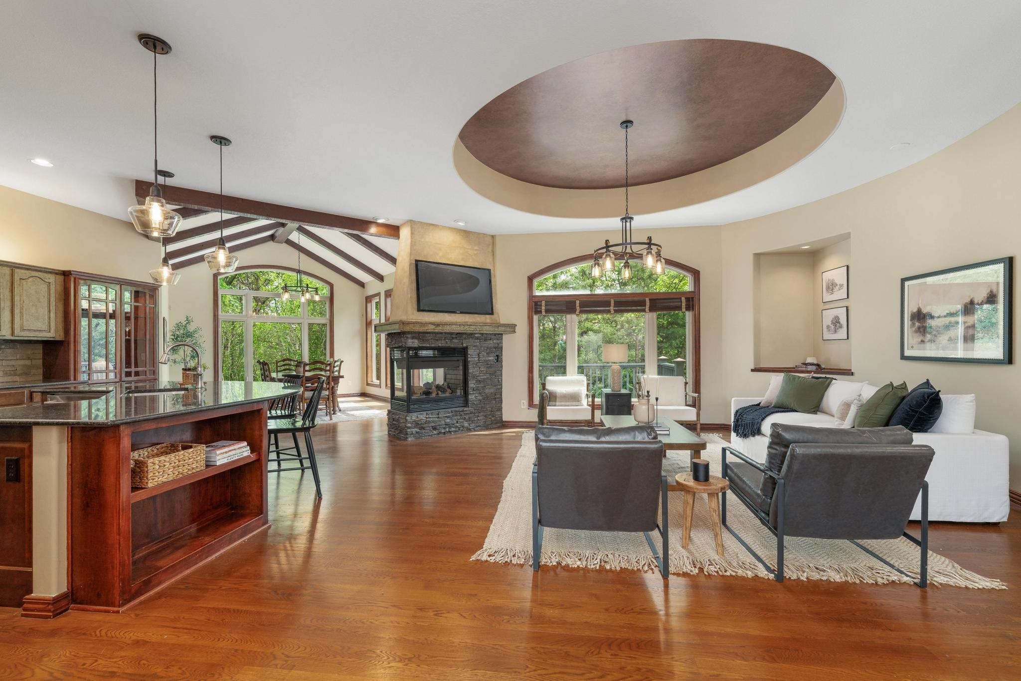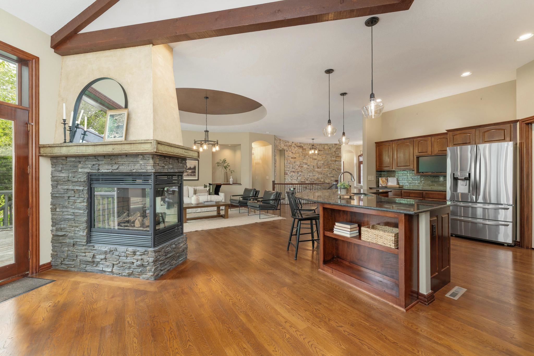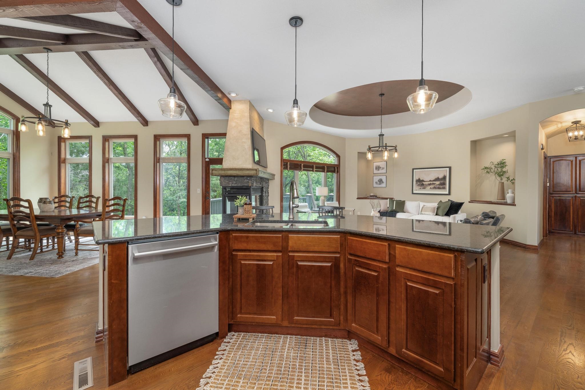 - Description: Welcome home to this gorgeous, move-in ready house located in the coveted neighborhood, The Hawthorne. This wonderful home has no special taxes remaining, has lower Sedgwick county taxes, and is in the award-winning Andover School District! Hawthorne is known for the beautiful walking paths through woods and along multiple ponds, a great neighborhood swimming pool, phenomenal location with easy access to: K-96 highway, private and parochial schools, shopping and dining, bike ability, and walkability to Wichita's most beautiful trail-Redbud trail. The house offers beautiful curb appeal featuring stone and brick and mature trees. The lot is a rare find as it offers complete privacy nestled in the woods and mature landscape. The garage is a 3-car tandem. Brand-new roof added in 2022!! Upon entering the home you'll be greeted by a beautiful foyer and fantastic main floor square footage of nearly 2200 square feet. The floors are real hardwood floors, and there are multiple living areas that provide flex space of how you set up your living areas! The kitchen has new granite countertops and features a large island with ample storage, new stainless steel appliances, a new gas range that was previously electric, new disposal, a large walk-in pantry, and a large traditional dining room lined with gorgeous windows. The primary suite is extremely spacious featuring electronic window shades that look out to the completely private backyard and brand-new carpet in the bedroom and huge walk-in closet. The primary bathroom has a walk-in shower, bathtub, and two vanities. There is an additional bedroom and full bathroom on the main floor as well. The featured curved staircase with a floor to ceiling stonewall leads you to the light and bright basement with view-out windows. There is a large basement bar that could easily function as a secondary kitchen, a second gas fireplace, two bedrooms, and one full bath. There is great storage as well. This move-in ready and timeless home offers incredible value with the quality of construction and materials, location and neighborhood, and completely private backyard! This is a rare one to come to market. Schedule your showing today! Show all description