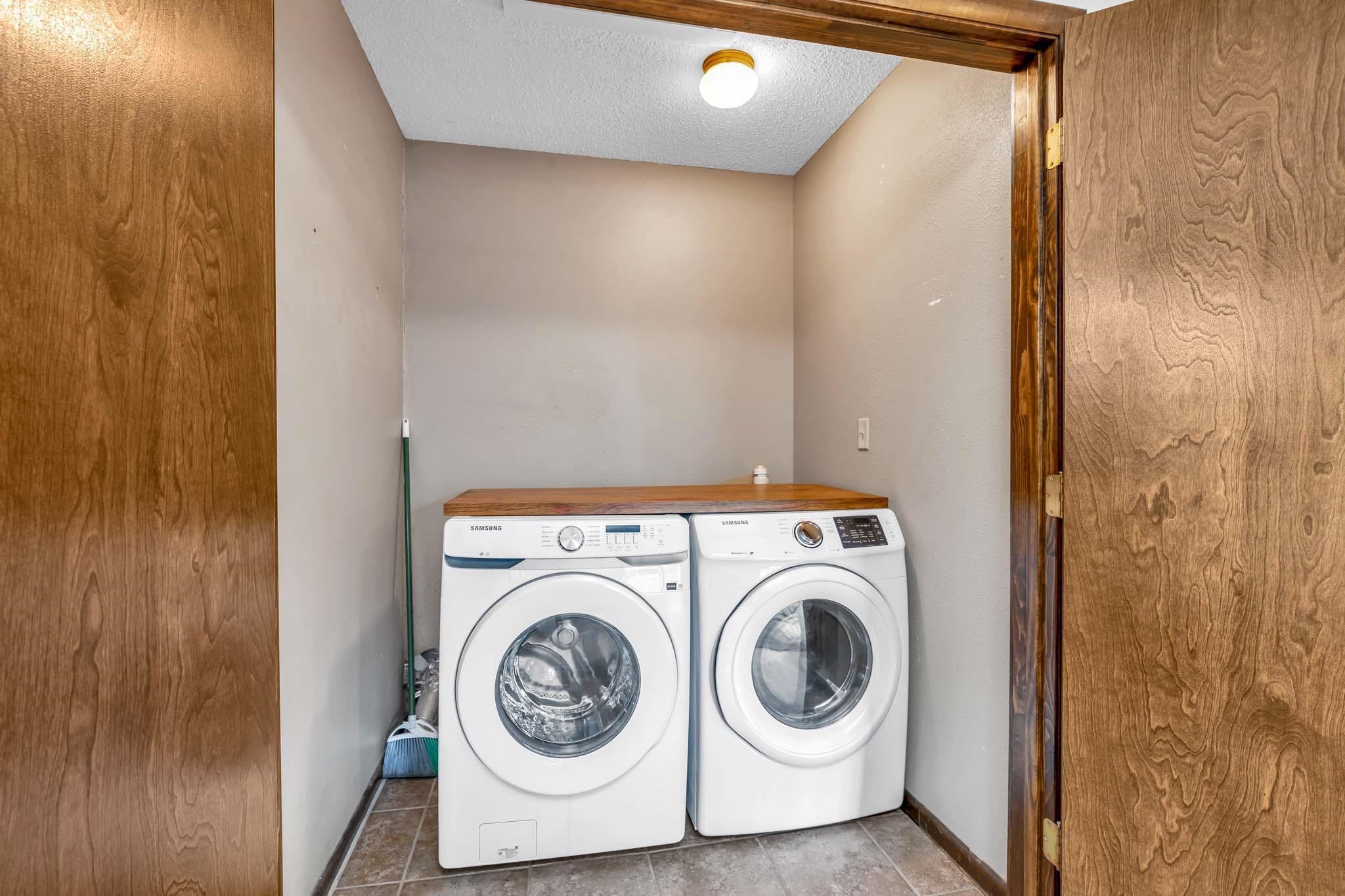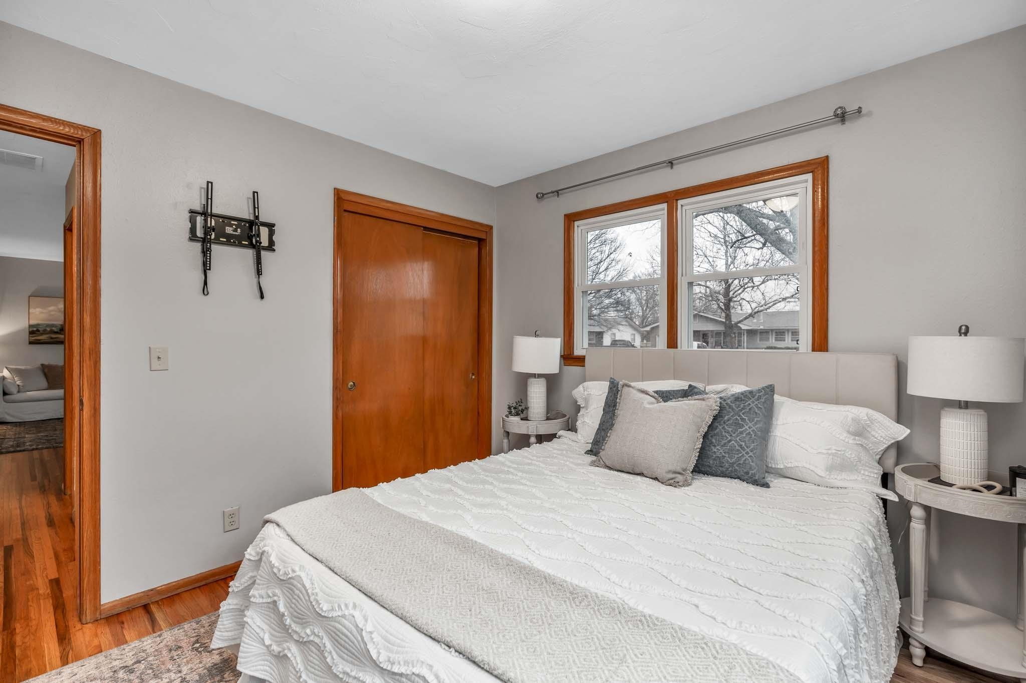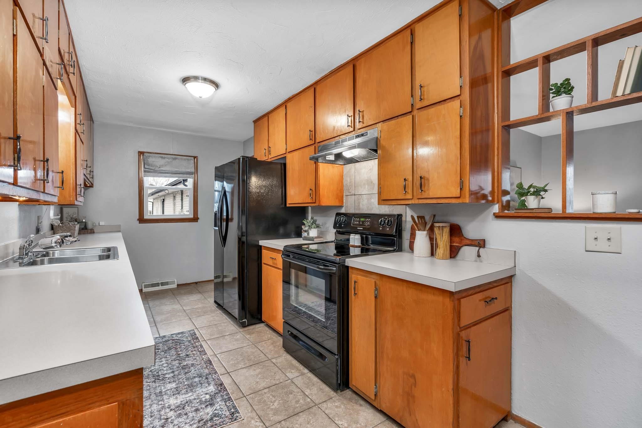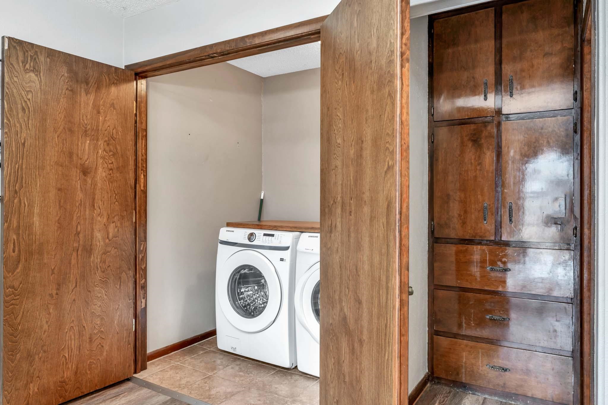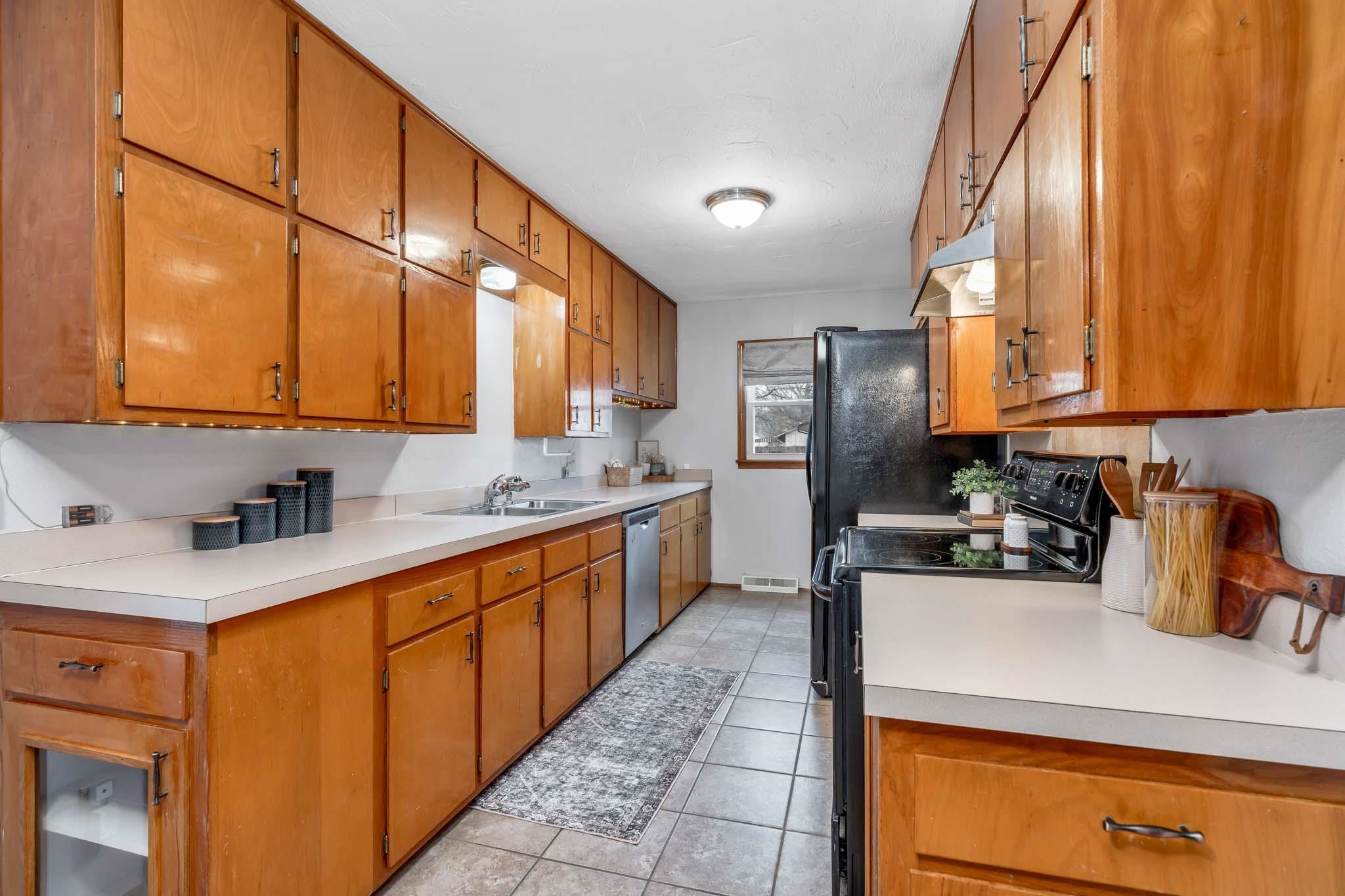 - Description: Welcome to this charming 3-bedroom, 2-bathroom home with nearly 1400 sq ft. of spacious living! Upon entering, you'll be greeted by an inviting living room with large windows. It seamlessly flows into the dining and kitchen areas, which boast an abundance of wood cabinetry, ample storage, and included appliances. The 20x18 family room is perfect for everyone! The main level also includes a convenient laundry area. Outside, the property continues to impress with a treed lot that features a covered patio, deck, a secure chain and wood fence, and a practical storage building. This home is packed with fantastic updates and features, including newer windows, guttering, and doors (installed between 2017 & 2018). HVAC is new in 2025, wood floors were also refinished in 2025! As an added bonus, the attached 1-car garage has a hidden storm shelter in the floor, offering peace of mind during severe weather. With plenty of room to spread out and all the thoughtful details throughout, this home is perfect for creating lasting memories. Don't miss the opportunity to make it yours! Show all description