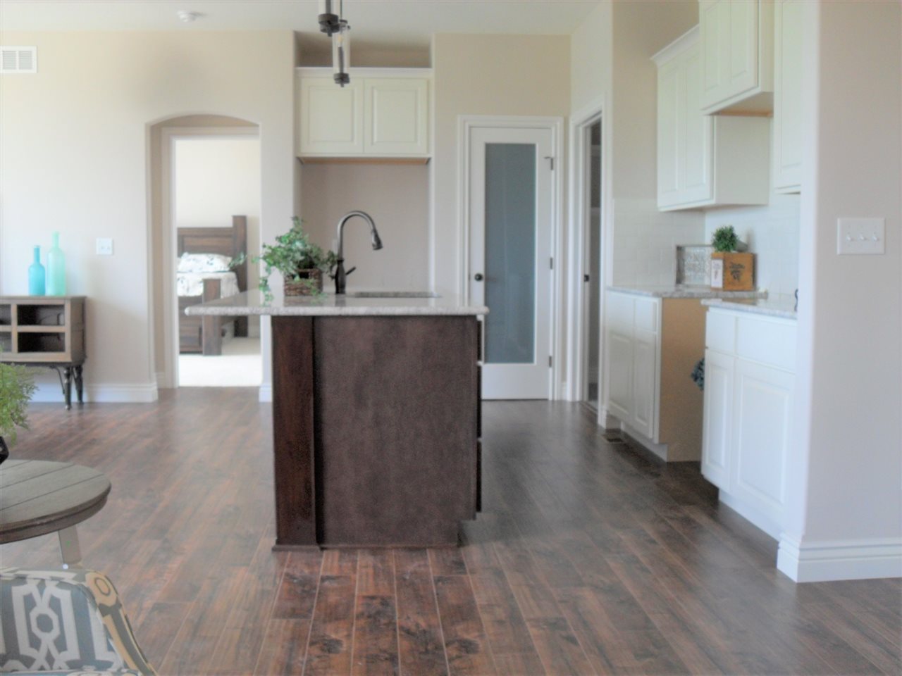 - Description: The Morgan plan lives large for a small price! This great home features a larger covered deck overlooking a private treelined back yard with open space beyond! The split bedroom plan offers a roomy master suite with no step locker shower and a walk in closet. The kitchen features granite counters, huge walk-in pantry and granite counters with gleaming wood floors throughout the main living area! This home comes equipped with irrigation well, sprinklered and sodded yard, so nothing to do but move right in! Show all description
