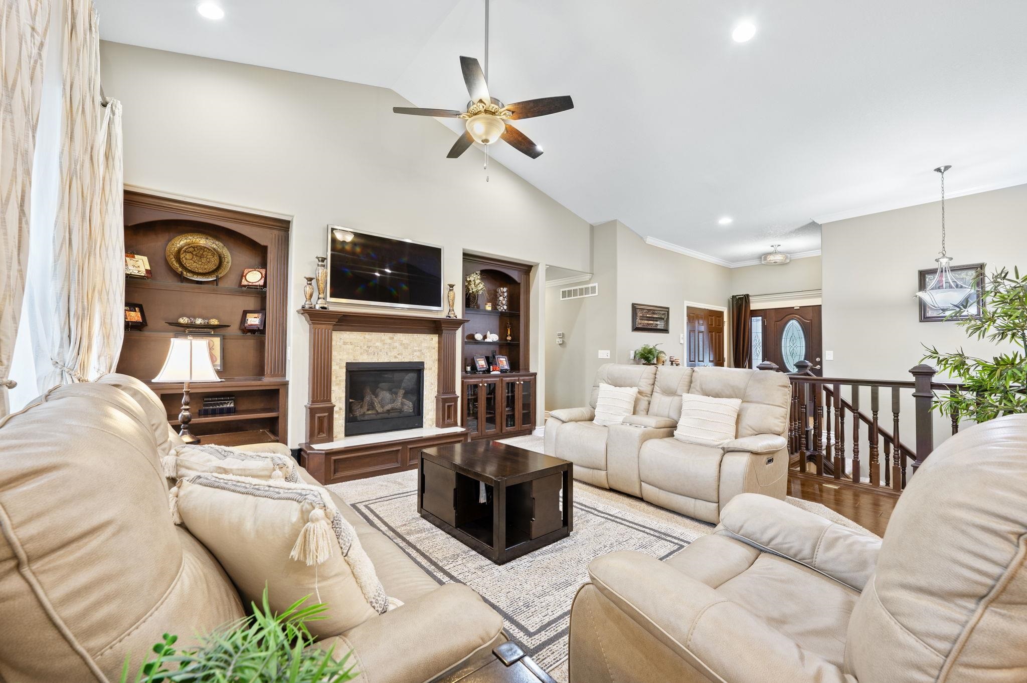 - Description: Welcome to your dream home in the coveted Belle Chase development! This immaculately maintained property boasts 6 spacious bedrooms in addition to a designated office and workout room. The heart of the home, the stunning kitchen, is adorned with granite countertops and a large island, perfect for family gatherings. The phenomenal screened-in back deck offers a serene view of the .7 acre tree-lined lot, making it an ideal spot for your morning coffee or evening relaxation. The walkout basement is a fun zone with a rec room, featuring a built-in entertainment center for your movie nights and parties. A wet bar equipped with a full-size fridge and a designated storm shelter for your safety are also part of this amazing basement. The 4-car garage, sheetrocked for a clean and finished look, ensures ample space for your vehicles and storage. The Belle Chase development enhances your living experience with neighborhood features like a refreshing pool, a fun-filled playground, tranquil walking paths, and picturesque ponds. This home is more than just a house; it's a lifestyle. Don't miss out on this opportunity to make it yours! Show all description