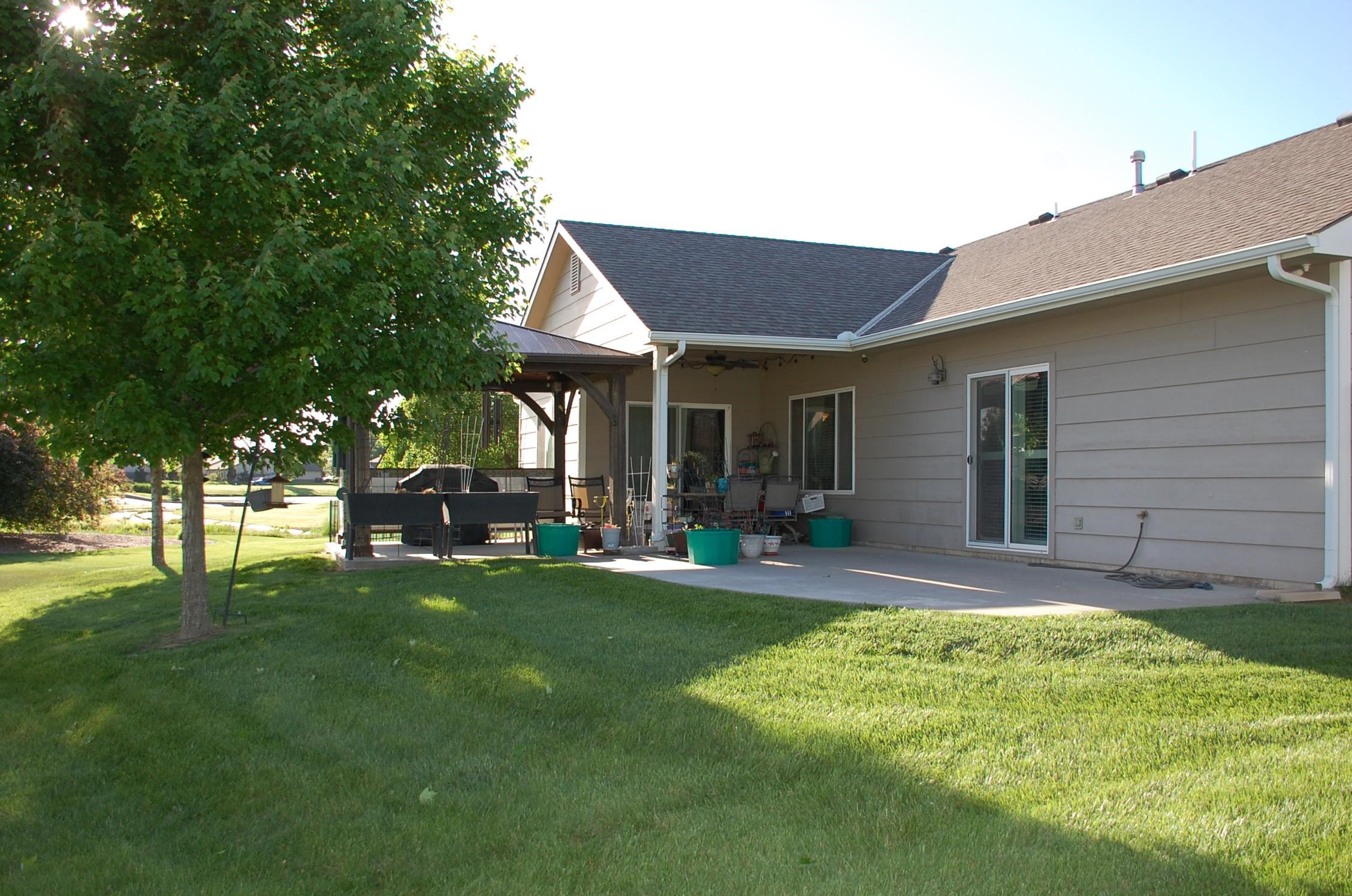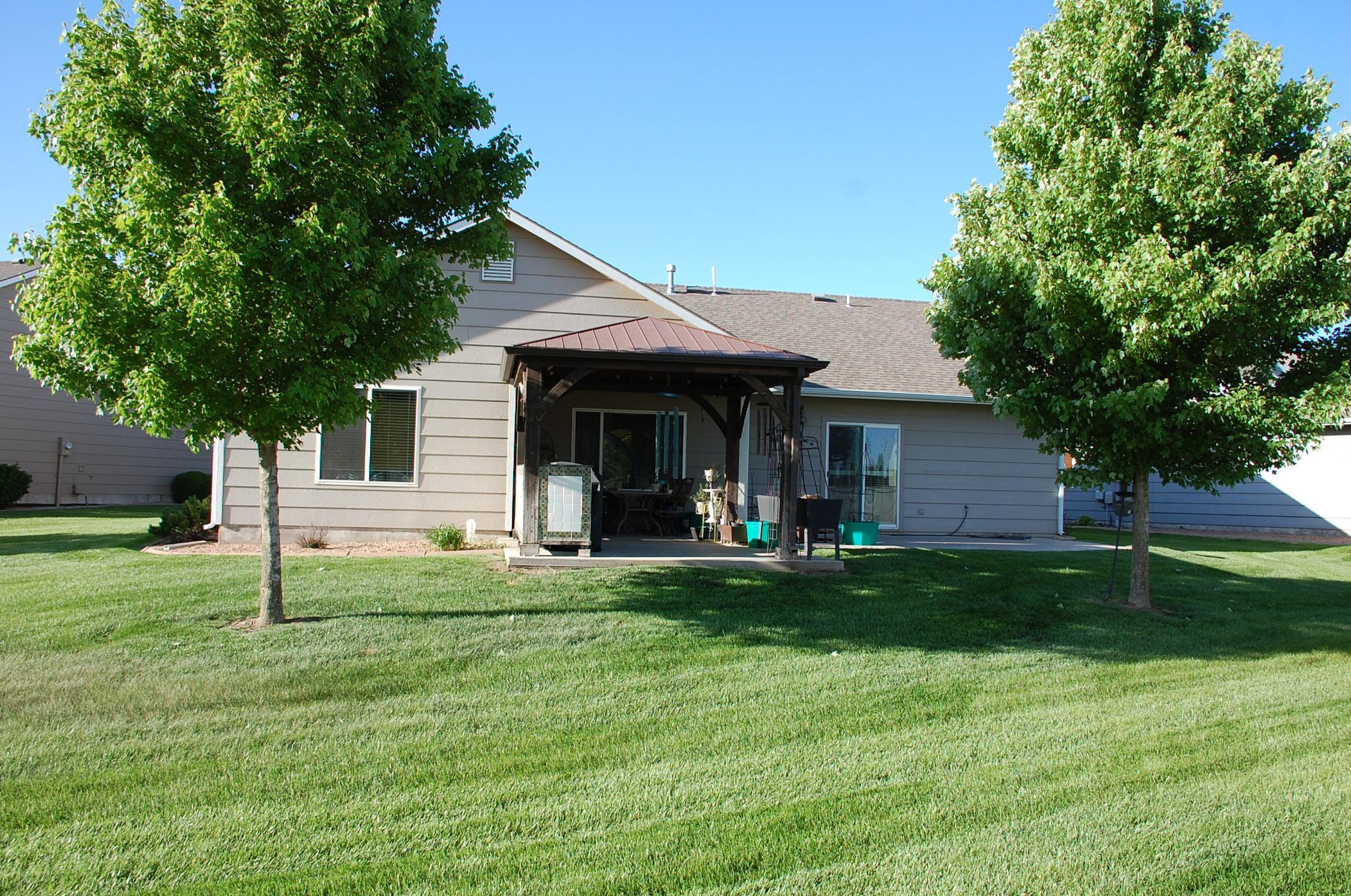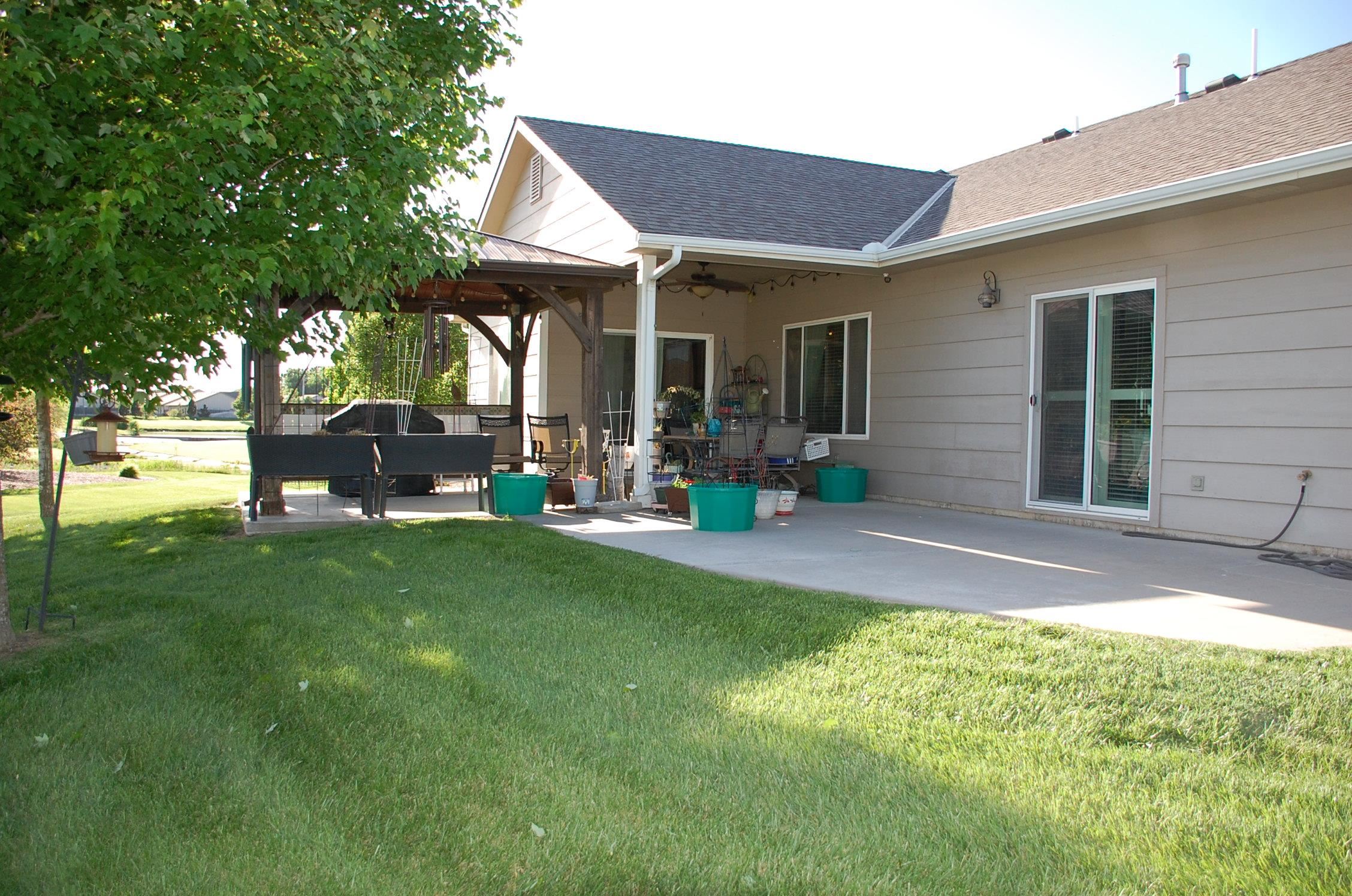 - Description: Crystal Gardens Patio Home! This beautifully maintained patio home offers Maintenance free living in style. 3 bedrooms, 2 bathrooms with an oversized 29’ deep by 23’ wide sheet rocked & painted garage with an epoxide floor and an electric heater. This open floor plan features approx. 1722 sq ft with a large Kitchen with a Granite center island, eating bar which is perfect for entertaining & serving all your family & friends. This area has great counter and cabinet space, a large walk-in pantry, stainless steel appliances & beautiful wood flooring. Large living room and Dining area all have high ceiling with Crown molding. The Kitchen, Living and Dining areas are open and spacious! Master suite with a private walk out to the patio, good-sized walk-in closet, and is a concrete storm shelter. The master bathroom features solid surface, double sink vanity and an oversized shower. Bedroom # 2 & 3rd bedroom both have a 2nd full bathroom just outside each room. Bedroom # could be an office, it has custom built in shelving across one whole wall. Bedroom #2 could also be a great office or just 2 bedrooms. Main floor laundry/mud room is conveniently located between master bedroom & the garage. There is a large custom covered patio complete with pergola & plenty of space to entertain and then a second uncovered patio area. HOA maintains all lawn, edging, trees, shrubs, sprinklers, trash, snow and commons areas. Updated fixtures, lighting, carpet, wood floors, countertops, humidifier, Security System. No Specials and a great location to many West side things. Don’t wait this won’t last! Show all description