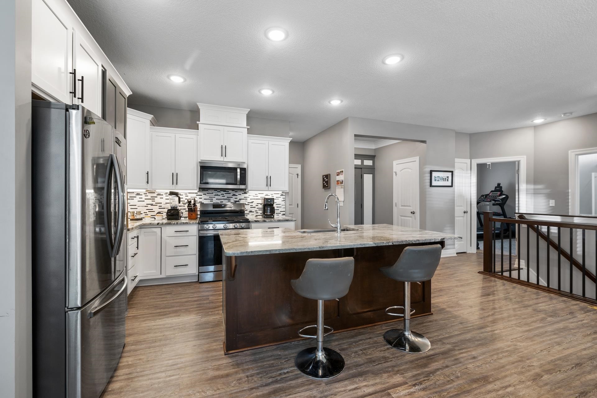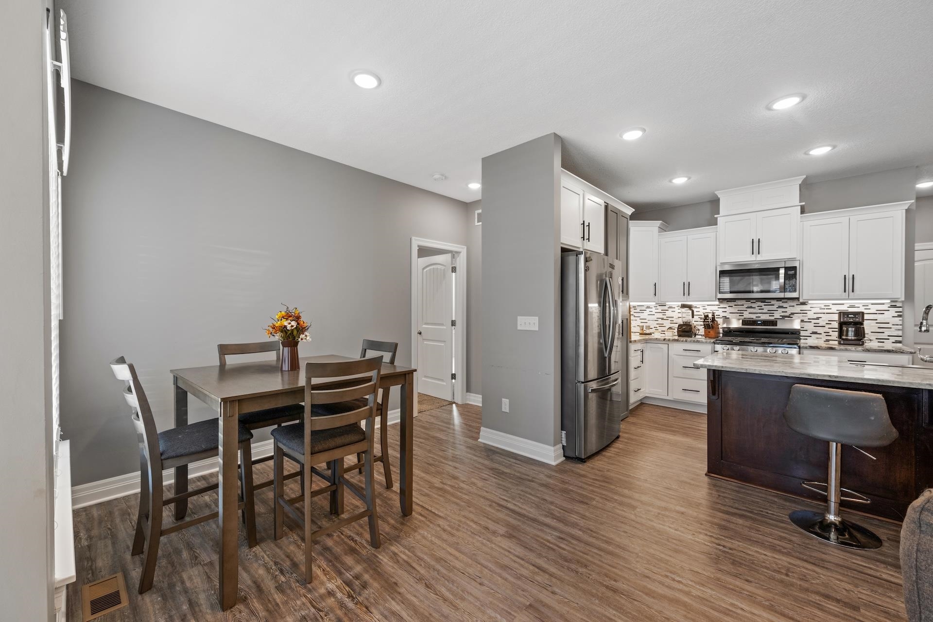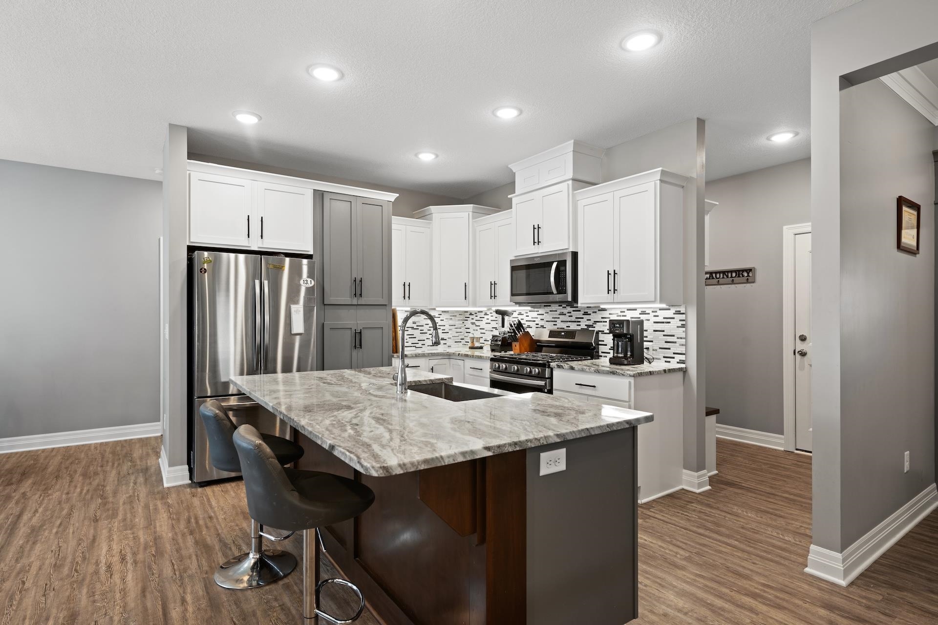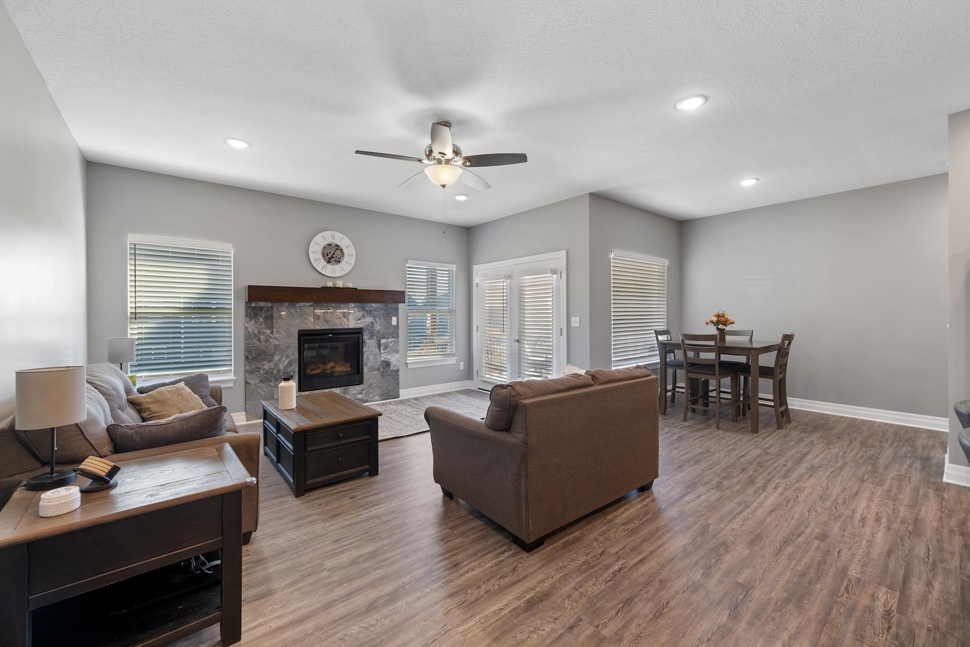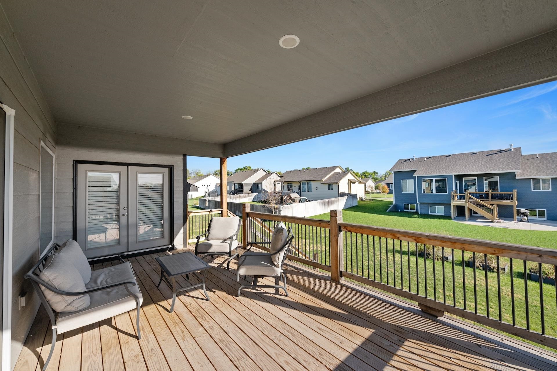 - Description: VA assumable loan at 2.875% for eligible veterans! This almost-new 5-bedroom, 3-bath ranch, built in 2021, offers a perfect blend of style and functionality. The inviting front porch welcomes you into an open-concept main living space, bathed in natural light from large windows, with luxury vinyl plank flooring throughout. The living room boasts a gas fireplace with a tile surround, creating a cozy atmosphere. The chef’s kitchen features granite countertops, a stunning tile backsplash, a walk-in pantry, an oversized island with an eating bar and farmhouse sink, and stainless-steel appliances, including a gas range — ideal for hosting and everyday living. (Kitchen refrigerator does not stay.) A main floor laundry with a drop zone as you enter from the garage adds convenience. The split bedroom plan ensures privacy for the primary suite, complete with access to the deck. The spa-like primary bath includes granite countertops, tile floors, double sinks, a stand-alone tiled shower with dual showerheads, extra counter space, and a large walk-in closet. Two additional bedrooms and a hall bath with granite countertops, tile flooring, and a tub/shower combo complete the main level. The finished view-out basement offers a spacious family room perfect for entertaining friends and family with lots of space for a game table, a wet bar with granite counters and a walk-in pantry, plus two additional bedrooms, each with walk-in closets. A third full bath rounds out this expansive lower level. Outside, enjoy a large, covered deck, patio, and raised garden beds with drip lines from the backyard sprinkler system. The convenient East-side setting is close to shopping districts, churches, restaurants and major employers plus ease of reaching Kellogg Ave, K-96 and the Kansas Turnpike for getting anywhere in the greater Wichita area. This home is the perfect blend of modern amenities and thoughtful design plus still has that new home feel! Don’t miss your chance to make it yours today!! Call for your own private showing!! Show all description
