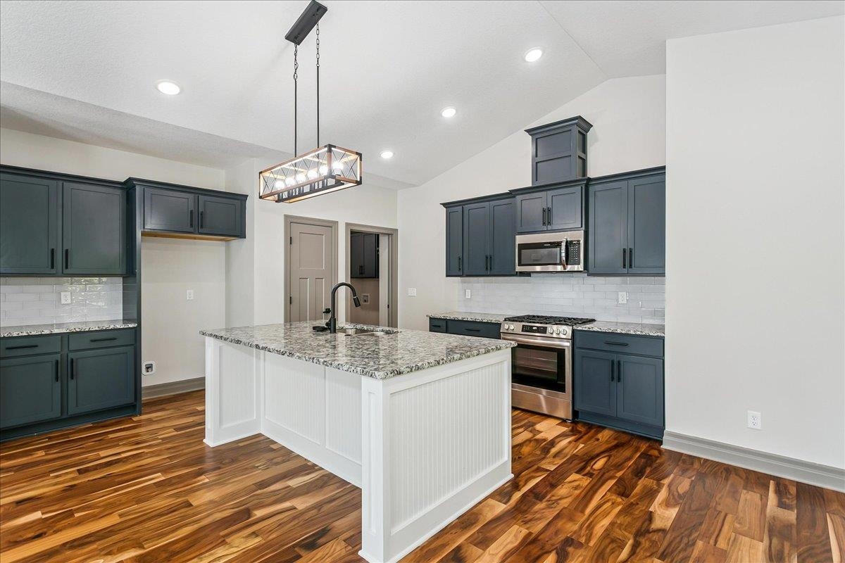 - Description: **BUYER INCENTIVE Seller is offering $5000 towards buyers closing costs** Like new only one owner! Custom floor plan with elegant selections making this a one of a kind home. Come tour this gorgeous 5 bedroom, 3 bathroom home with a full finished basement and 3 car attached garage. The main level has a beautiful built in bench as you walk in with a full bedroom and full bathroom before you reach the living area. The living room features high vaulted ceiling, electric fireplace and warm hardwood flooring through-out. The gourmet kitchen comes all equipped with stainless steel appliances, large island and eating bar, breakfast bar, granite counter tops, pantry and right off it is the main floor laundry room. The master suite is off the dinning area and has walk-in tiled shower with a huge master closet and double vanity. Venture down to the basement to the massive family room with decorative built-ins, 3 spacious bedrooms, another full bathroom with a sizable storage. Backyard is beautiful with an underground sprinkler system and a large covered deck. Call now to schedule your exclusive appointment today! Show all description