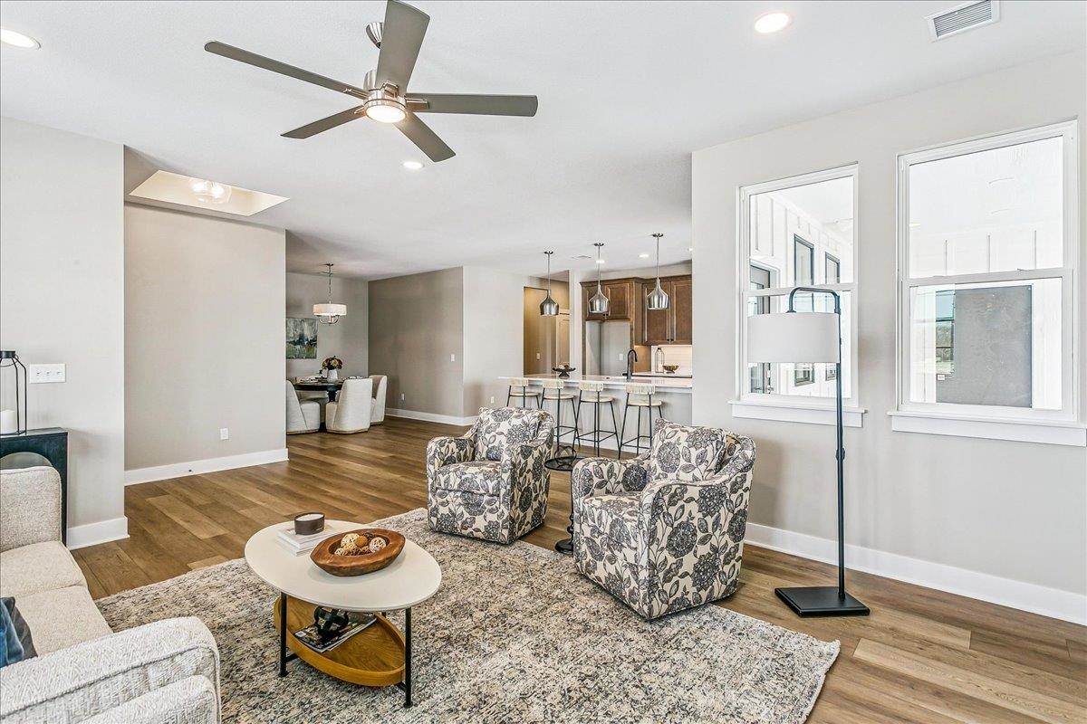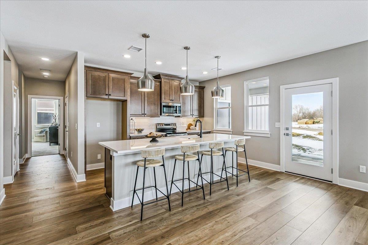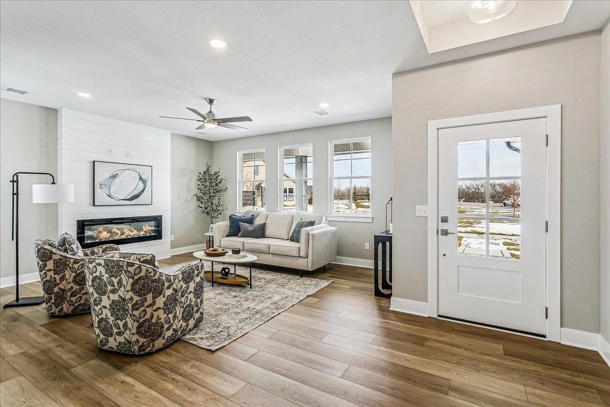 - Description: This home is almost complete - new photos will be uploaded soon!! Enjoy patio home living at its best in our new Courtyards at Jacob’s Farm community (on the northwest corner of 135th Street West and Central Ave). Combine upscale amenities and beautiful, expansive nature setting and you will see why homes in our courtyard communities are so popular! This home is located in our first developed phase of 79 patio homes but there will be over 300 more patio homes to the north of this phase connected by golf cart/walking paths and multiple clubhouses, pools, and active adult indoor and outdoor amenities providing a feeling of living in your own active adult resort! This home is the Salerno plan that features excellent windows across the back of the home providing amazing views of the water and trees on this homesite location. The split bedroom plan has spacious living, kitchen and dining with direct access to a massive and private outdoor living space. The owner suite has access to the outdoor living as well as a zero entry custom tile shower. The owner suite also has a walk through closet conveniently attached to the laundry room. HOA dues cover landscape/sprinkler system maintenance, trash service, snow removal, common area maintenance and exclusive access to all the upcoming amenities including two outdoor heated saltwater swimming pools, two clubhouses pickleball courts, and many additional outdoor amenities for gathering and activities. The clubhouses will have multiple spaces for socializing complete with areas for food prep, restrooms, and exercise room complete with resistance and cardio equipment --- all this exclusive to our courtyard homeowners and their guests. Sales office open daily 1-5 PM. Closed Tuesdays or call for appointment. Room measurements are estimated. Taxes are estimated and disclosed for when taxes are fully assessed. Price includes lot. Show all description
