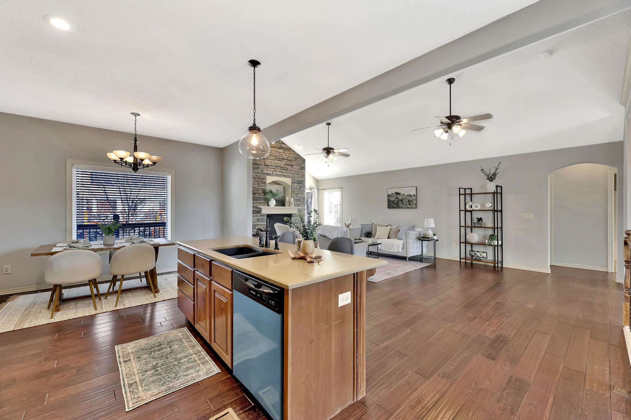 - Description: UPDATED LANDSCAPING: Trees and shrubs trimmed, New weed barrier installed with new mulch for a cleaner prettier curb appeal! COME SEE FOR YOURSELF! Spacious & Inviting 6-Bedroom Home – Perfect for Making Memories! Welcome to this beautiful 6-bedroom, 3-bathroom home, designed for comfort, gatherings, and everyday living. Step inside to find a large family room with vaulted ceilings and a stunning gas fireplace, creating a cozy focal point for relaxing evenings. The kitchen is both functional and inviting, featuring a huge walk-in pantry—perfect for keeping everything organized. The main floor boasts all-new interior paint, and the entire home has brand-new carpeting, making it move-in ready. The dishwasher is brand new, and the roof is just 5 years old, offering peace of mind for years to come. Enjoy your morning coffee on the covered deck, or host summer barbecues on the entertainment patio in the backyard. Downstairs, the spacious basement is an entertainer’s dream, complete with a large wet bar, ideal for game nights and get-togethers. With a 3-car garage, there’s plenty of space for vehicles, storage, and all your hobbies. This home has room to grow and memories to be made—don’t miss your chance to make it yours! Show all description