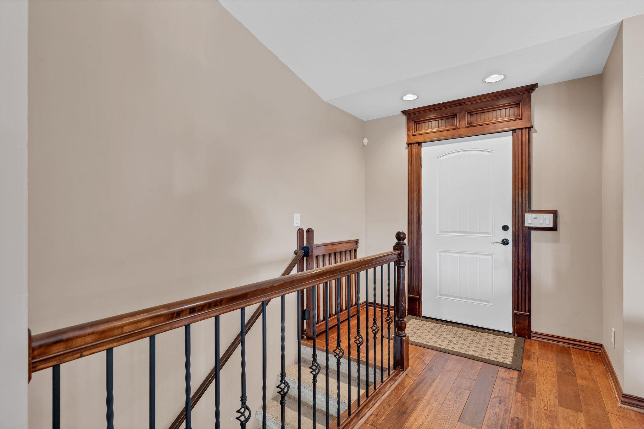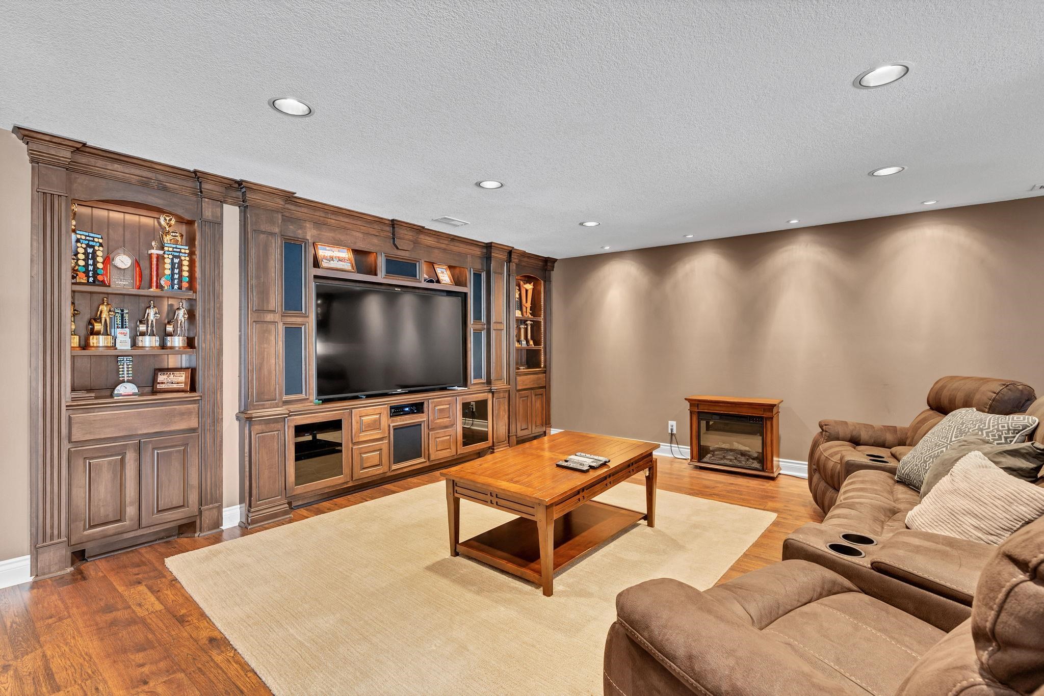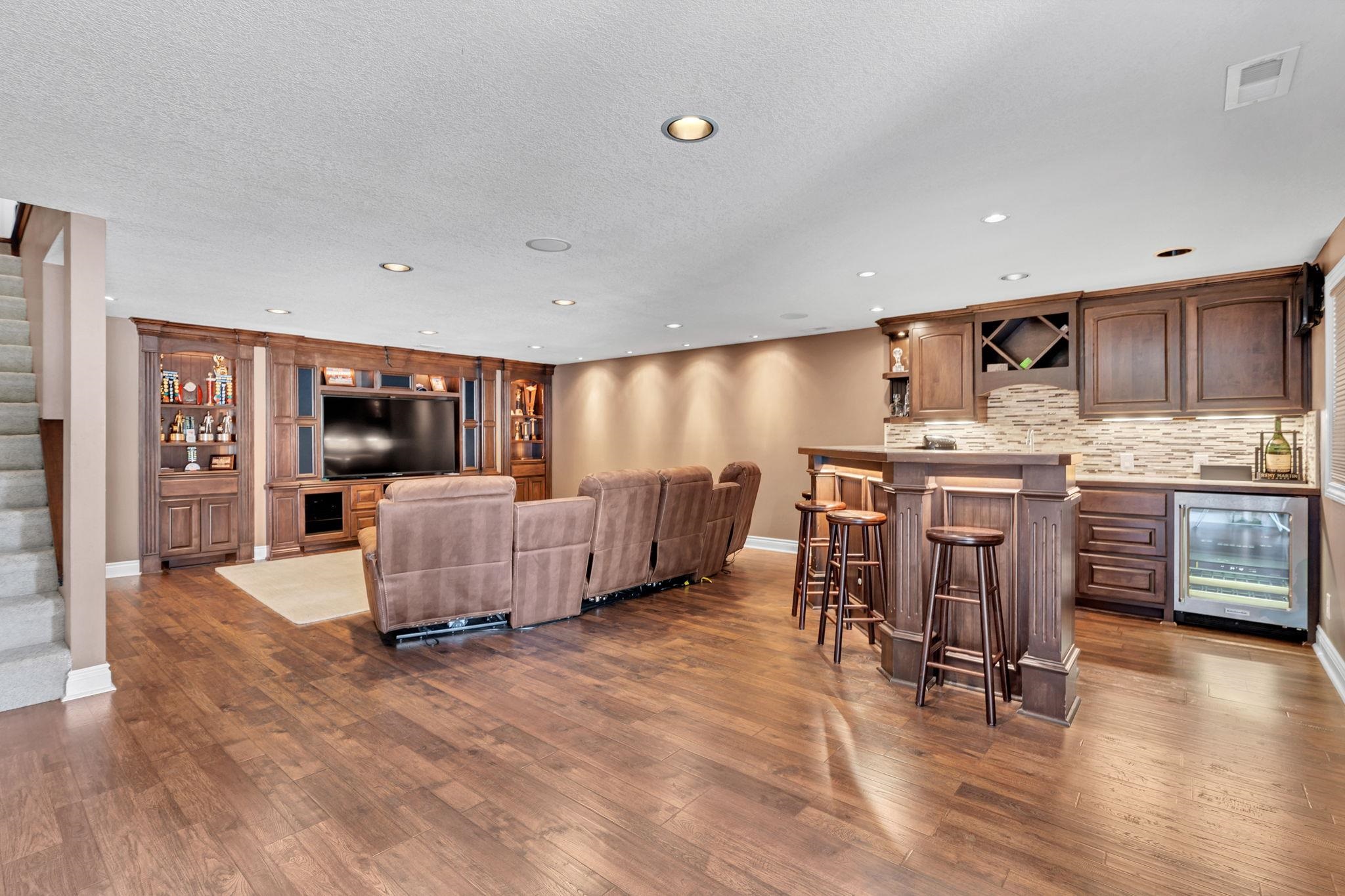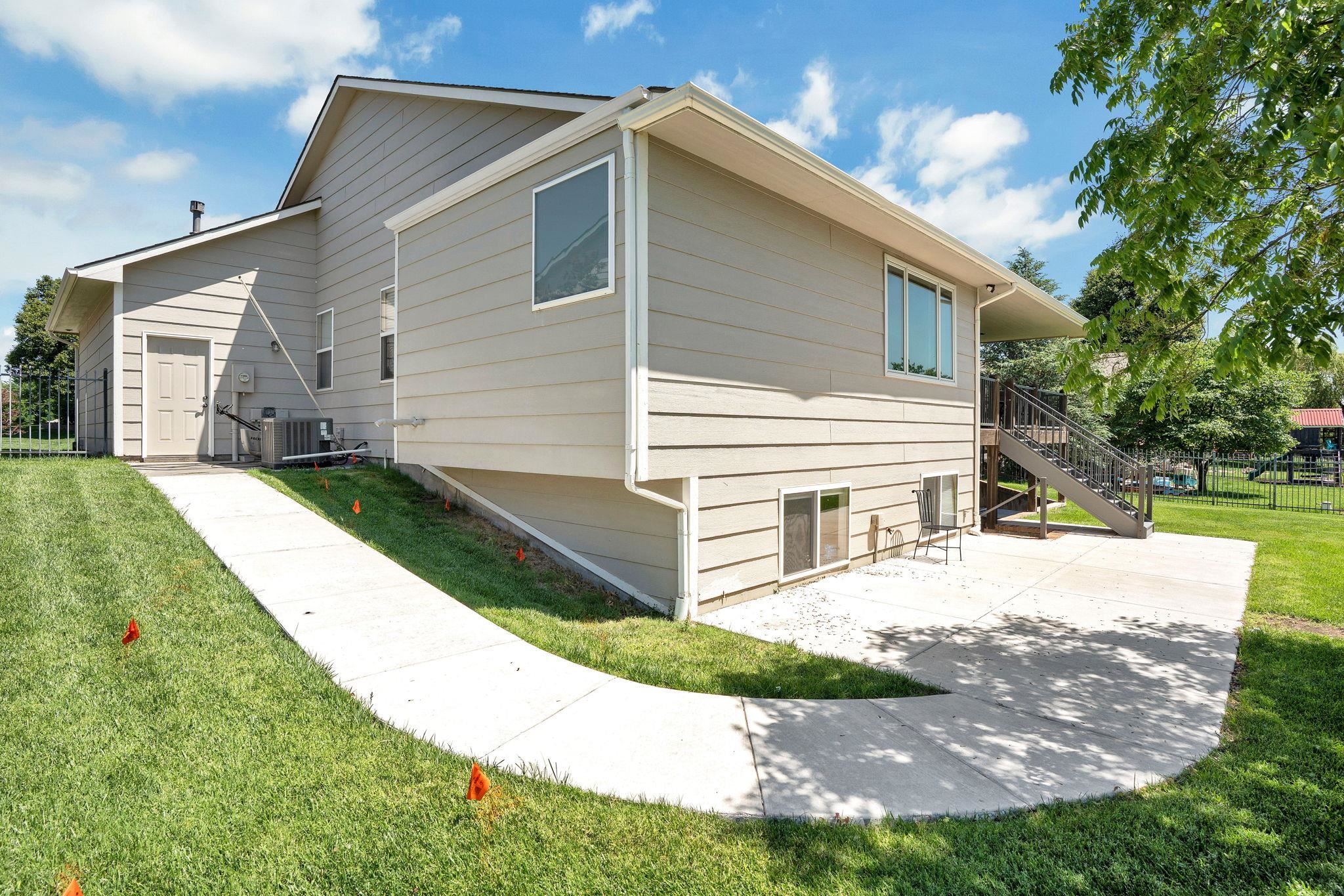 - Description: Welcome to this beautifully crafted 5-bedroom, 3-bath home featuring rich wood finishes and floors throughout. The open-concept kitchen with eating bar flows into the dining area, leading to a Timber Tech deck overlooking the water—perfect for relaxing or entertaining. Enjoy surround sound throughout the home, including in the spacious primary suite, which offers serene water views, an inviting bathroom with dual sinks, jetted tub, and a beautifully tiled shower. The finished basement is ideal for entertaining, complete with custom built-ins, included TV and speakers, wet bar, walk-out access to the hot tub, and even a hidden room! A rare find with exceptional design and comfort throughout! Located in the sought-after Goddard School District, this home offers convenient access to grocery stores, restaurants, swimming pools, scenic walking paths, and peaceful neighborhood ponds—a perfect blend of comfort, community, and convenience. Show all description