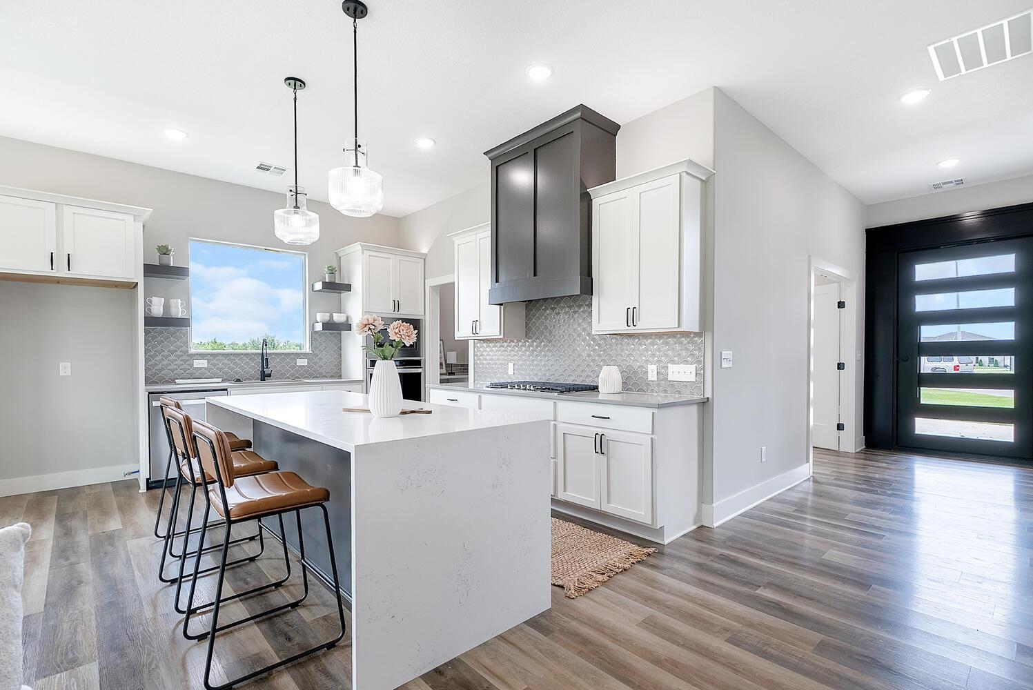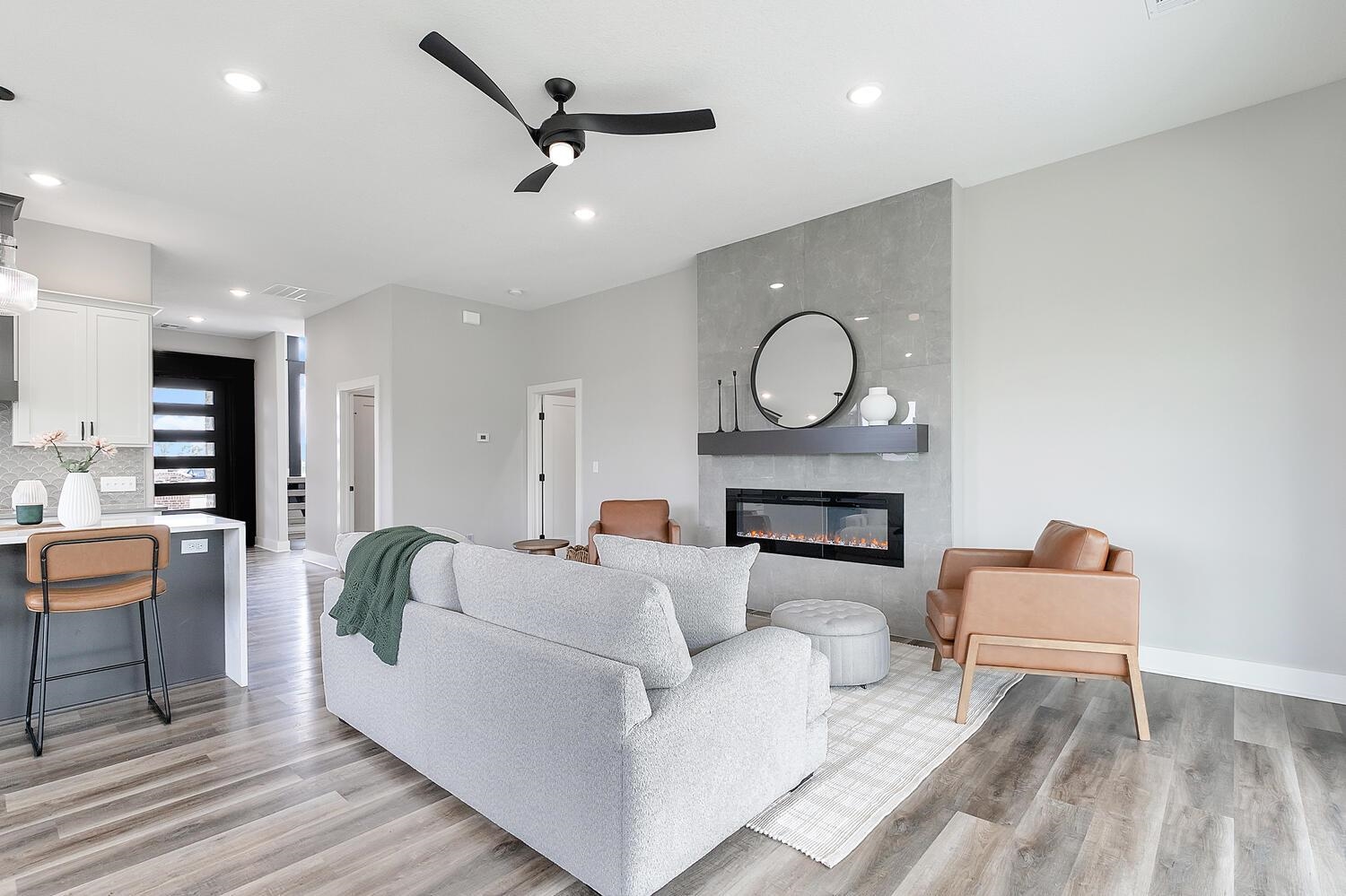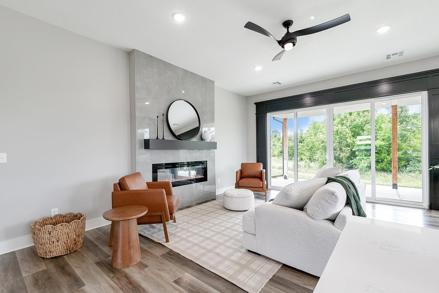 - Description: Step into this stunning two-story home with a private terrace, nestled within the gated community of Sierra Hills. From the moment you walk in, you're greeted by a thoughtfully designed open floor plan featuring floor-to-ceiling picture windows, a dramatic full tile fireplace, and luxury vinyl plank flooring throughout. The kitchen is a showstopper with a custom stove hood, waterfall quartz countertops, a wall-mounted microwave and oven, and a butler’s kitchenette conveniently located across from the pantry. The main floor showcases a seamless zero-entry layout and an open staircase that frames striking views through tall windows. A dedicated home office space provides functionality without sacrificing style. The primary suite is a true retreat with wood beam accents, expansive windows, a massive walk-in closet, and a spa-like bathroom that includes an elegant soaker tub, an expansive tile shower, and dual sinks. Upstairs, you’ll find three additional bedrooms, one and a half bathrooms, and a loft complete with a wet bar that opens onto a terrace finished with durable composite decking. The home is equipped with a three-car garage, including a built-in safe room in the third bay. Modern comforts include a tankless water heater and zoned HVAC. Outdoors, enjoy a covered patio, sprinkler system, and private well, all designed for effortless living and entertaining. Show all description