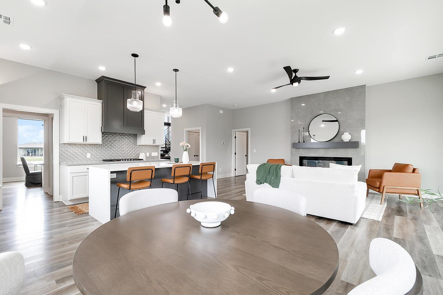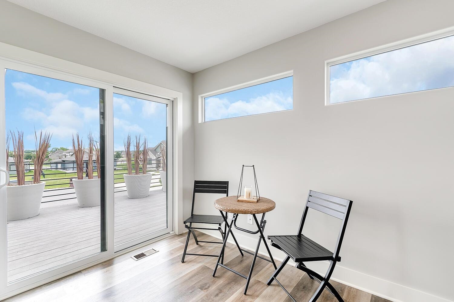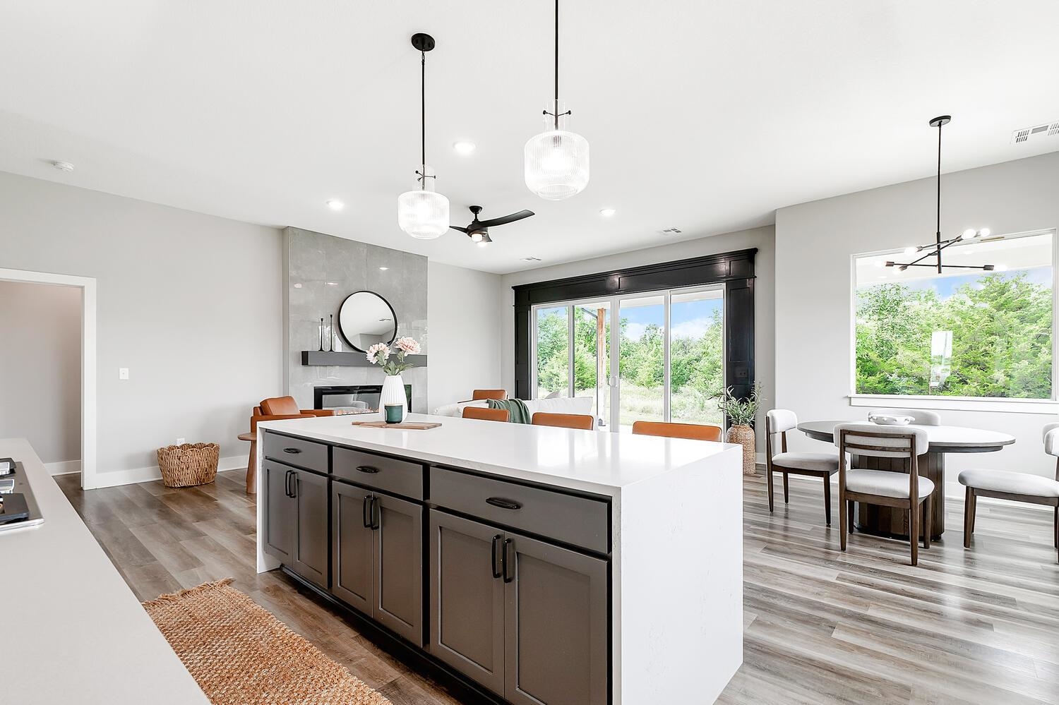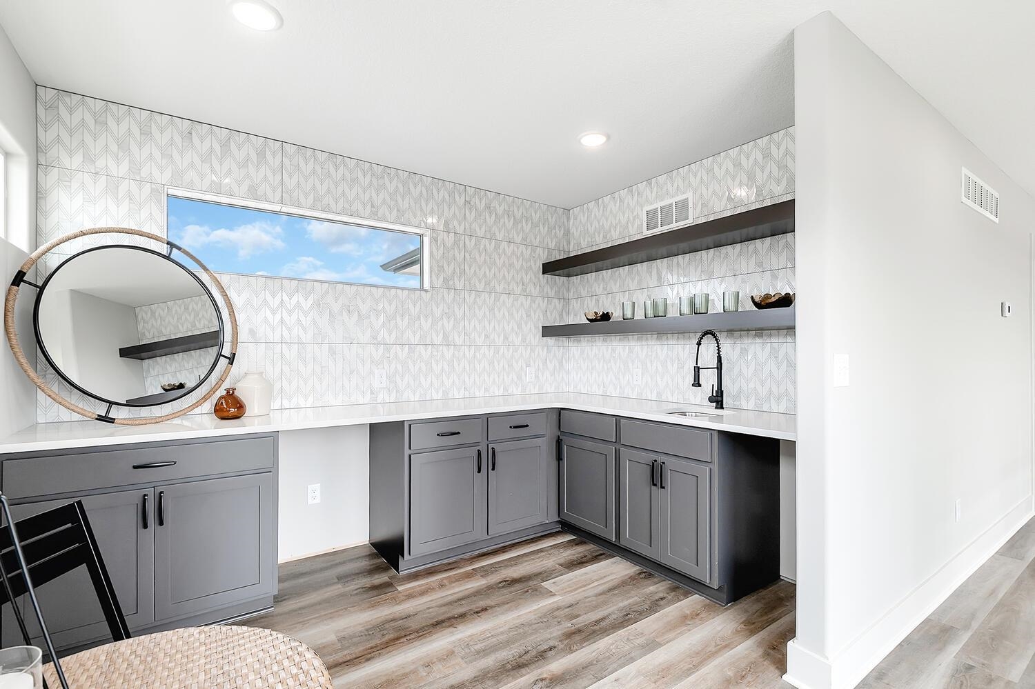 - Description: Step into this stunning two-story home with a private terrace, nestled within the gated community of Sierra Hills. From the moment you walk in, you're greeted by a thoughtfully designed open floor plan featuring floor-to-ceiling picture windows, a dramatic full tile fireplace, and luxury vinyl plank flooring throughout. The kitchen is a showstopper with a custom stove hood, waterfall quartz countertops, a wall-mounted microwave and oven, and a butler’s kitchenette conveniently located across from the pantry. The main floor showcases a seamless zero-entry layout and an open staircase that frames striking views through tall windows. A dedicated home office space provides functionality without sacrificing style. The primary suite is a true retreat with wood beam accents, expansive windows, a massive walk-in closet, and a spa-like bathroom that includes an elegant soaker tub, an expansive tile shower, and dual sinks. Upstairs, you’ll find three additional bedrooms, one and a half bathrooms, and a loft complete with a wet bar that opens onto a terrace finished with durable composite decking. The home is equipped with a three-car garage, including a built-in safe room in the third bay. Modern comforts include a tankless water heater and zoned HVAC. Outdoors, enjoy a covered patio, sprinkler system, and private well, all designed for effortless living and entertaining. Show all description