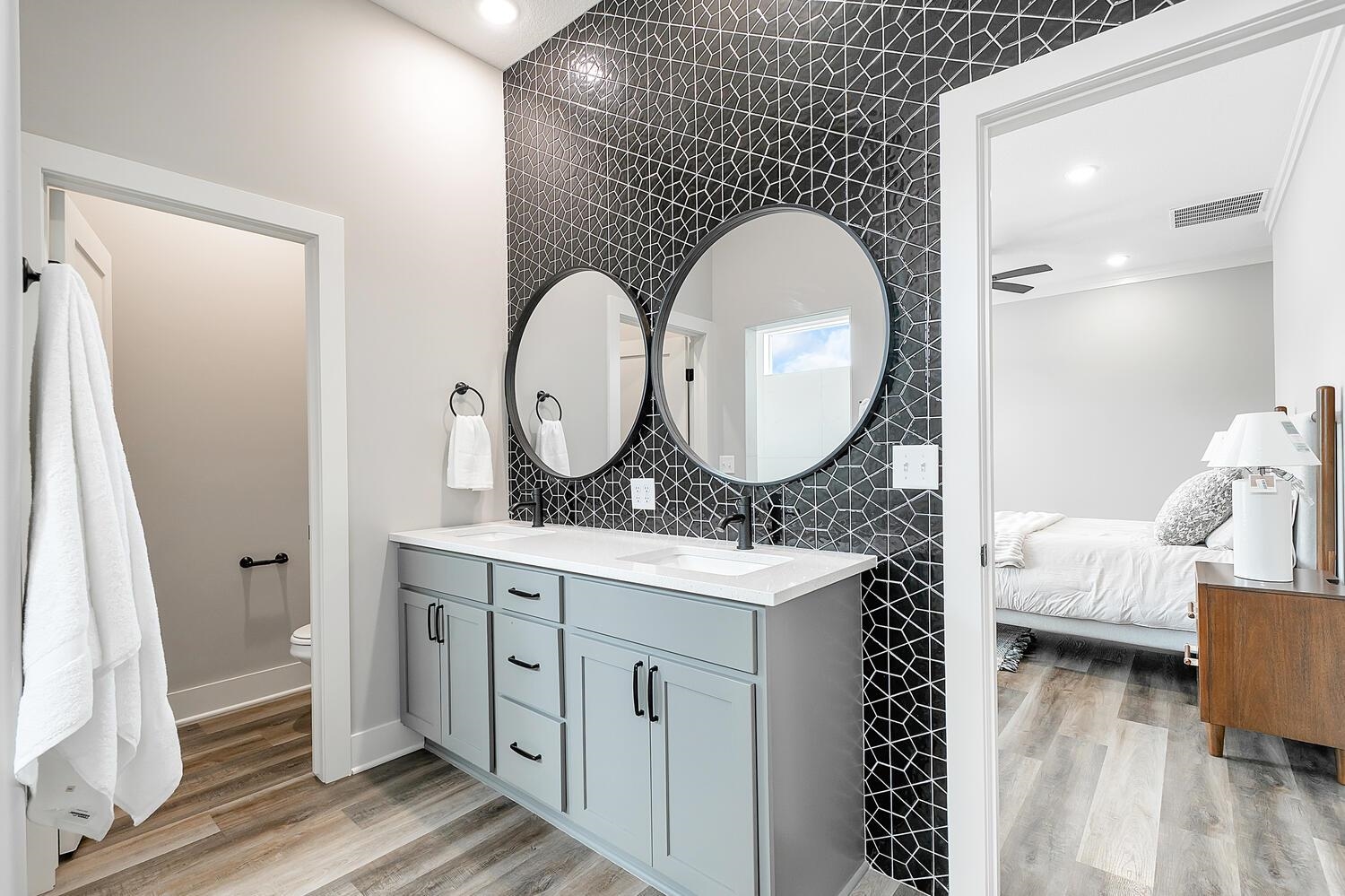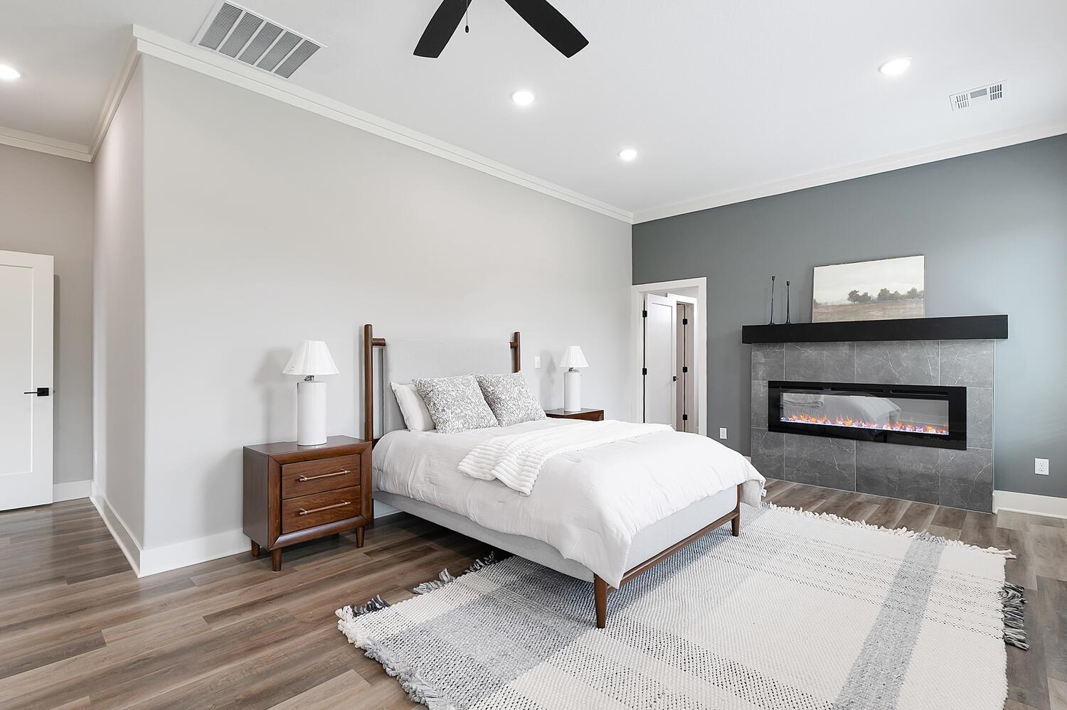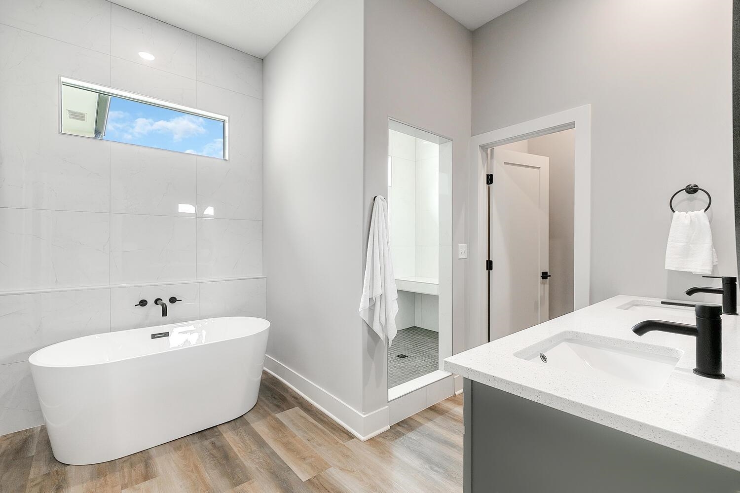 - Master Bedroom: Master Bdrm on Main Level, Split Bedroom Plan, Master Bedroom Bath, Sep. Tub/Shower/Mstr Bdrm, Two Sinks, Quartz Counters, Water Closet