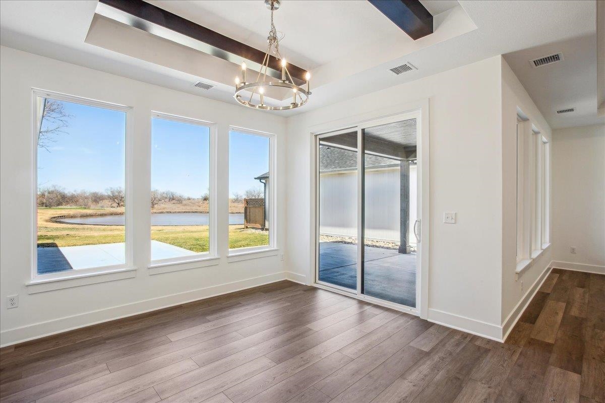 - Description: Amazing water views from expansive outdoor living space!! Enjoy patio home living at its best in our new Courtyards at Jacob’s Farm community (on the northwest corner of 135th Street West and Central Ave). Combine upscale amenities and beautiful, expansive nature setting and you will see why homes in our courtyard communities are so popular! This home is located in our first developed phase of 79 patio homes but there will be over 300 more patio homes to the north of this phase connected by golf cart/walking paths and multiple clubhouses, pools, and active adult indoor and outdoor amenities providing a feeling of living in your own active adult resort! This home is the Salerno plan that features excellent windows across the back of the home providing amazing views of the water and trees on this homesite location. The split bedroom plan has spacious living, kitchen and dining with direct access to a massive and private outdoor living space. The owner suite has access to the outdoor living as well as a zero entry custom tile shower. The owner suite also has a walk through closet conveniently attached to the laundry room. HOA dues cover landscape/sprinkler system maintenance, trash service, snow removal, common area maintenance and exclusive access to all the upcoming amenities including two outdoor heated saltwater swimming pools, two clubhouses pickleball courts, and many additional outdoor amenities for gathering and activities. The clubhouses will have multiple spaces for socializing complete with areas for food prep, restrooms, and exercise room complete with resistance and cardio equipment --- all this exclusive to our courtyard homeowners and their guests. Sales office open daily 1-5 PM. Closed Fridays or call for appointment. Room measurements are estimated. Taxes are estimated and disclosed for when taxes are fully assessed. Price includes lot. Show all description