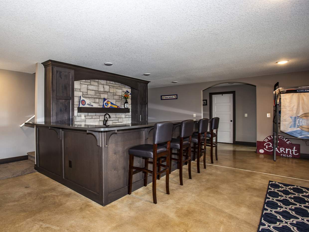 - Description: Gorgeous home...Better than new. Has drapes/blinds, Fence, Gormet kitchen with hidden pantry, including gas range set in beautiful cabinetry. Large master with luxury bath with no step on the tiled shower. Huge rec room with beautiful stained concrete floors for easy maintenance. Hidden wine room off huge wet bar with gray quartz counters. Party ready! Well and Sprinkler for low maintenance on yard work. Move in ready. Show all description