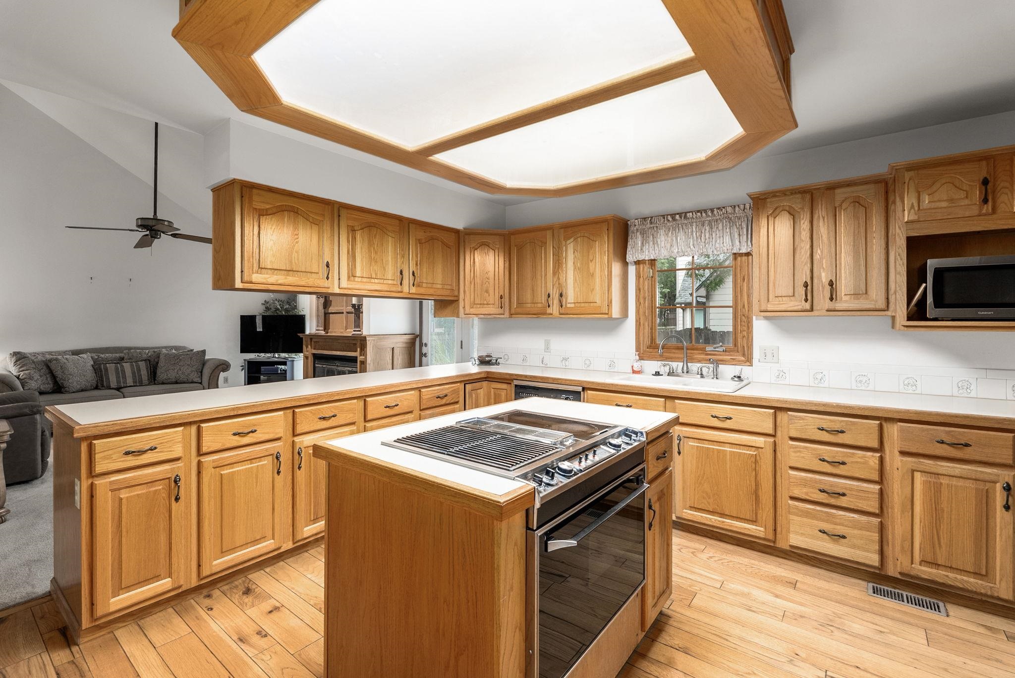 - Description: Beautiful and unique floor plan in Gleneagles! This one-owner home sits on a desirable corner lot and features soaring vaulted ceilings, a formal living and dining room, and a spacious main floor living area with a cozy wood-burning fireplace. Offering three bedrooms and two full baths, it’s a great alternative to a patio home with the convenience of main floor laundry and the bonus of a light-filled sunroom. Recent updates include a brand-new roof (2025), updated heating and air system, and a brand-new concrete patio. Surrounded by lush landscaping and mature trees, this home combines comfort and charm in a highly desirable setting. Show all description
