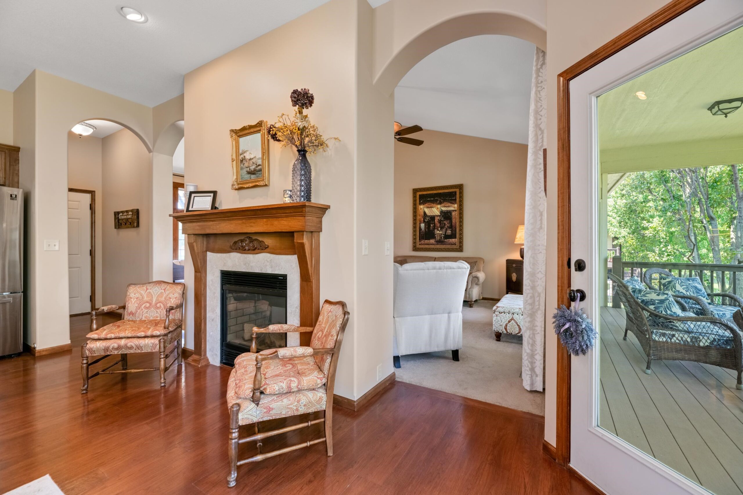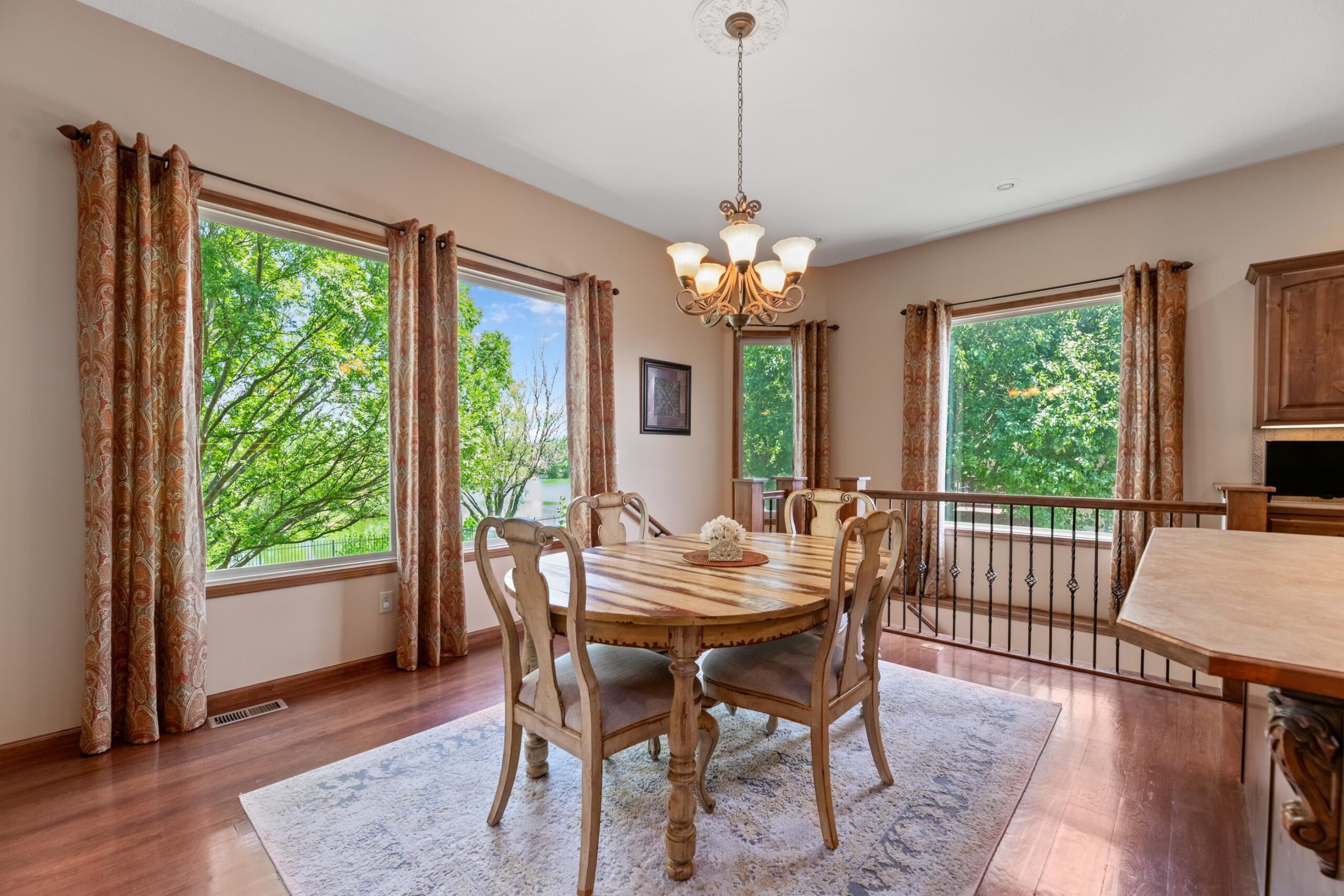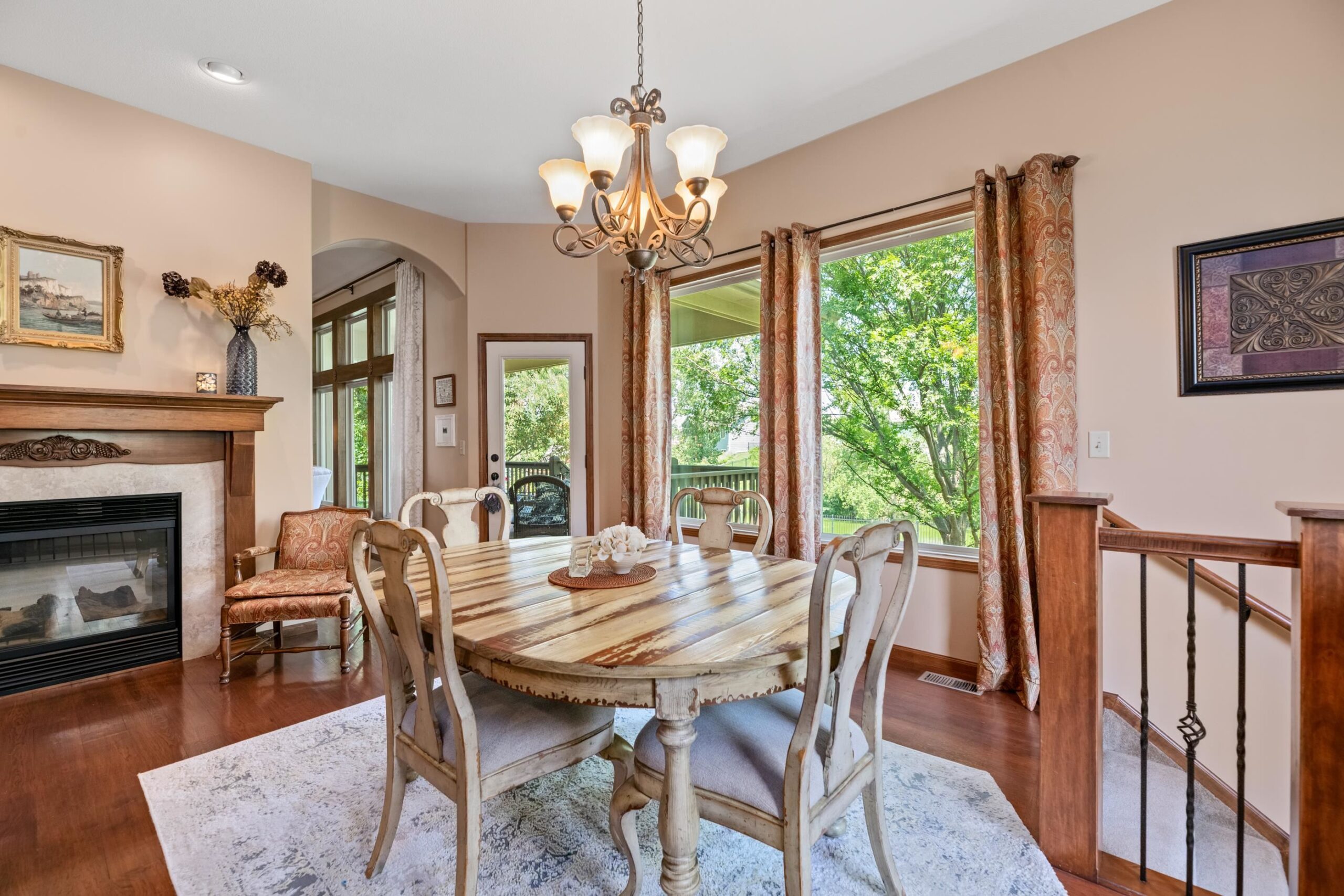 - Description: Welcome to Chestnut Ridge, one of Andover’s most desirable luxury neighborhoods; where serene lake views, refined design, and everyday comfort converge. This craftsman Craig Sharp built residence offers 5 bedrooms, 3 bathrooms, and a 3-car garage across 3, 550+ finished square feet. Step inside to soaring vaulted ceilings in the cozy living room connected by two way fireplace to the hearth kitchen. The kitchen offers ample cabinetry, a casual dining space, hardwood floors, and direct access to the covered Trex deck overlooking the lake; perfect for morning coffee or hosting evening guests. The primary suite is a refuge with private deck access, dual vanities, a soaking tub, walk-in shower, and a generous walk-in closet. Also on the main level: a formal dining room (or optional office) and two additional bedrooms plus guest bathroom. Downstairs, the walk-out basement delivers even more with a spacious entertainment bar, gas fireplace, two additional bedrooms, a full bath, and abundant storage space. Enjoy Chestnut Ridge amenities including a neighborhood pool, playground, lakeside walking path, and the pavilion, all nestled in the highly regarded Andover School District. Request your private tour today! Show all description