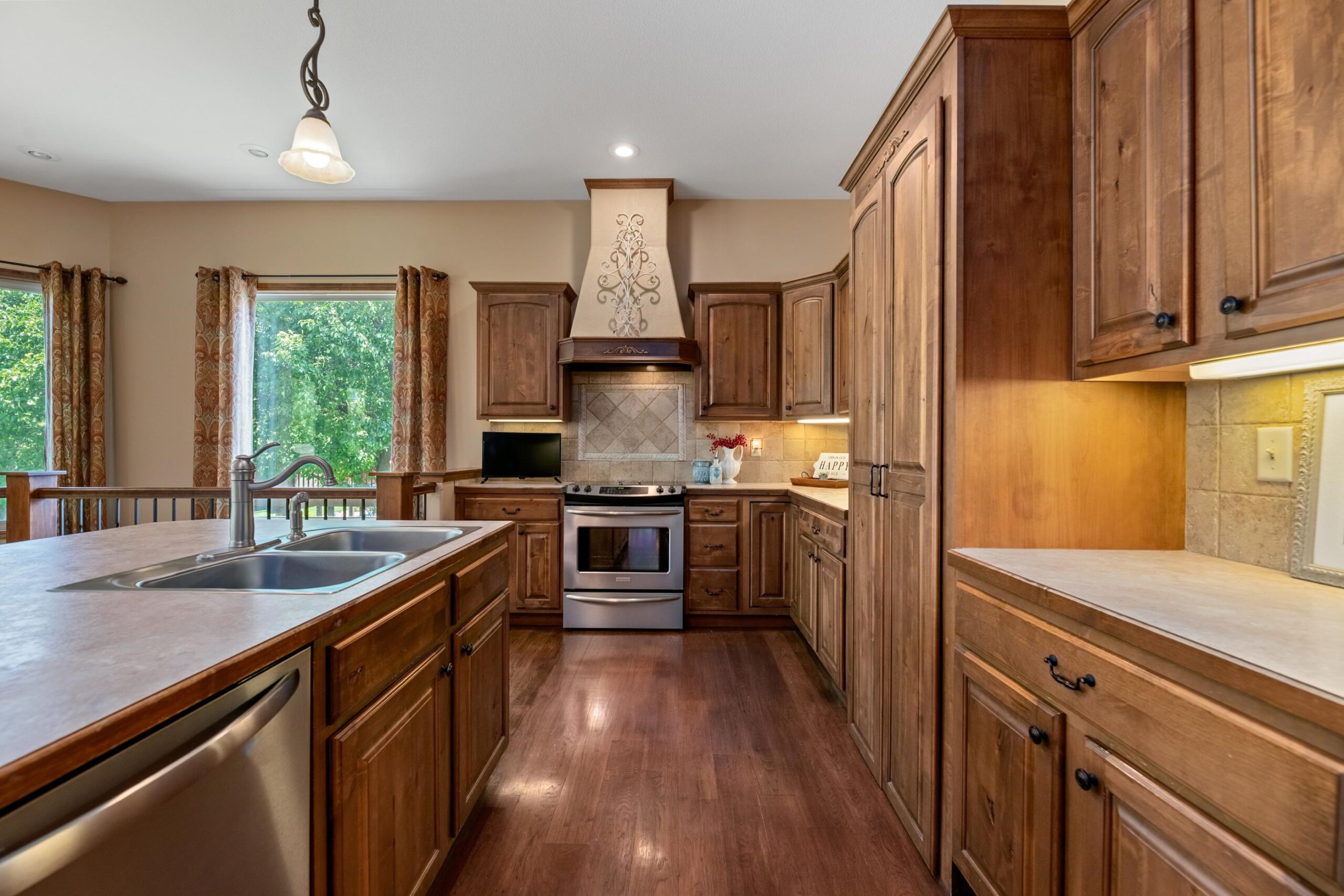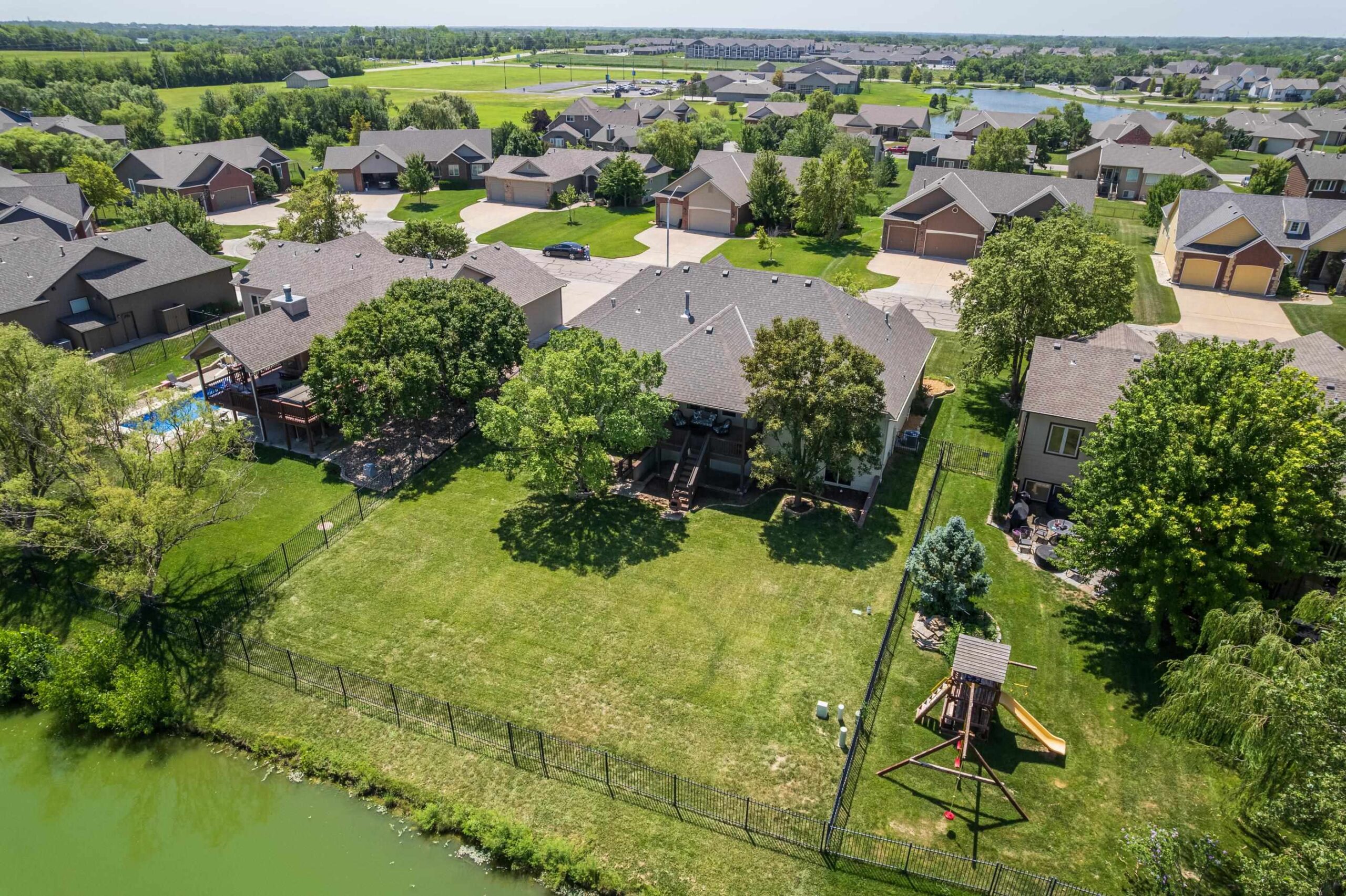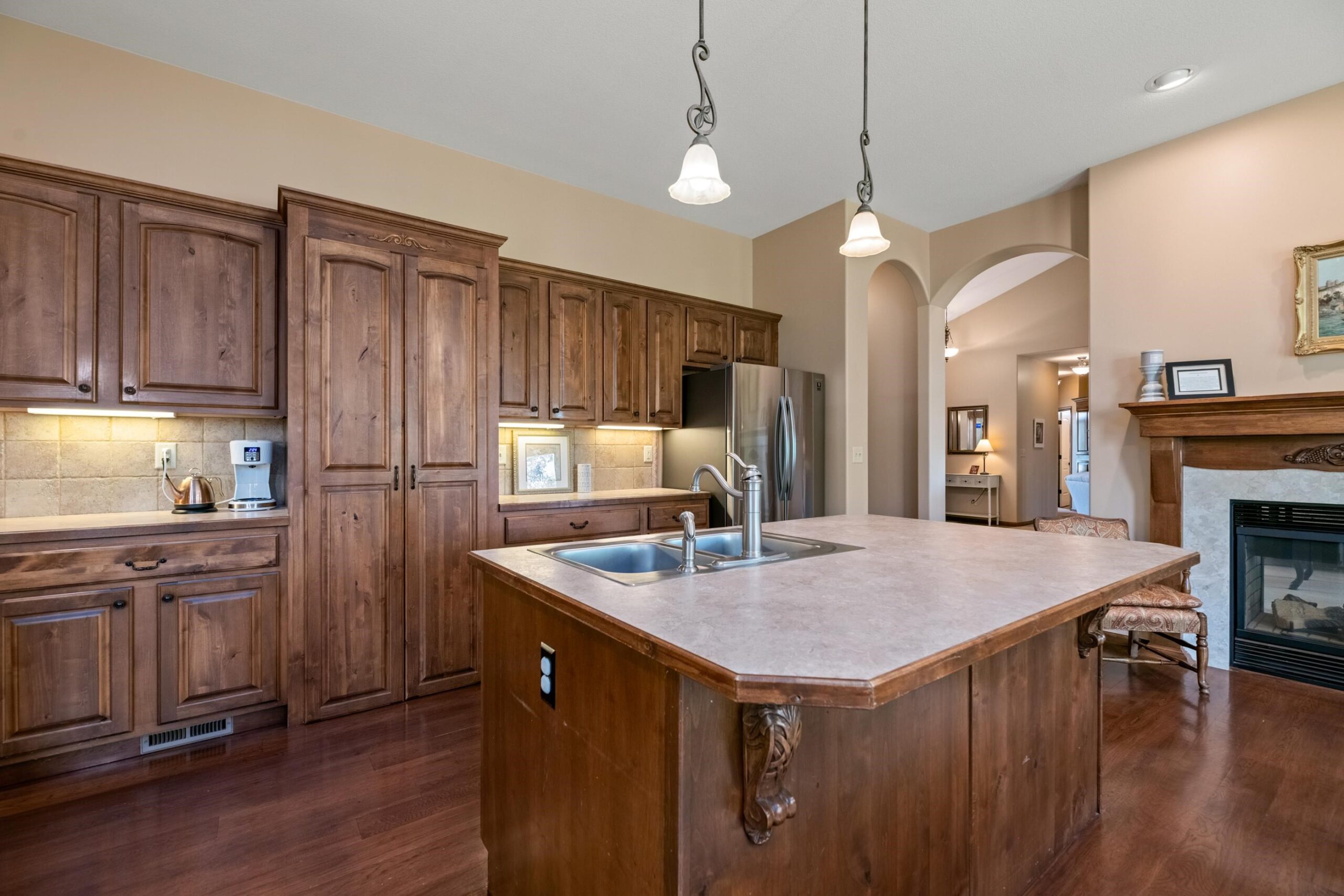- Description: Welcome to Chestnut Ridge, one of Andover’s most desirable luxury neighborhoods; where serene lake views, refined design, and everyday comfort converge. This craftsman Craig Sharp built residence offers 5 bedrooms, 3 bathrooms, and a 3-car garage across 3, 550+ finished square feet. Step inside to soaring vaulted ceilings in the cozy living room connected by two way fireplace to the hearth kitchen. The kitchen offers ample cabinetry, a casual dining space, hardwood floors, and direct access to the covered Trex deck overlooking the lake; perfect for morning coffee or hosting evening guests. The primary suite is a refuge with private deck access, dual vanities, a soaking tub, walk-in shower, and a generous walk-in closet. Also on the main level: a formal dining room (or optional office) and two additional bedrooms plus guest bathroom. Downstairs, the walk-out basement delivers even more with a spacious entertainment bar, gas fireplace, two additional bedrooms, a full bath, and abundant storage space. Enjoy Chestnut Ridge amenities including a neighborhood pool, playground, lakeside walking path, and the pavilion, all nestled in the highly regarded Andover School District. Request your private tour today! Show all description
