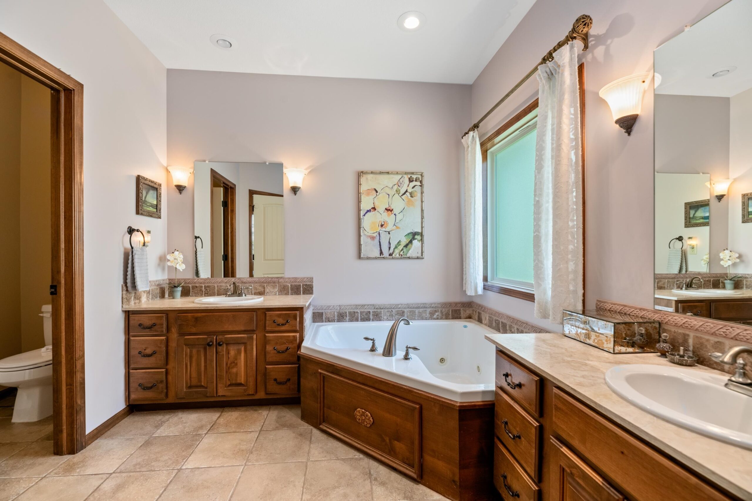 - Master Bedroom: Master Bdrm on Main Level, Master Bedroom Bath, Shower/Master Bedroom, Sep. Tub/Shower/Mstr Bdrm, Two Sinks, Stone Counters, Jetted Tub, Water Closet