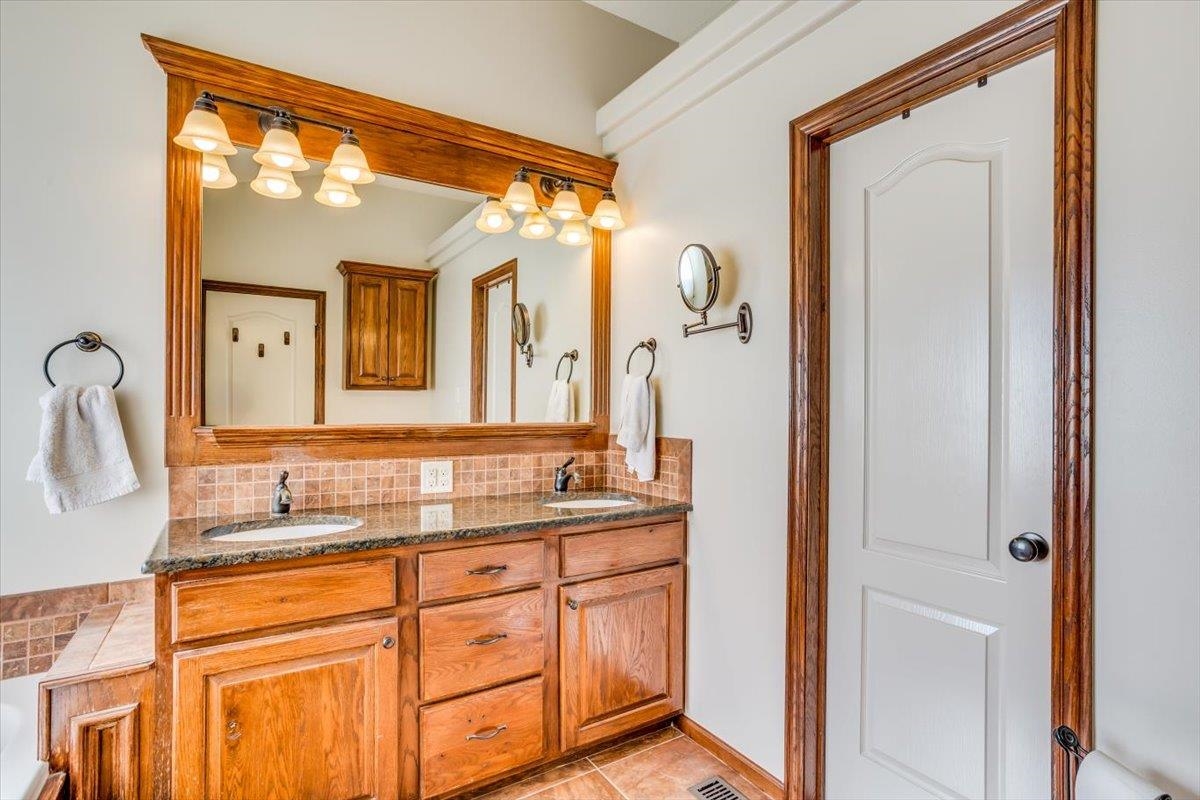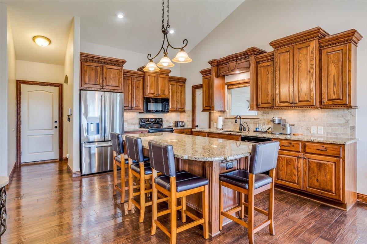 - Description: Welcome to your dream home! Nestled on a quiet cul-de-sac, this beautifully maintained 4-bedroom, 3-bathroom gem offers a perfect blend of comfort, style, and functionality. Step into the heart of the home—an inviting kitchen featuring custom-built birch cabinets, granite countertops, and a reverse osmosis system for pristine drinking water. The open-concept main floor boasts stunning hardwood floors, fresh paint in the master suite, two additional bedrooms, and a full bathroom. Enjoy the warmth and charm of two gas fireplaces, one on each level, perfect for cozy evenings. The master suite is your private retreat with granite countertops, a separate tub and shower, and ample space to relax. Downstairs, you’ll find new carpet, a spacious family room, and a fourth bedroom. Decorative built-ins add character and functionality throughout. The home also includes a water softener, new water heater, alarm system, and an efficient sprinkler system fed by its own irrigation well. The walk-out basement gives easy access to the backyard and is covered for extra seating. Enjoy the outdoors on the screened-in covered porch overlooking a fully fenced backyard with no rear neighbors—offering peace, privacy, and room to breathe. Extra concrete around the home provides plenty of space for play. The oversized garages offers a dedicated work area or golf cart parking. With no special taxes and thoughtful upgrades throughout, this move-in ready home is a rare find. Don’t miss your chance to make it yours! Show all description