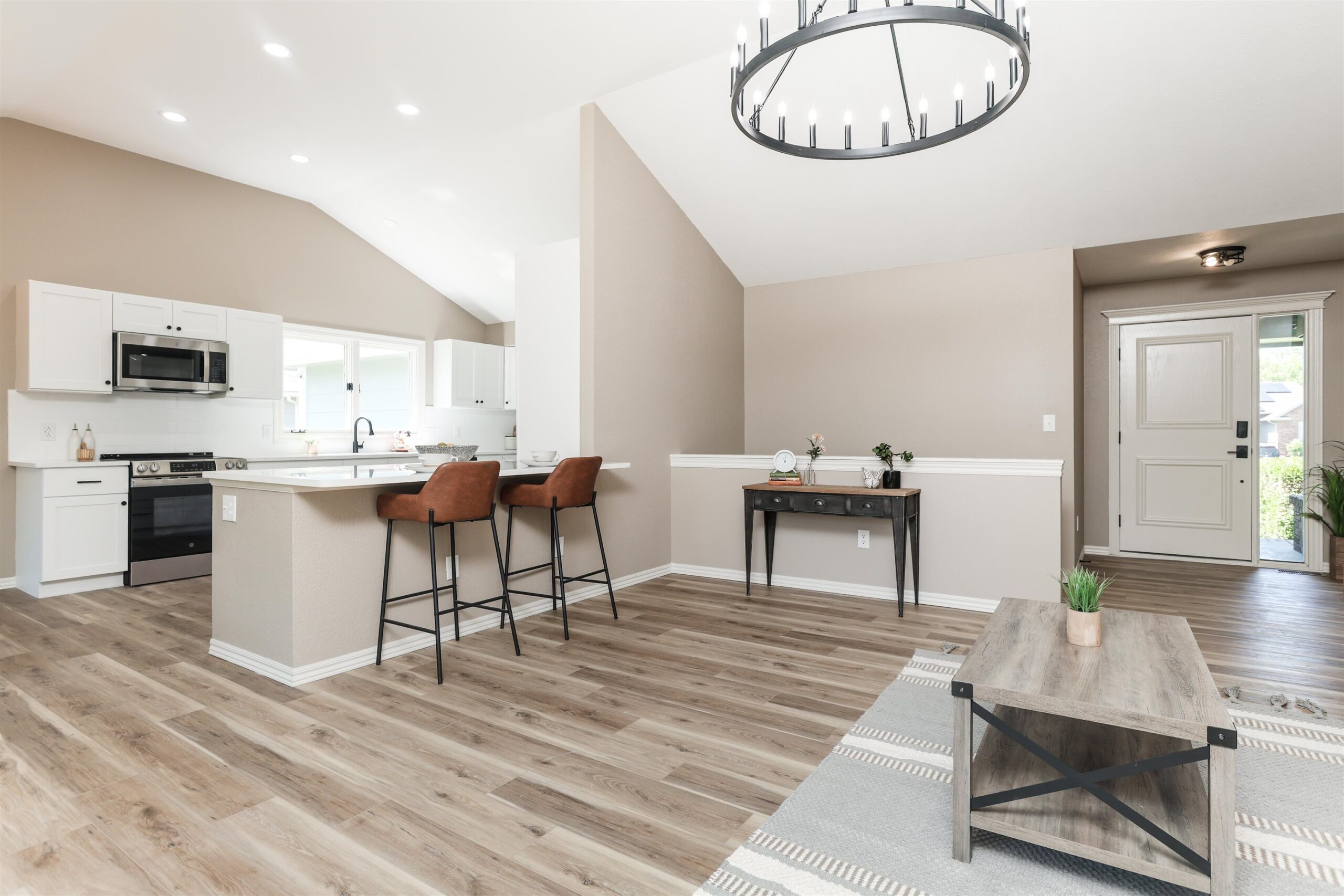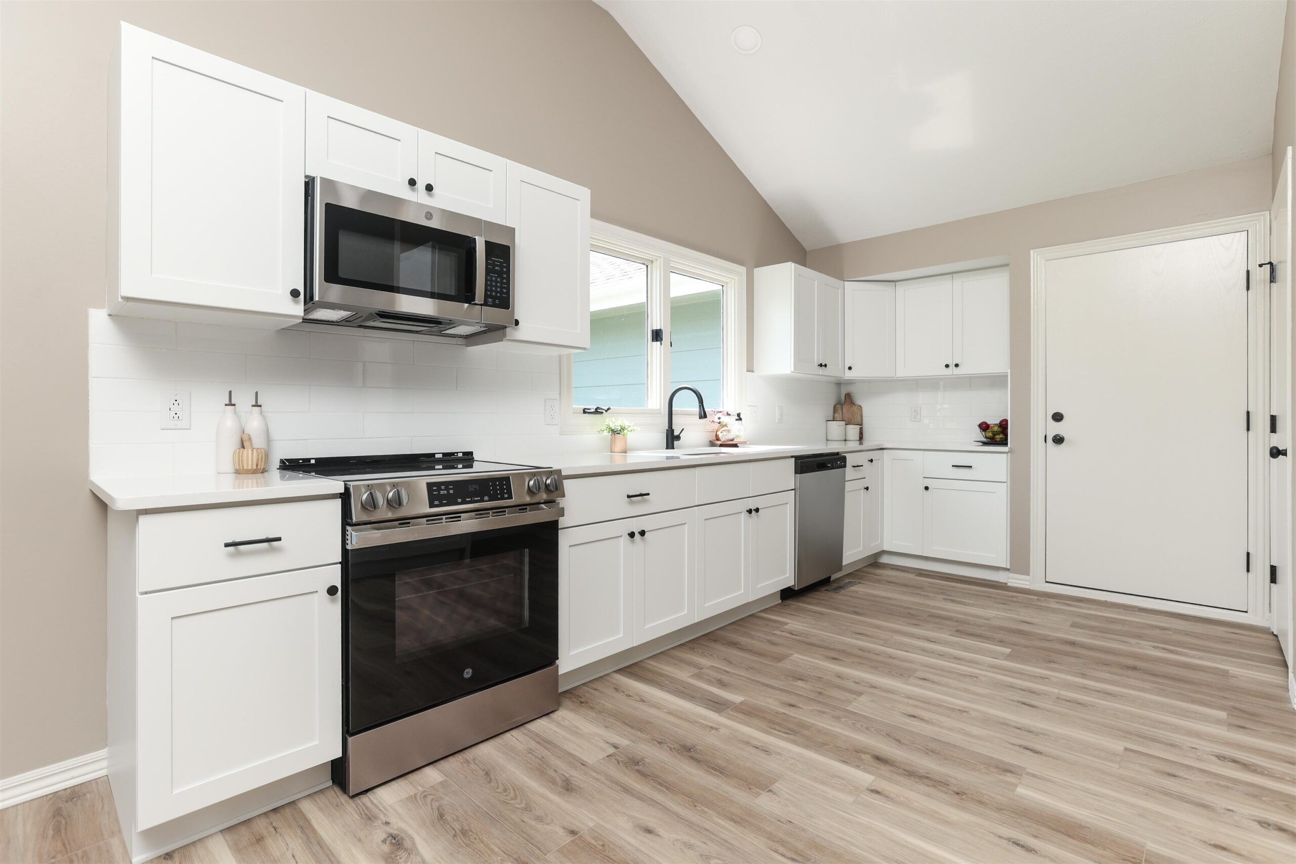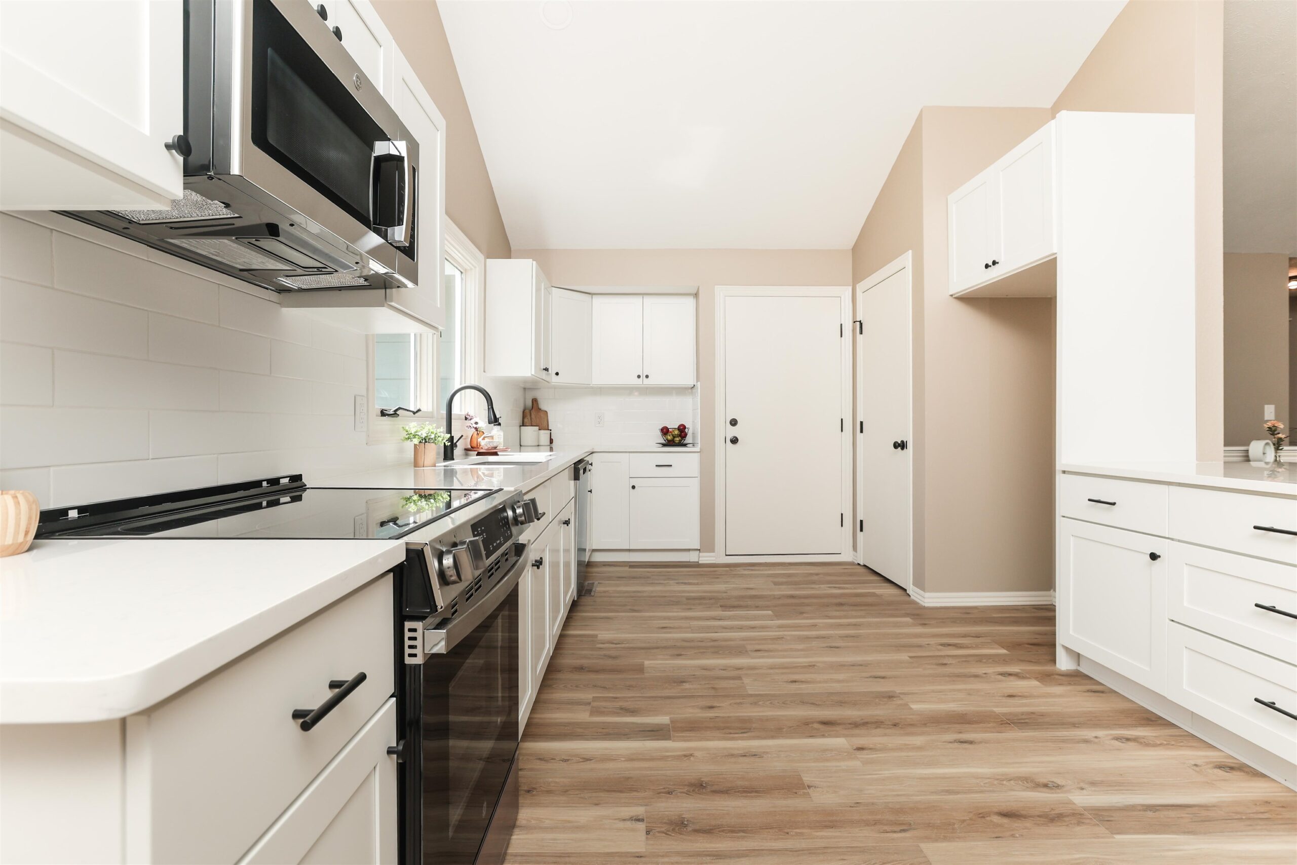 - Description: Welcome to your dream home in the desirable Green Valley subdivision of Andover, Kansas! This stunning, fully renovated four-bedroom, three-bath residence is move-in ready, offering modern elegance and comfort. Step inside to discover a brand-new kitchen featuring luxurious quartz countertops and stylish cabinets, perfect for culinary enthusiasts. The main level boasts beautiful luxury vinyl plank flooring, enhancing the home's inviting atmosphere. The spacious master suite includes a private, newly designed bath for your relaxation. The lower level features a generous living room, an additional bedroom, and a pristine bathroom, making it an ideal space for guests or entertainment. Enjoy entertaining friends with the convenience of a wet bar in the basement living area. Outside, the expansive private backyard awaits, complete with a deck—ideal for summer gatherings or peaceful evenings under the stars. This home offers everything you need and more—don’t miss the chance to make it yours! The listing agent is related to the seller. Show all description
