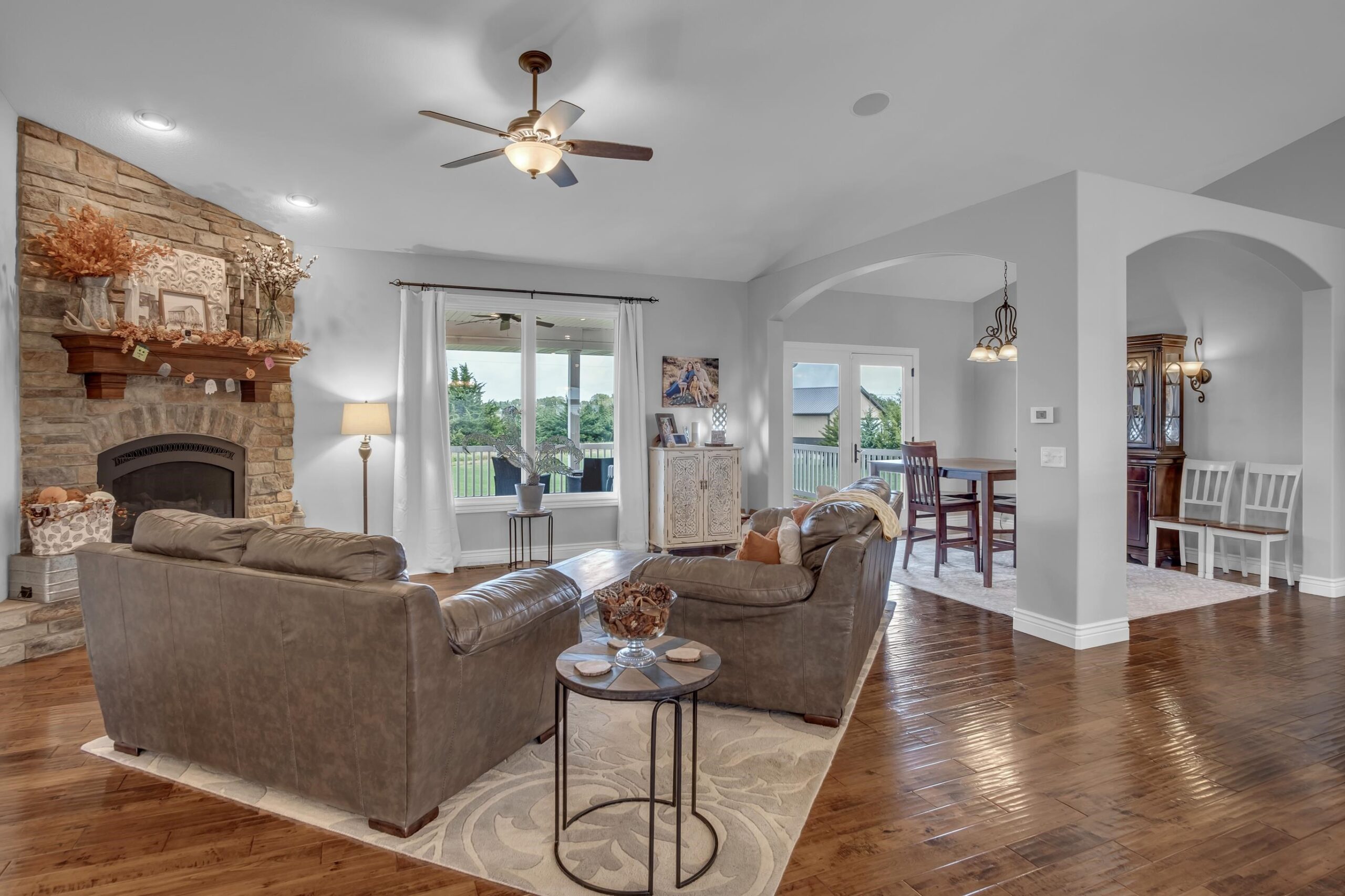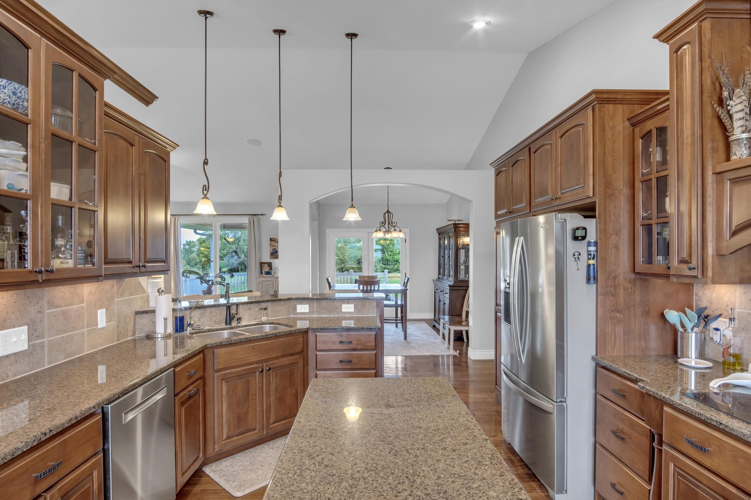 - Description: Exquisite country property on 4 Acres just minutes from McPherson & Golf Courses. Experience refined country living at its best in this stunning 4, 000+ square foot estate, perfectly positioned on 4 picturesque acres just outside McPherson. Surrounded by rolling hills and unforgettable sunsets, this home combines elegant design with the tranquility of wide-open space. Step inside to an inviting open-concept floor plan showcasing rich hardwood flooring. The gourmet kitchen is a chef’s dream—featuring a large island, abundant custom cabinetry, and ample space for both casual dining and entertaining. The adjoining living area centers around a cozy fireplace, creating a warm yet sophisticated atmosphere. The primary suite has been newly remodeled offering a serene escape with luxurious finishes including a heated floors in the bath. The lower level extends the living space with a spacious family and recreation room, kitchenette, and two additional bedrooms—ideal for guests or extended family. Step out onto the expansive covered deck and take in breathtaking panoramic views of the countryside—perfect for evening gatherings or quiet mornings with coffee. Completing this exceptional property is a three-car garage plus a brand-new shop, offering endless possibilities for storage, hobbies, or workspace. Show all description