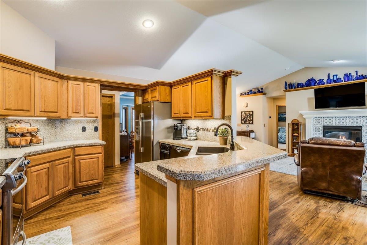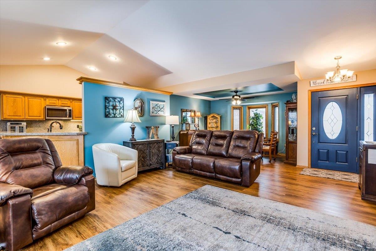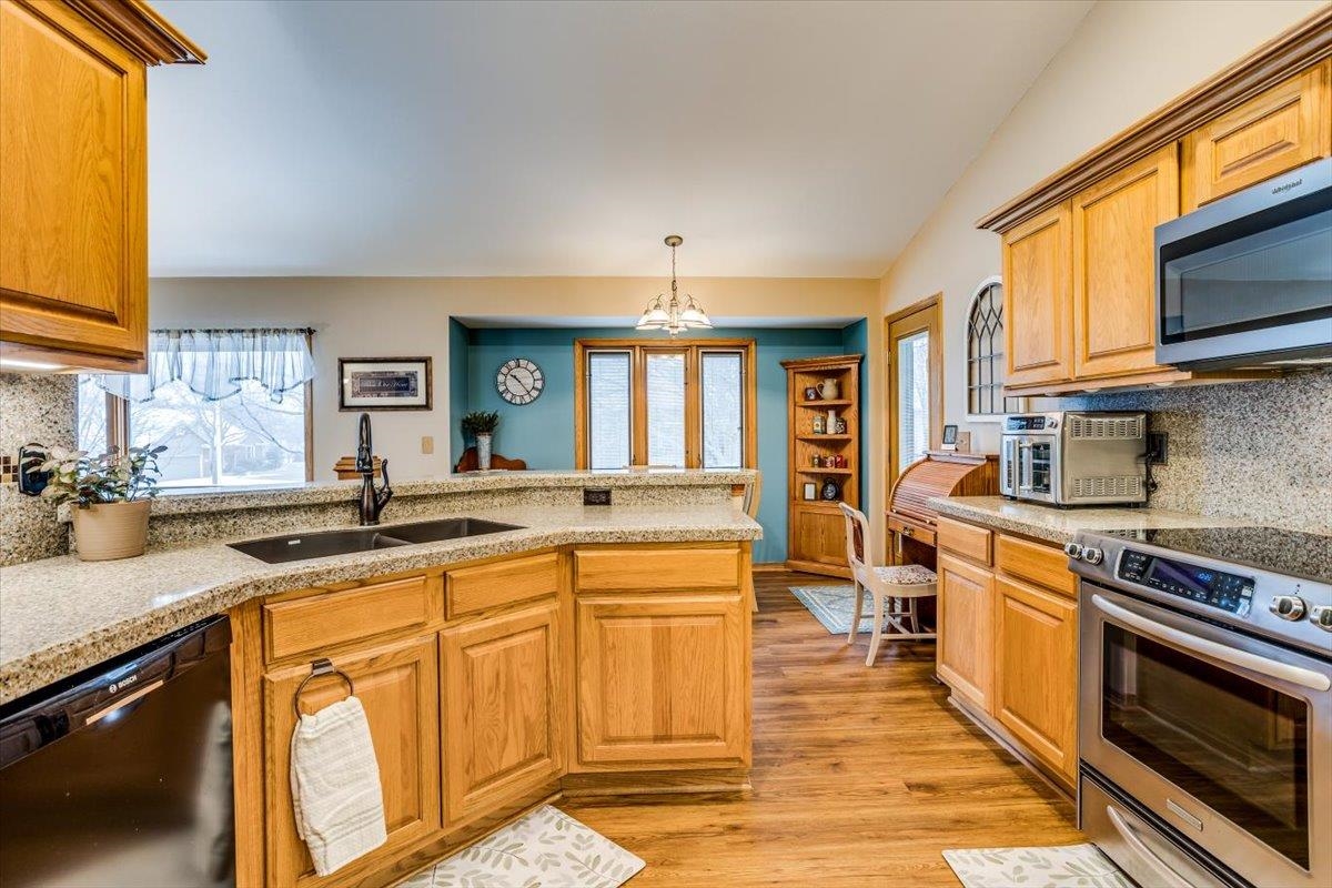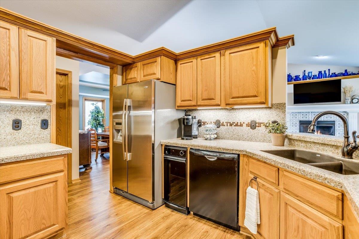 - Description: Stately Ranch on a Large Corner, cul-de-Sac lot in the sought after, Broadmoor Hills Addition in Derby. Centrally located with easy walking access to Shopping, Grocery and Restaurants. Upon entering the Foyer you'll notice the new Luxury Vinyl throughout Formal Living, Formal Dining, Kitchen and Bathrooms. Bright and Sunny Windows, with a Mid Level Walkout to Patio, with new Sliding door to the Fenced yard with Sprinkler. Kitchen Boasts a second dining area and updated Granite counter tops and Backsplash. Main floor Laundry has a built in pantry with roll out shelves and hanging space with storage cabinets. Oversized 3 Car Garage with New Garage Doors in 2021. The owners suite is sure to impress with its massive size, new pella doors to deck and remodeled bathroom. Full finished Basement with View out windows, wet bar, 2 more bedrooms and a 3rd Full Bathroom. Storage room is so spacious you can use it for a workout room, hobby room and still have more storage then you need! Lots of updates including Pella Windows with built in blinds, Pella Doors, New HVAC system 23, Roof and water softner new in 21 Show all description