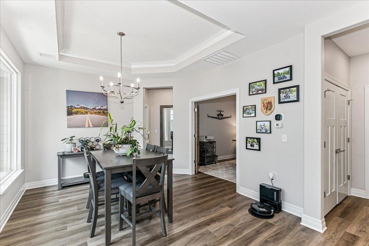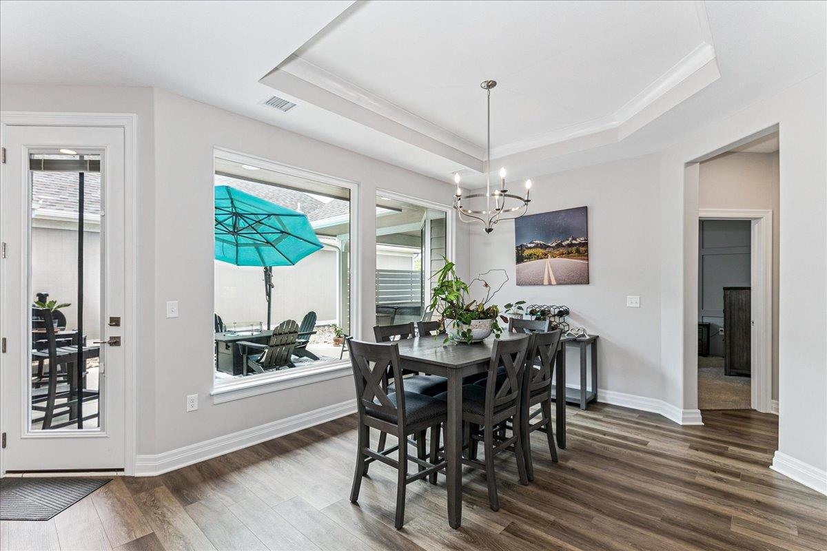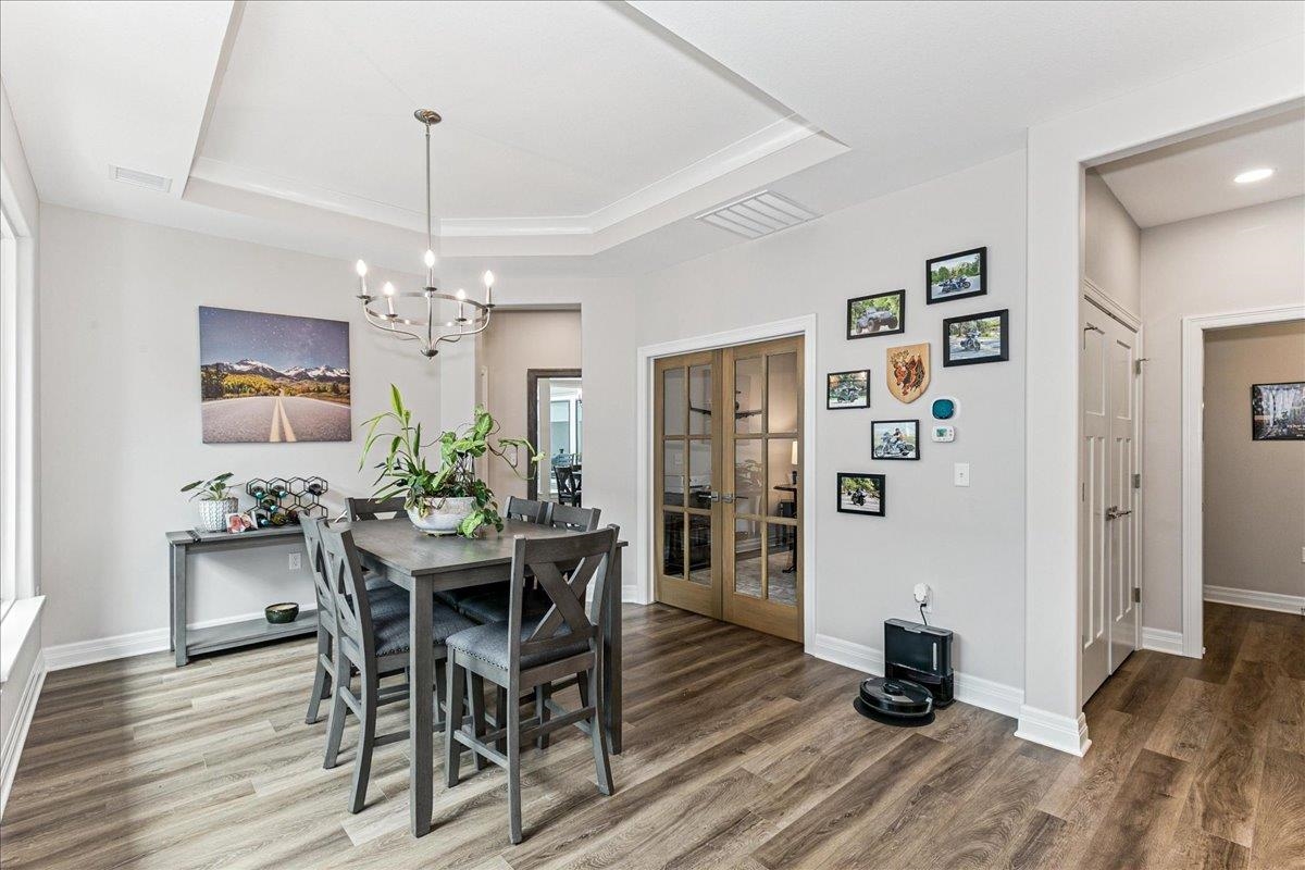 - Description: Location is critical when you are looking for a patio home community and Auburn Lakes tops the list of a private nature setting with wonderful amenities inspiring our homeowners to socialize and stay active! This fantastic layout provides great space, storage and privacy all at a great price. This nearly new patio home has open floor plan with large living room, kitchen and dining all providing large picture windows with views onto the private courtyard. The seller is including all of the outdoor furnishings - firepit and chairs, umbrella and hot tub that are set up in a perfect private set up that is partially covered and enclosed. The design of the home is bright and neutral with split bedrooms and a great size den/office off the dining area that could double as a 3rd bedroom. The owner suite has a spacious bedroom, walk in closet and zero entry custom tile shower. The 2 car TANDEM garage has a concrete safe room and plenty of space for 2 vehicles AND a golf cart or other items needing a storage spot. Dont miss up this fantasic home in a great community where you have over a mile of walking path through lakes and trees within the Auburn Lakes patio home community. The HOA dues include a huge clubhouse set on the water with multiple gathering rooms that can be reseved for your personal gatherings or shared with neighbors for fun social activities. Adjavent to this clubhouse is a large concrete heated satt water pool with plenty of seating. Take a short walk from the clubhouse to the pickleball courts where you can join in the friendly competition or set on the park bench and watch. HOA dues also include lawn maintenance, sprinkler system maintenance, central irrigation well system for all yards in Auburn Lakes patiio home community, trash service and snow removal. Show all description
