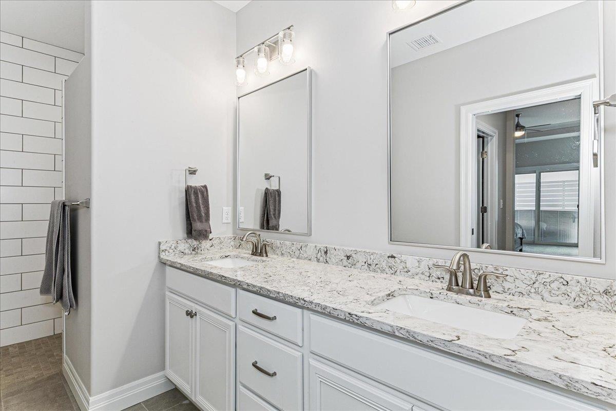 - Master Bedroom: Master Bdrm on Main Level, Split Bedroom Plan, Master Bedroom Bath, Shower/Master Bedroom, Two Sinks, Quartz Counters, Water Closet