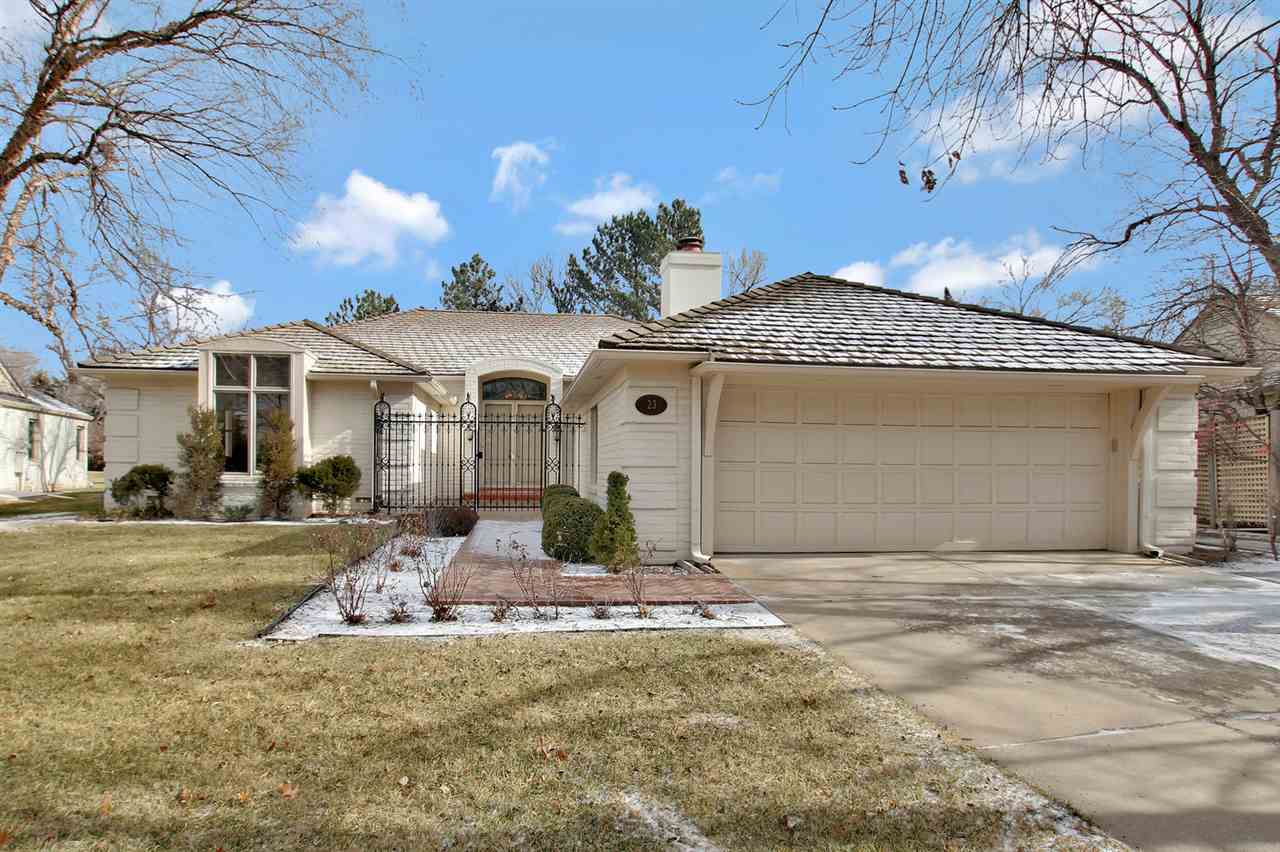 - Description: Exquisite patio home in the sought after Country Place- The Greens. You will love the incredible location right at the heart of East Wichita. This beautiful home offers almost 5000 sqft. of open living space. The home features a grand entrance with a brick paved walkway, gated courtyard and double doors leading into the foyer. Upon entrance, you will be greeted by gorgeous cherry wood floors, large windows with tons of natural sunlight, and high ceilings with crown molding. The main floor is excellent for entertaining with a large living room, formal dining room, a study, wet bar and a gourmet kitchen with a large island and eating space, and is wired for surround sound. The living room opens into the East-facing backyard and stamped concrete patio for additional outdoor living space. The huge master suite includes two separate adjoining bathrooms as well as 4 large walk in closets with lots of built-ins. The adjoining room may be used as an additional bedroom or office. The spacious basement has a lot of storage space as well as another bedroom, bathroom, dry bar with a wine cooler and a craft room. Schedule your showing today for a low maintenance lifestyle! Show all description