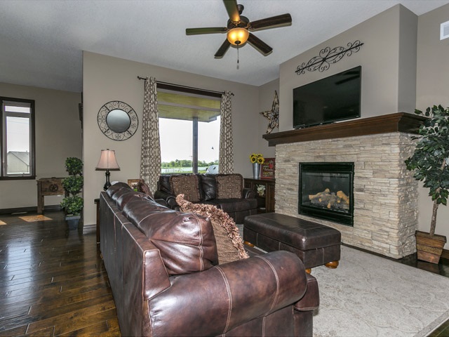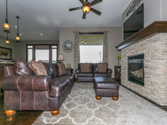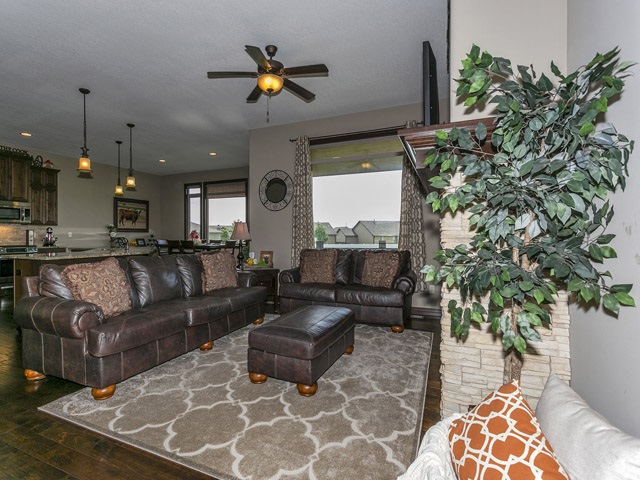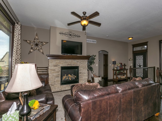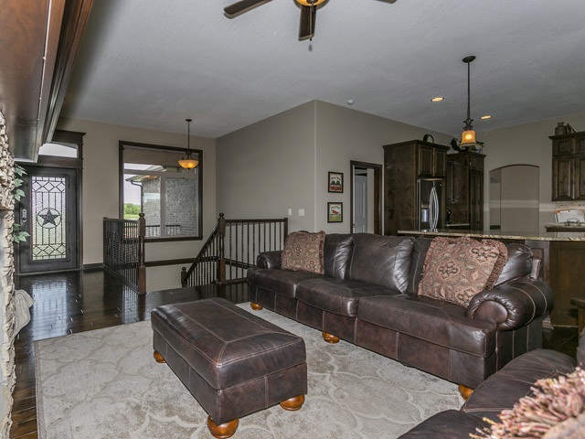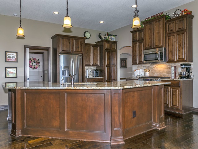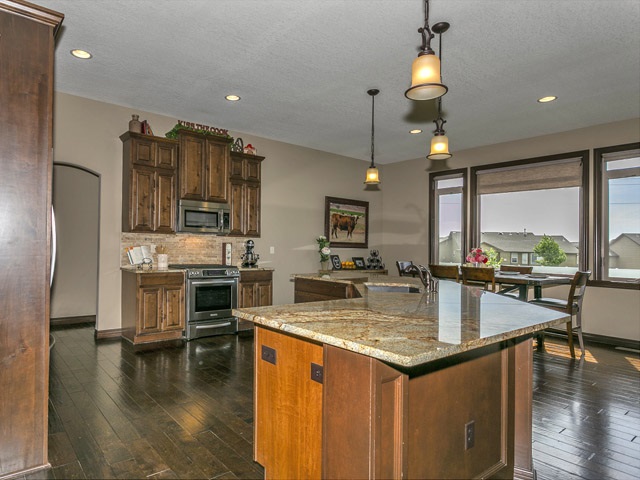 - Description: Don't wait to view this Gorgeous home that shows like a model. Great Lake view out the front windows. Don't miss the unique water feature in the front landscaping then Step thru the custom front door to a large living room with gas fireplace. Entertain in your large kitchen with Huge bat wing island with custom granite. Perfect for large buffets at the holiday season or for parties. Gas range for the chef and large walk in hidden pantry. The dining area can host a large harvest table and still have room for a buffet and more. Next stroll thru the alcove off kitchen, complete with niche, to the Master bedroom featuring vaulted ceiling. Master Bedroom accommodates a king size bed, night stands, triple dresser, a chair for relaxing, reading and more, with ease! Master bath includes a large tiled shower, whirlpool tub and double vanity. Entertain or relax and watch TV in the spacious family room in lower level. Specials are low and pay out in 2023 & 24 Call today, don't miss this one! Show all description